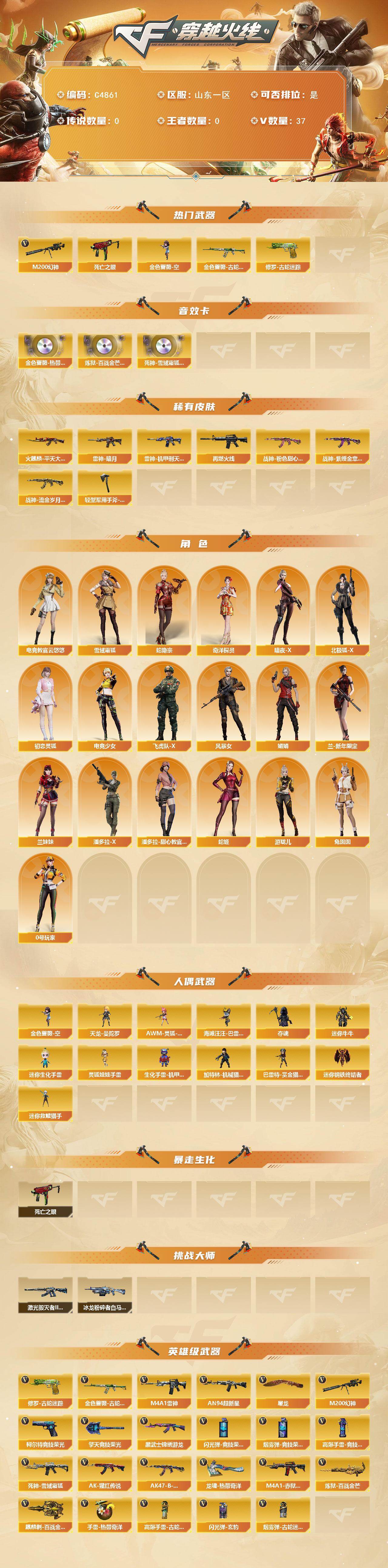 【C4861】山东一区-31V-0王者武器数-0炫金武器数