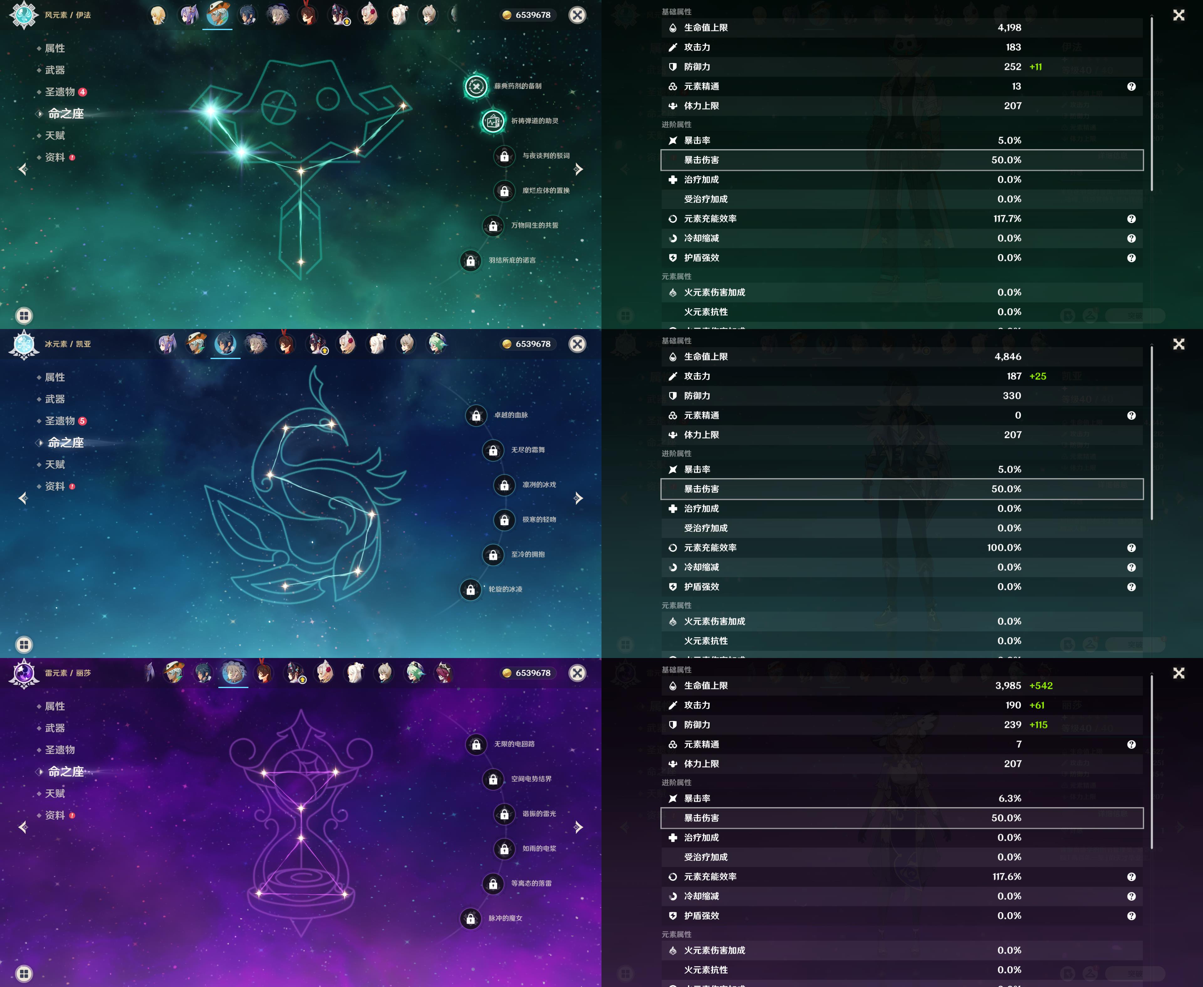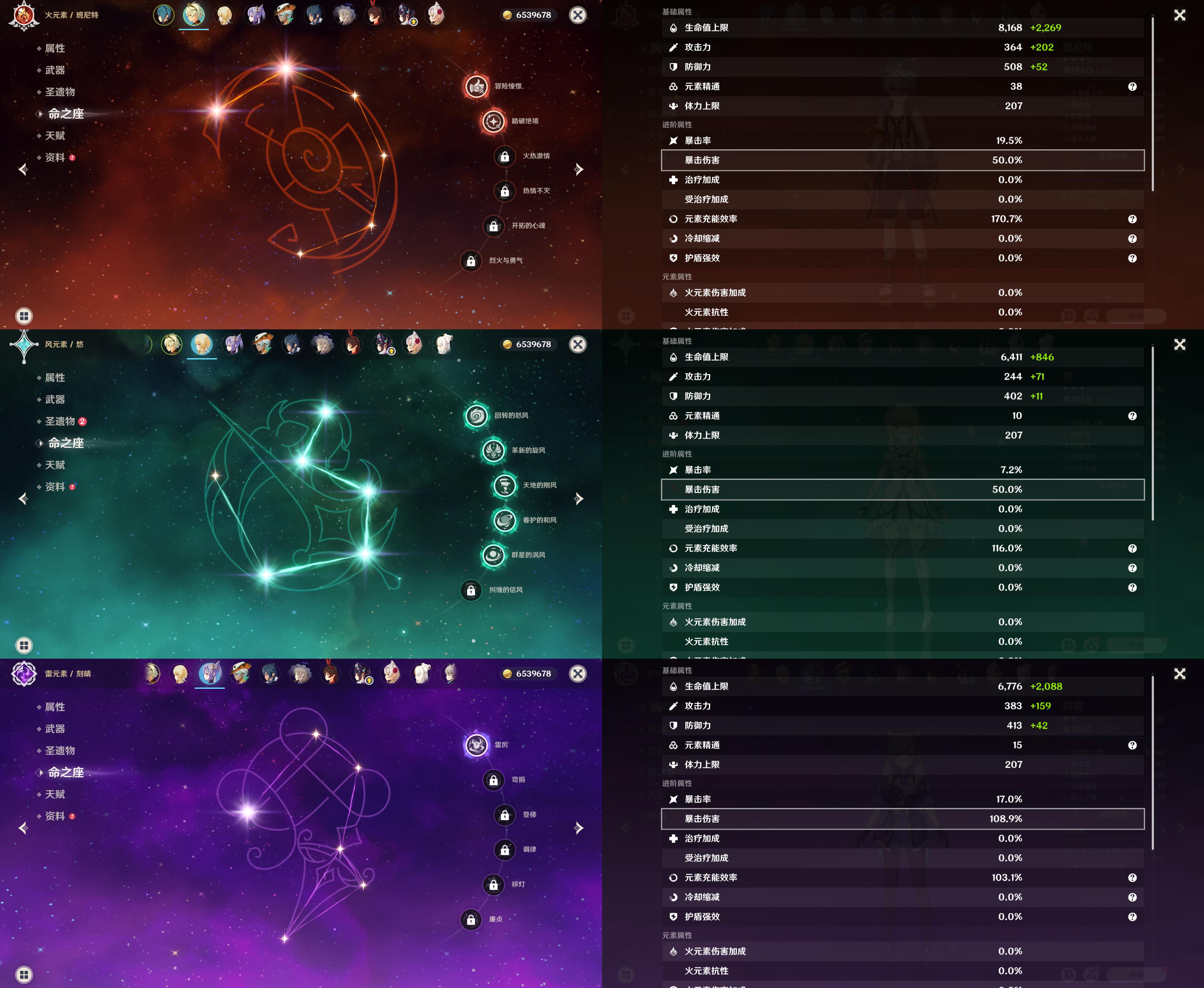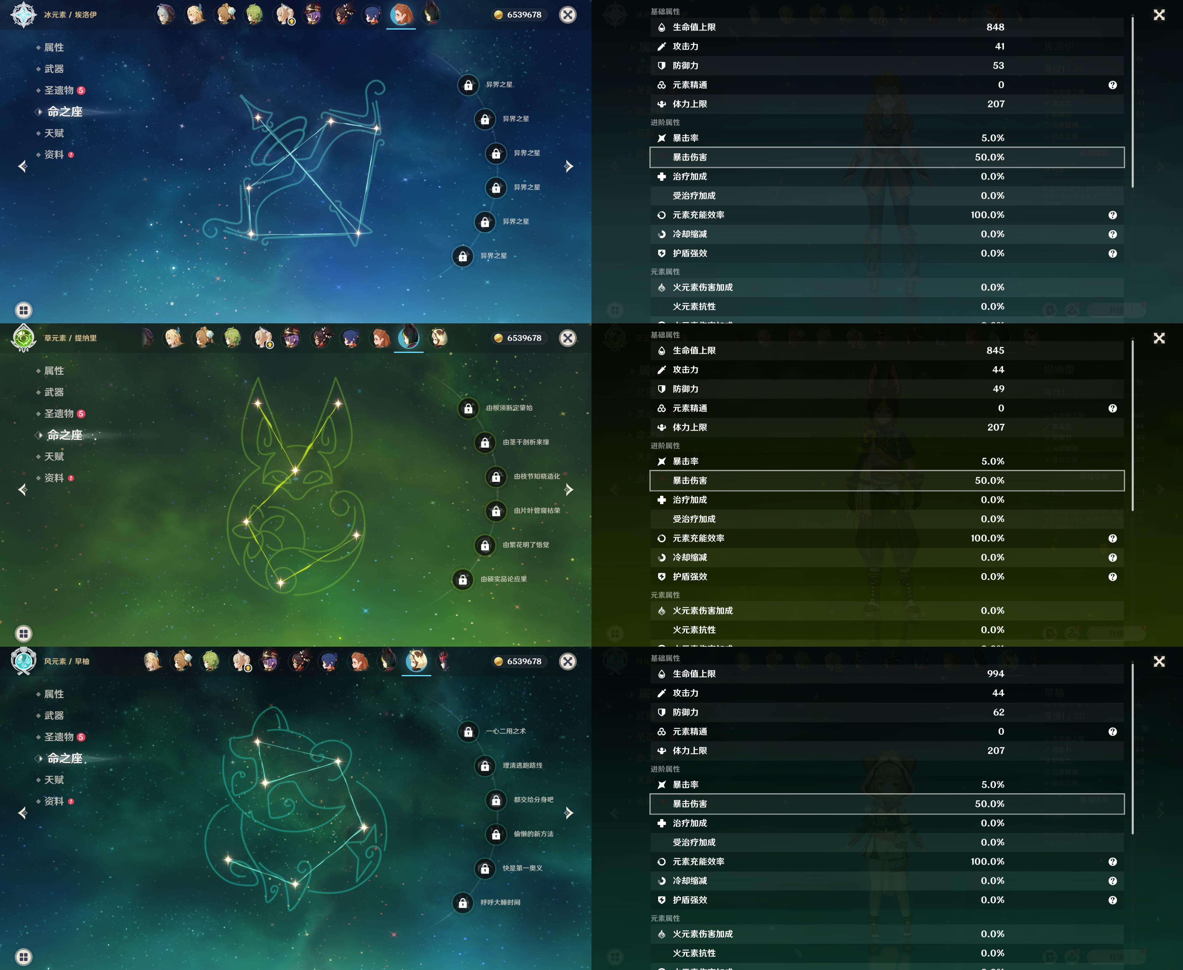44级/7黄/女主/5个五星角色/钟离/1命胡桃/1命刻晴/0命埃洛伊/提纳里