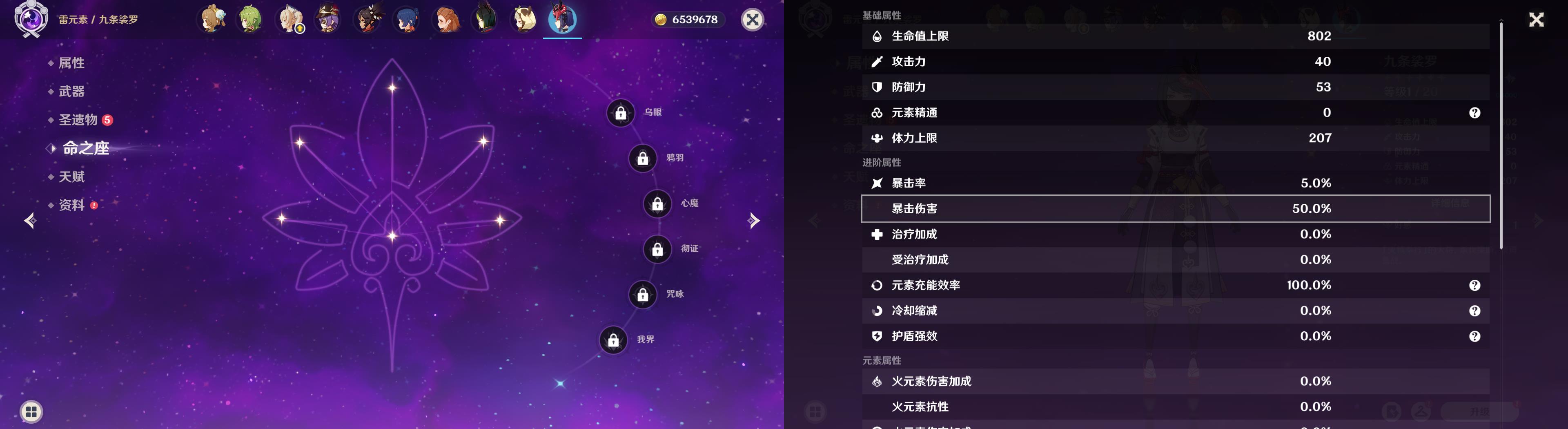 五星角色: