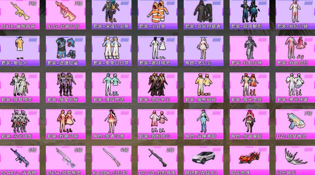 安卓 手Q-15粉装-7特效枪-2载具-3粉色飞行器-80866热力值-12王牌印记-164套装-230枪皮