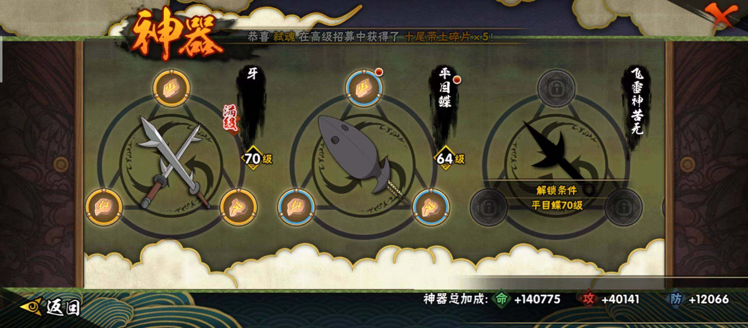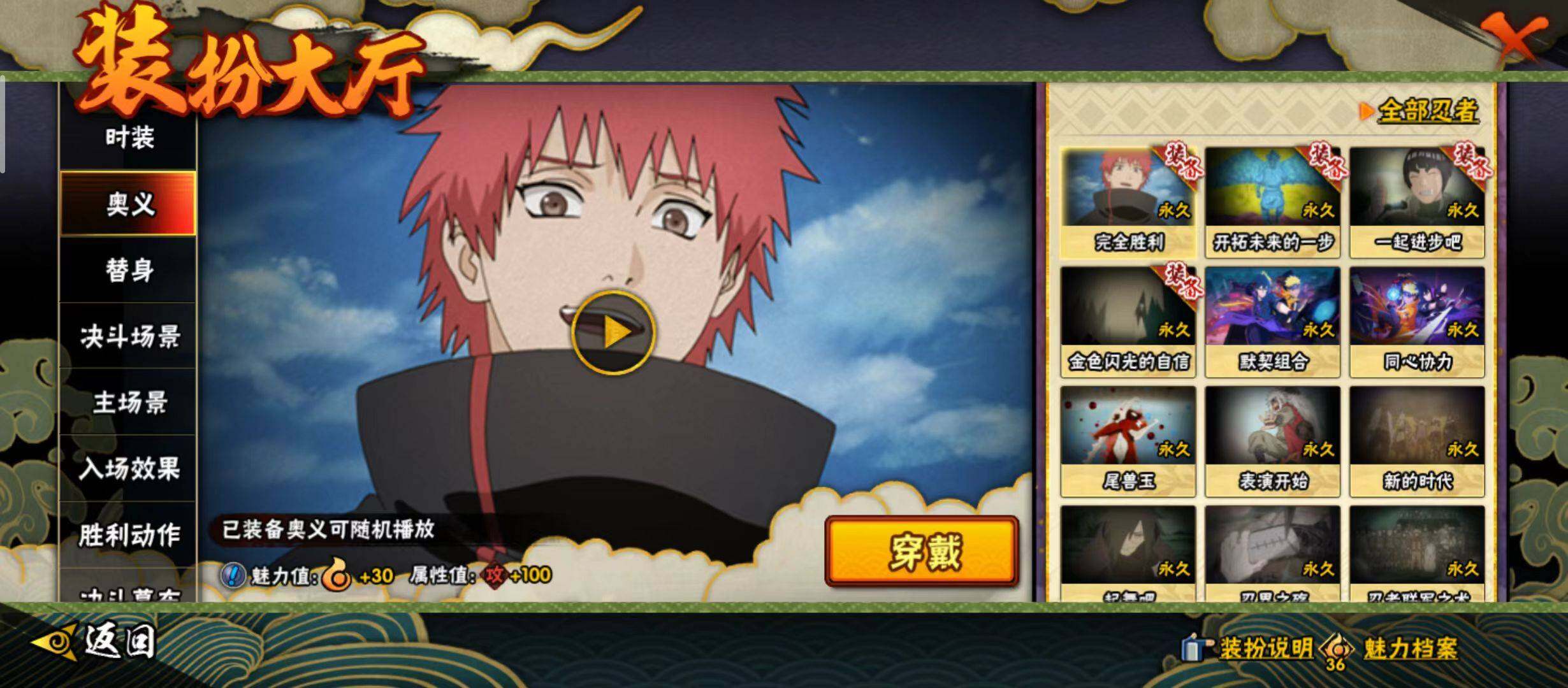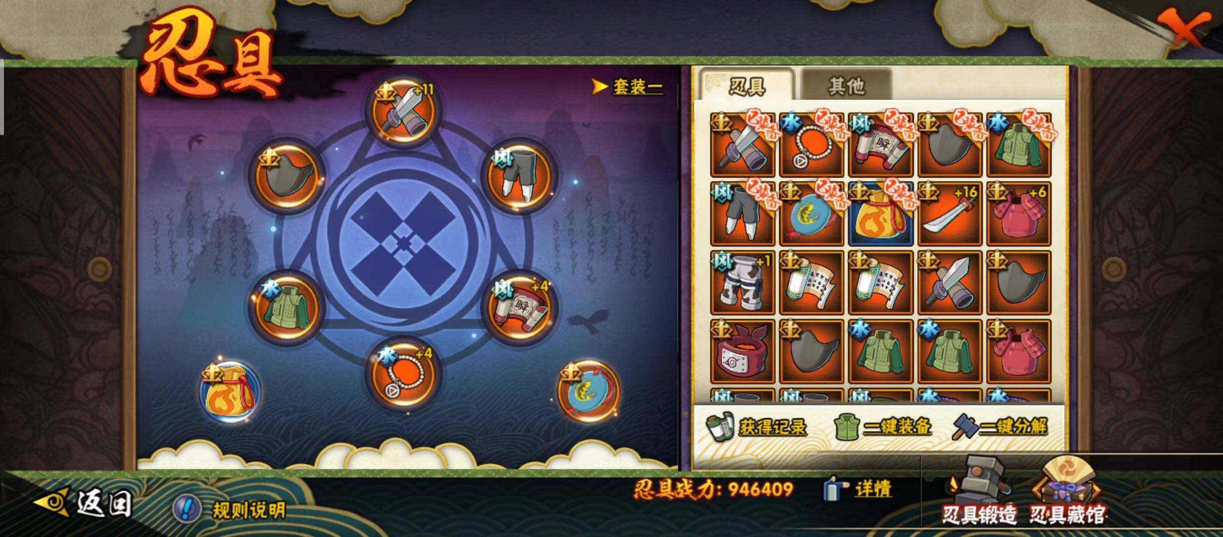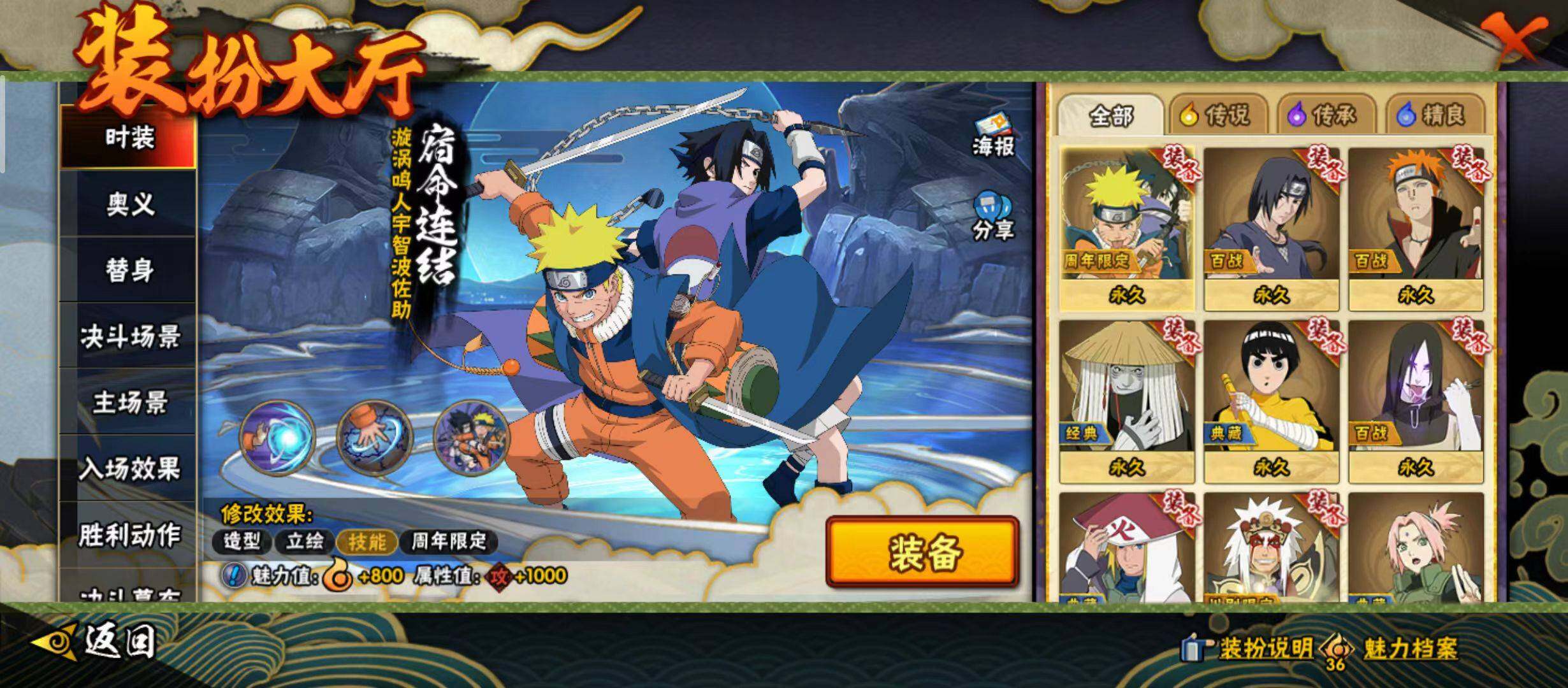 【S级忍者】:千手扉间「秽土转生」(3星),宇智波鼬「须佐能乎」(3星),旗木卡卡西「须佐能乎」(3星),自来也「舞之豪杰」(3星),大蛇丸(3星),自来也「传说中的三忍」(3星),波风水门(3星),佩恩「天道」(3星),宇智波佐助「永恒万花筒」(3星),大筒木桃式(3星),波风水门「九喇嘛连结」(3星),漩涡鸣人·宇智波佐助(3星)