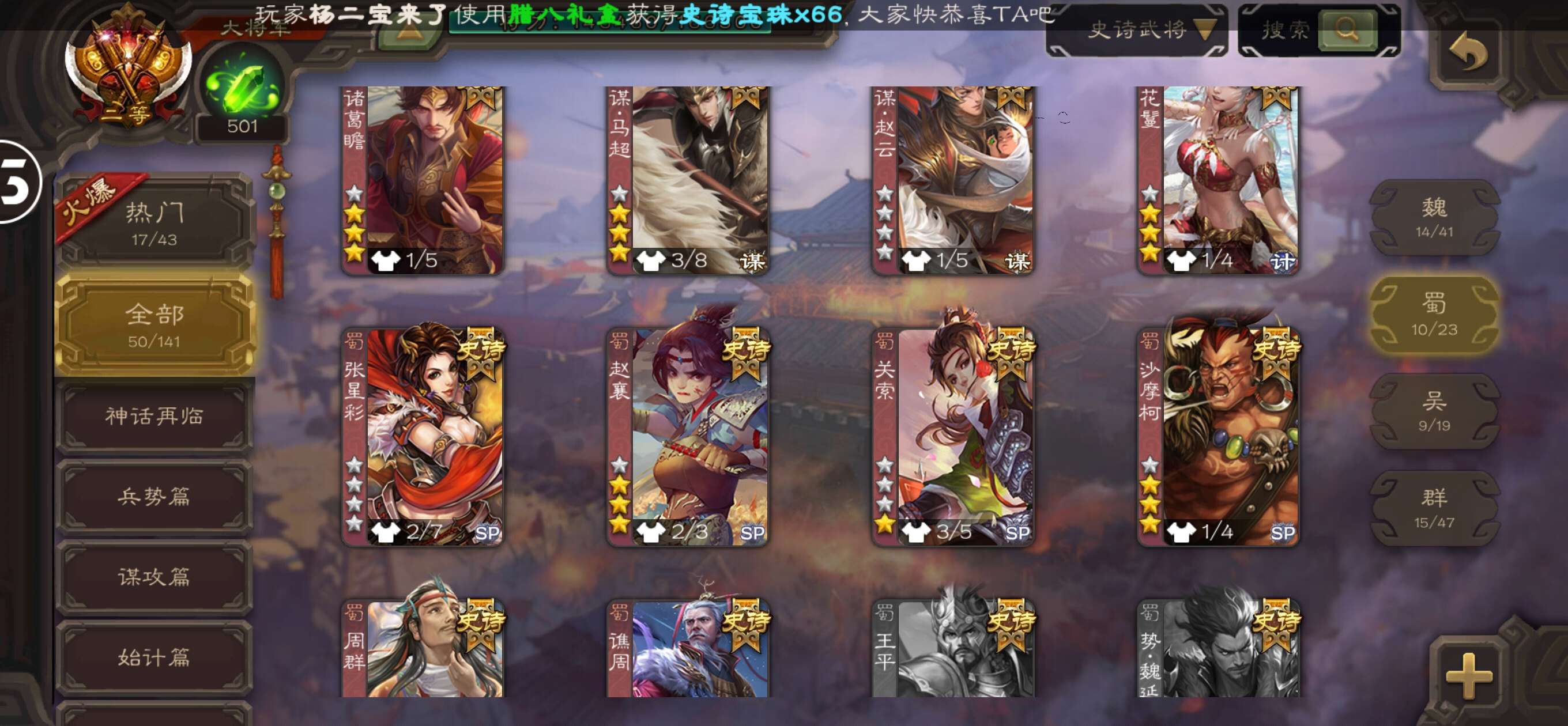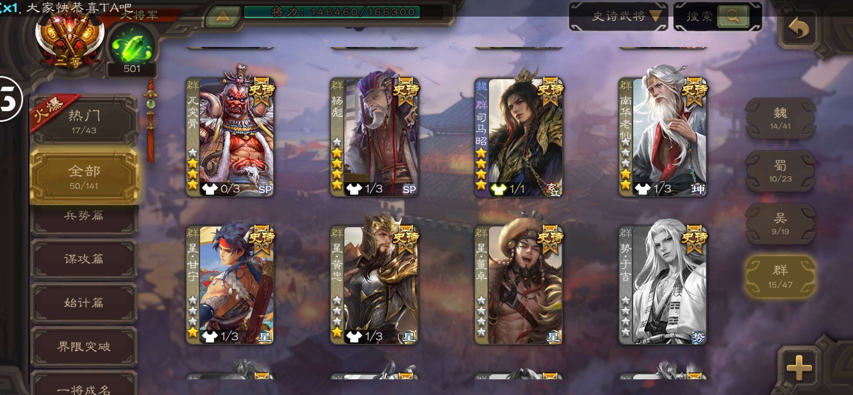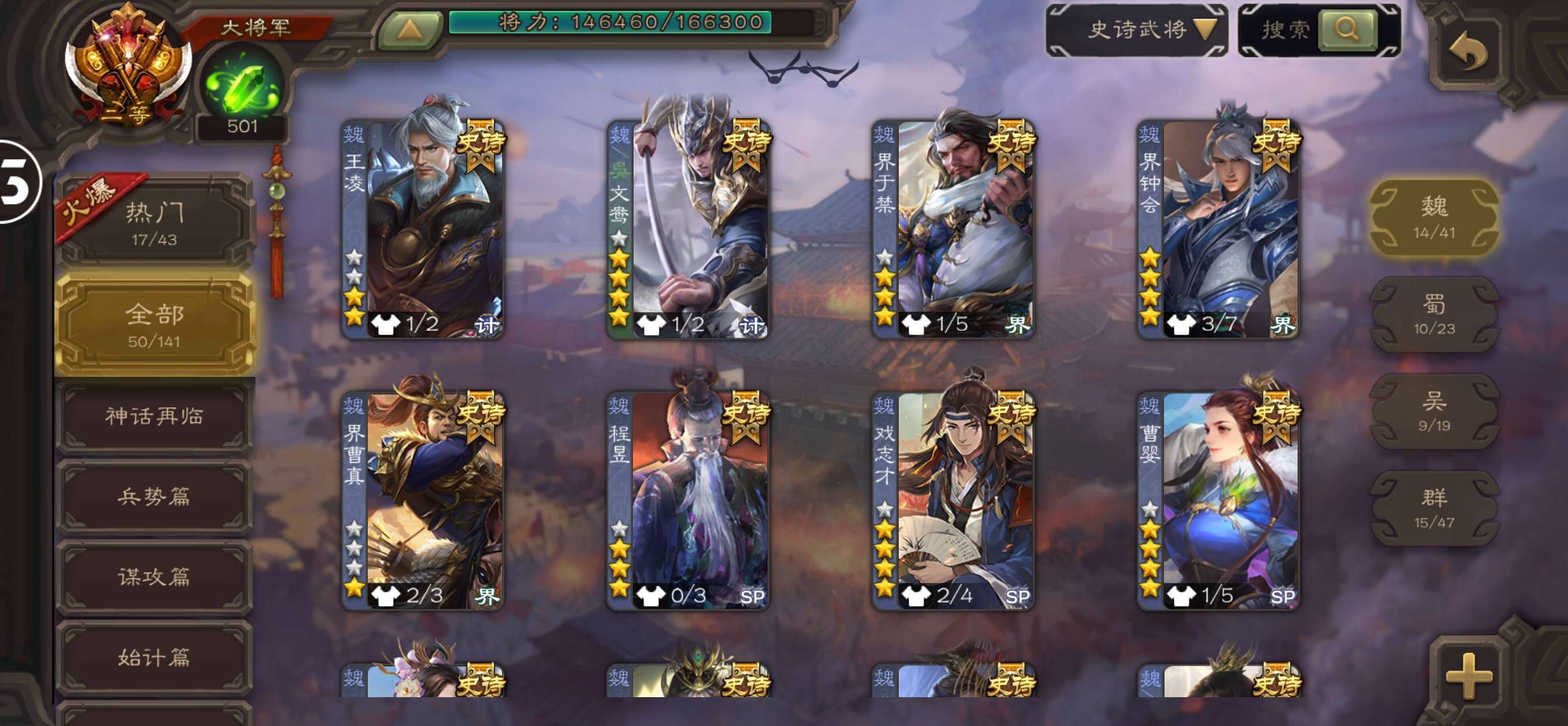 史诗武将数量: