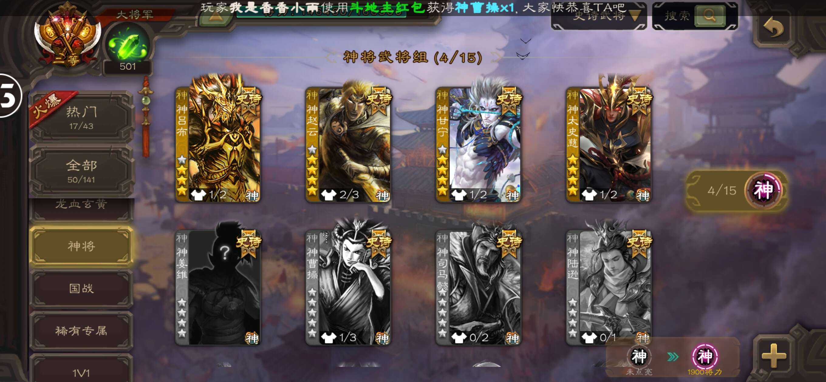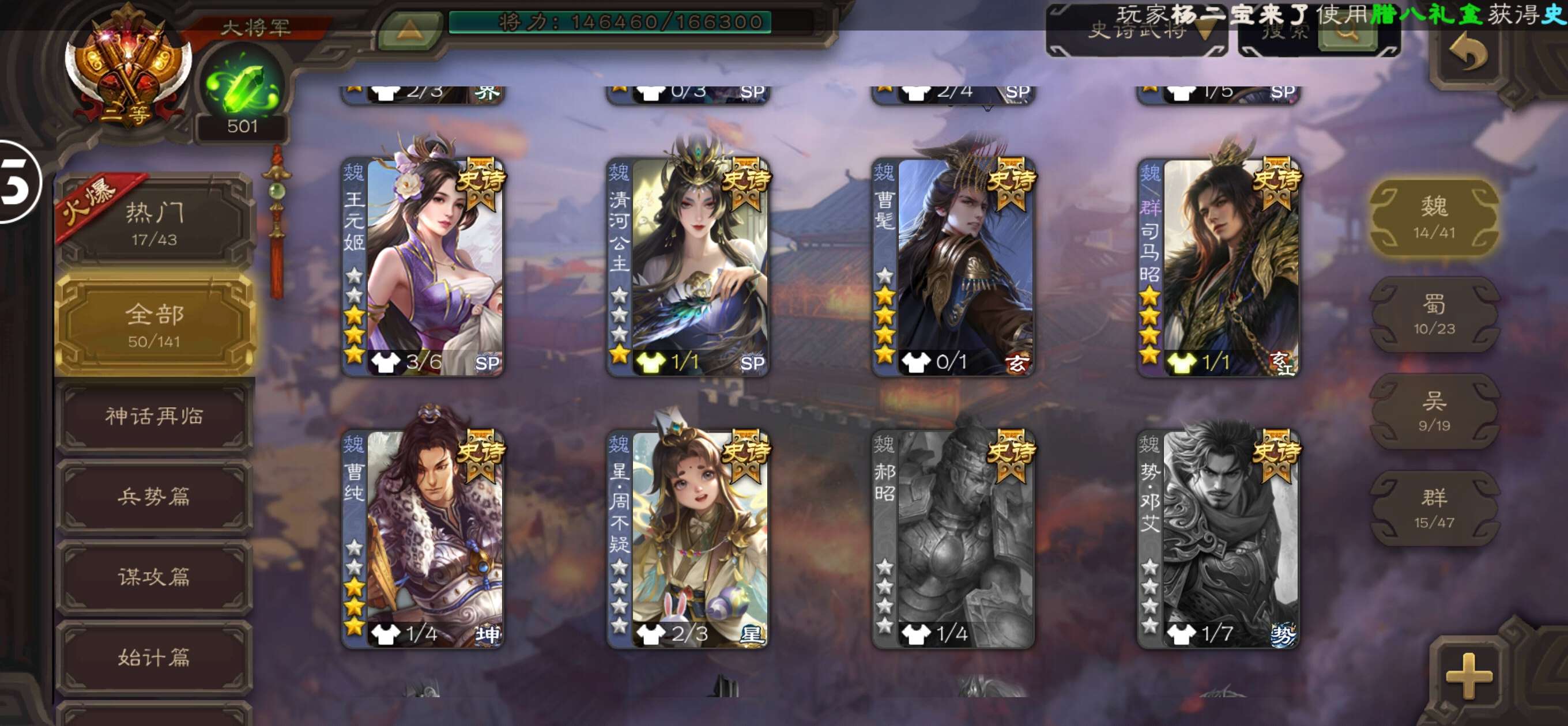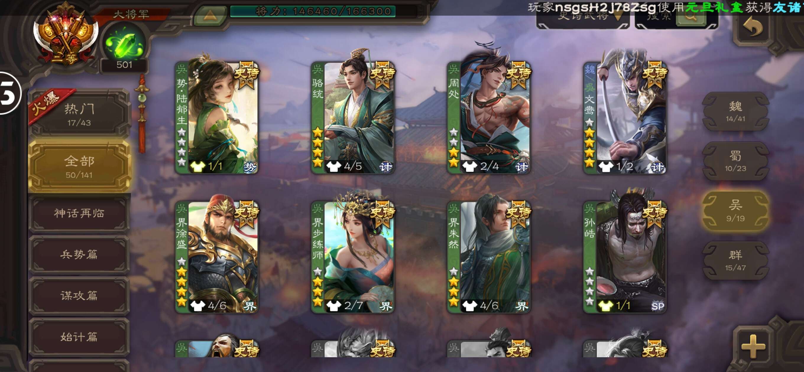 史诗武将数量: