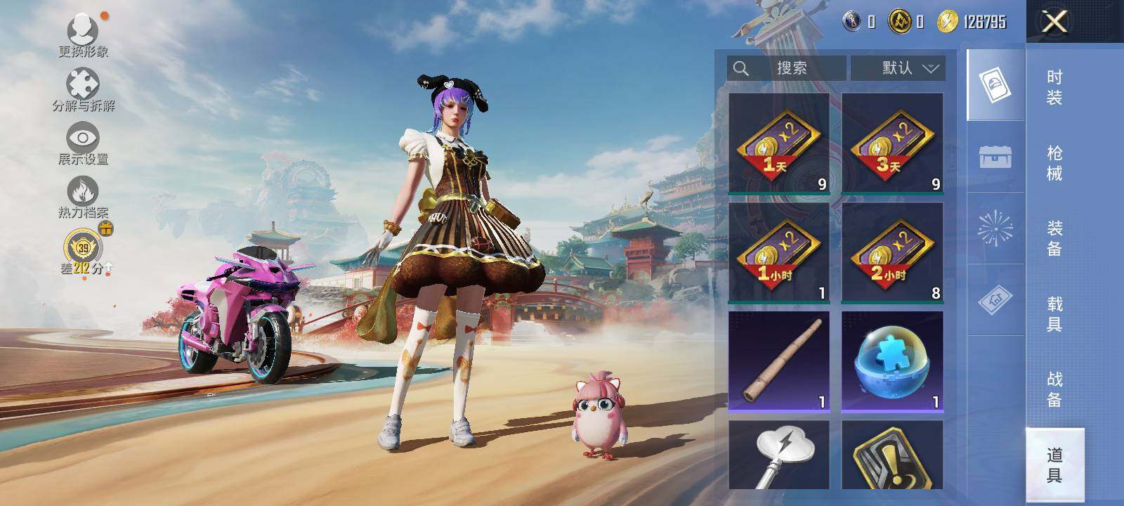 安卓 手Q-13粉装-2特效枪-1载具-3粉色飞行器-31044热力值-2王牌印记-82套装-71枪皮