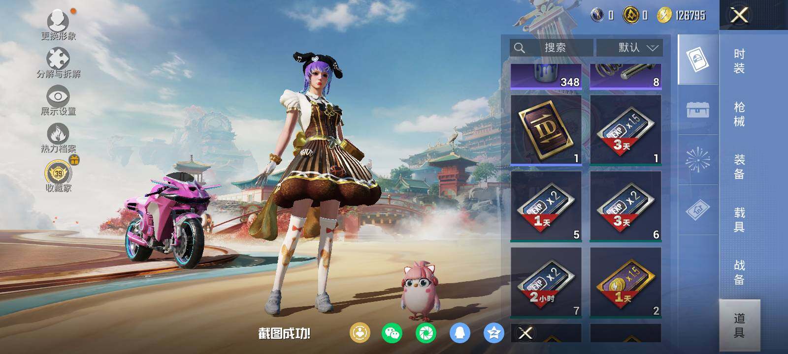 安卓 手Q-13粉装-2特效枪-1载具-3粉色飞行器-31044热力值-2王牌