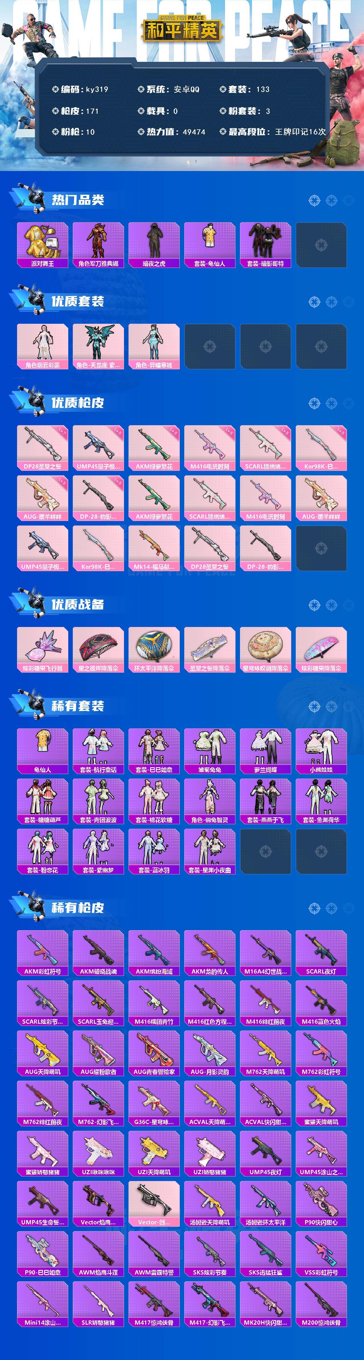 安卓 手Q-3粉装-10特效枪-0载具-1粉色飞行器-49474热力值-16王牌印记-133套装-171枪皮
