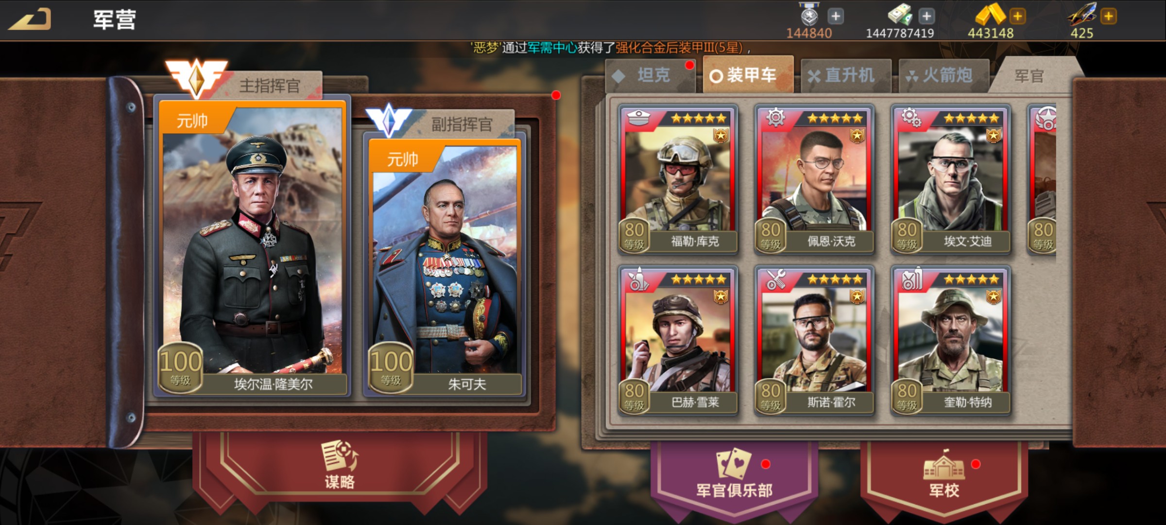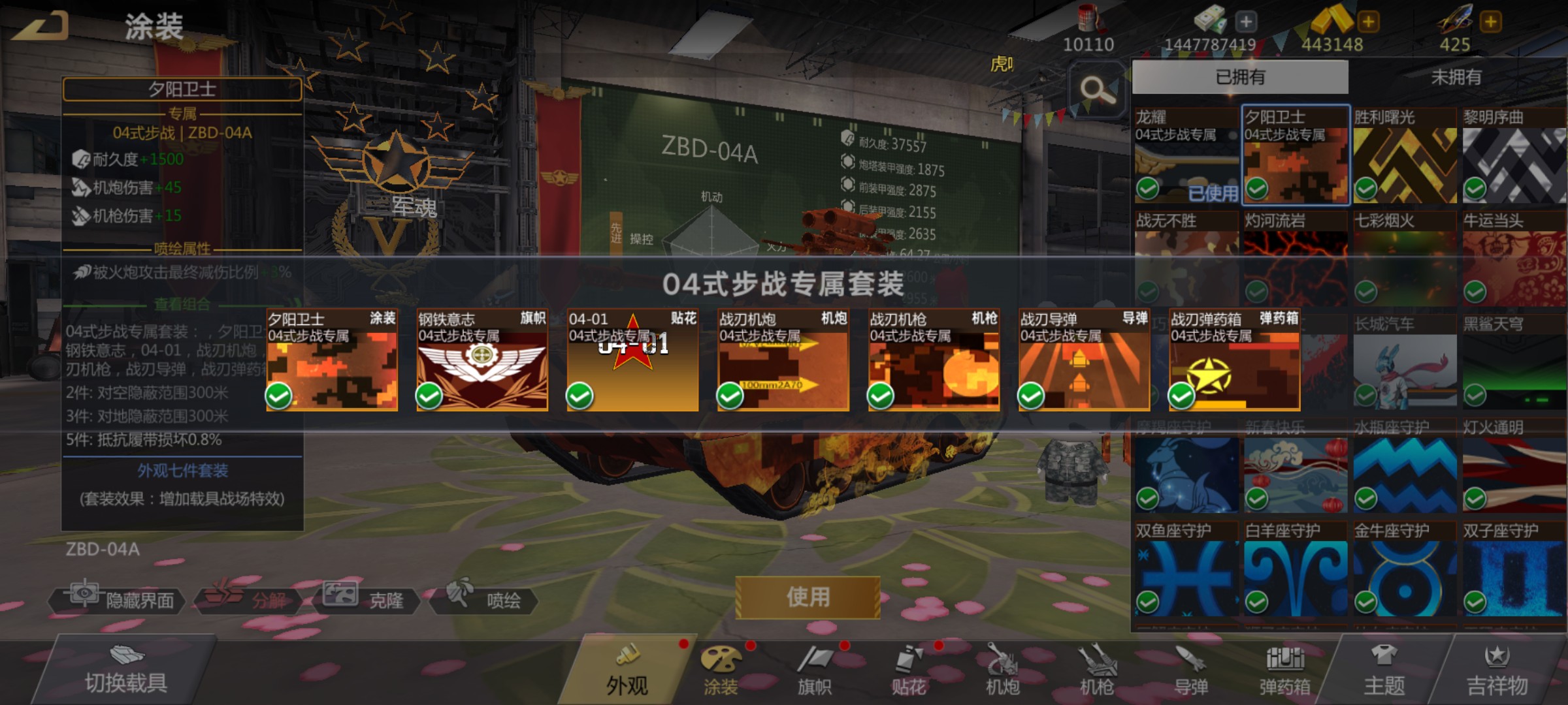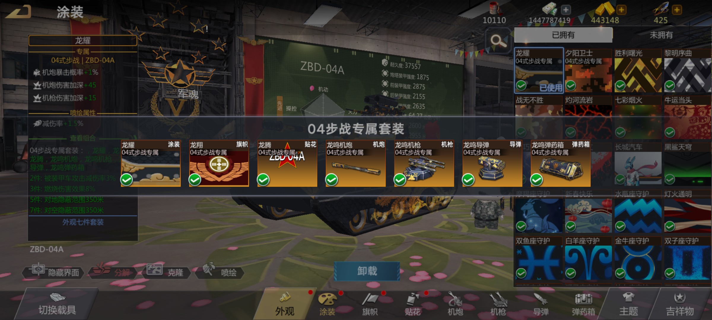 盛会ZBD04A装甲号。大将特权!盛会、盛世武器套,战神装甲套,技能满锻造全红。10顶指,涂装2套。