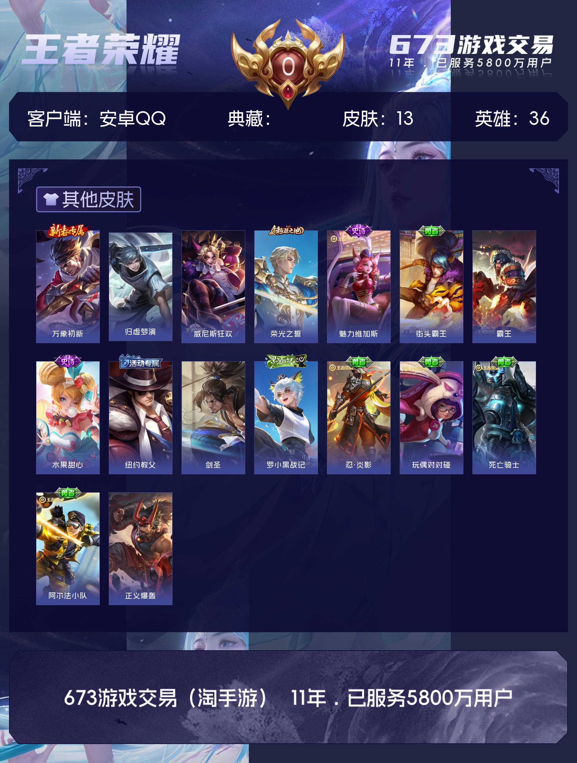 皮肤13 英雄36 至尊星耀 其他皮肤16