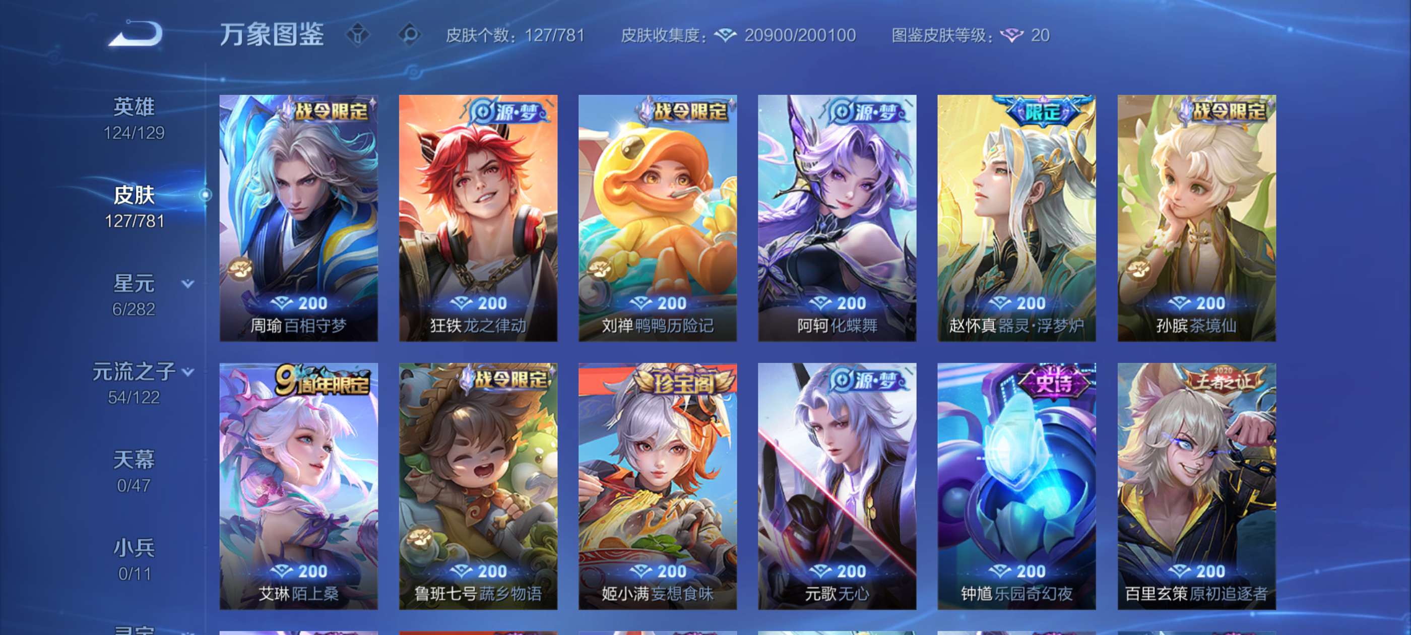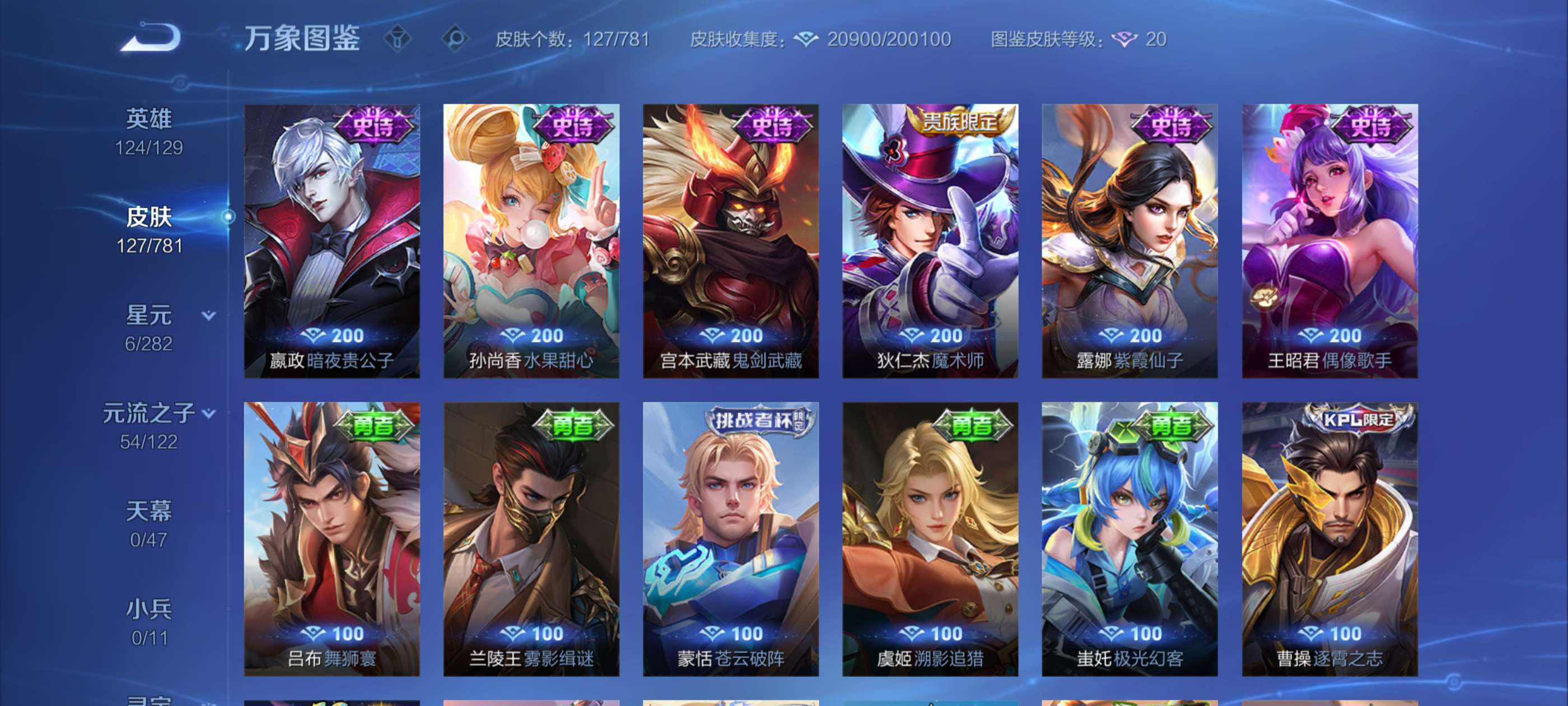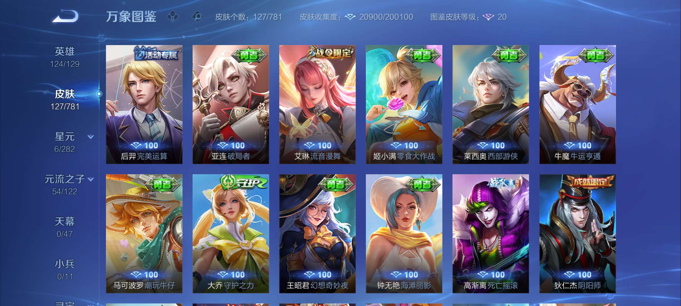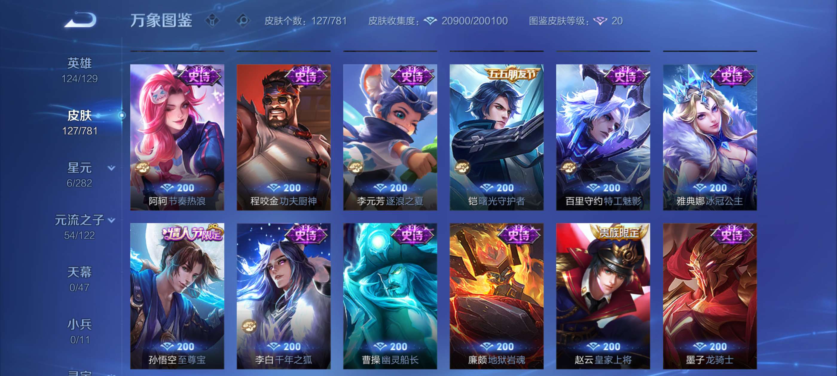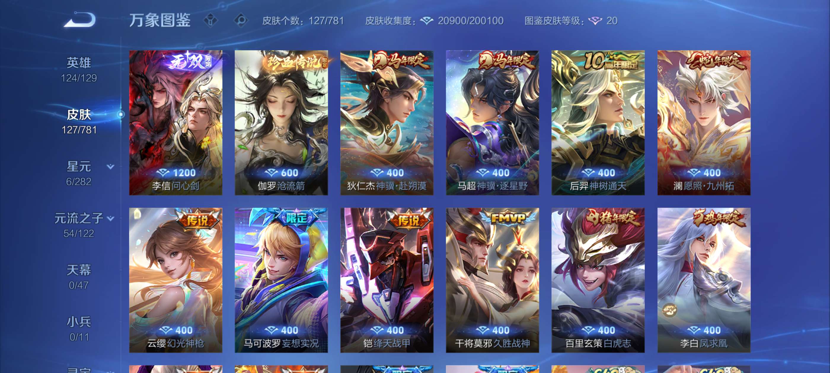 李信无双,伽罗珍品,狄仁杰马超两个马年限定,马克的传说限定,至尊宝,白虎志,李白凤求凰还有更多优质皮