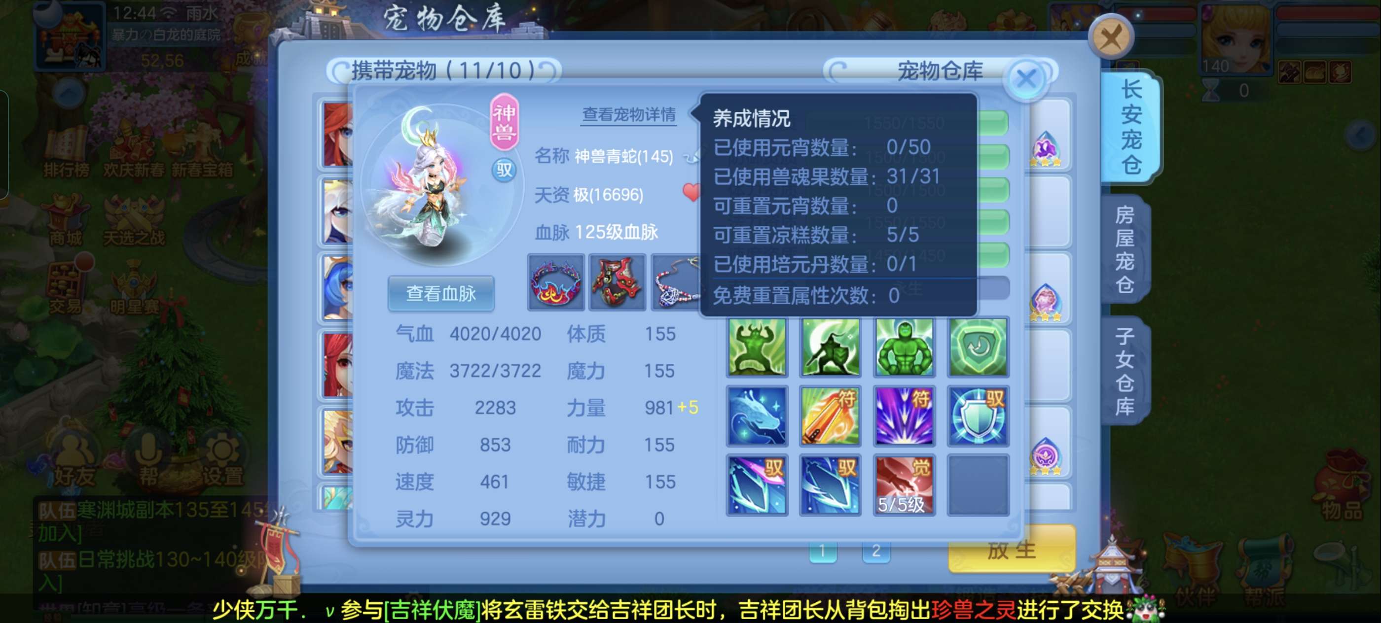 140满级龙宫,满兽魂打书完美蛇,宝宝齐全,神兽内丹碎片45个,持续更新中!死绑关联手机改密,看清楚