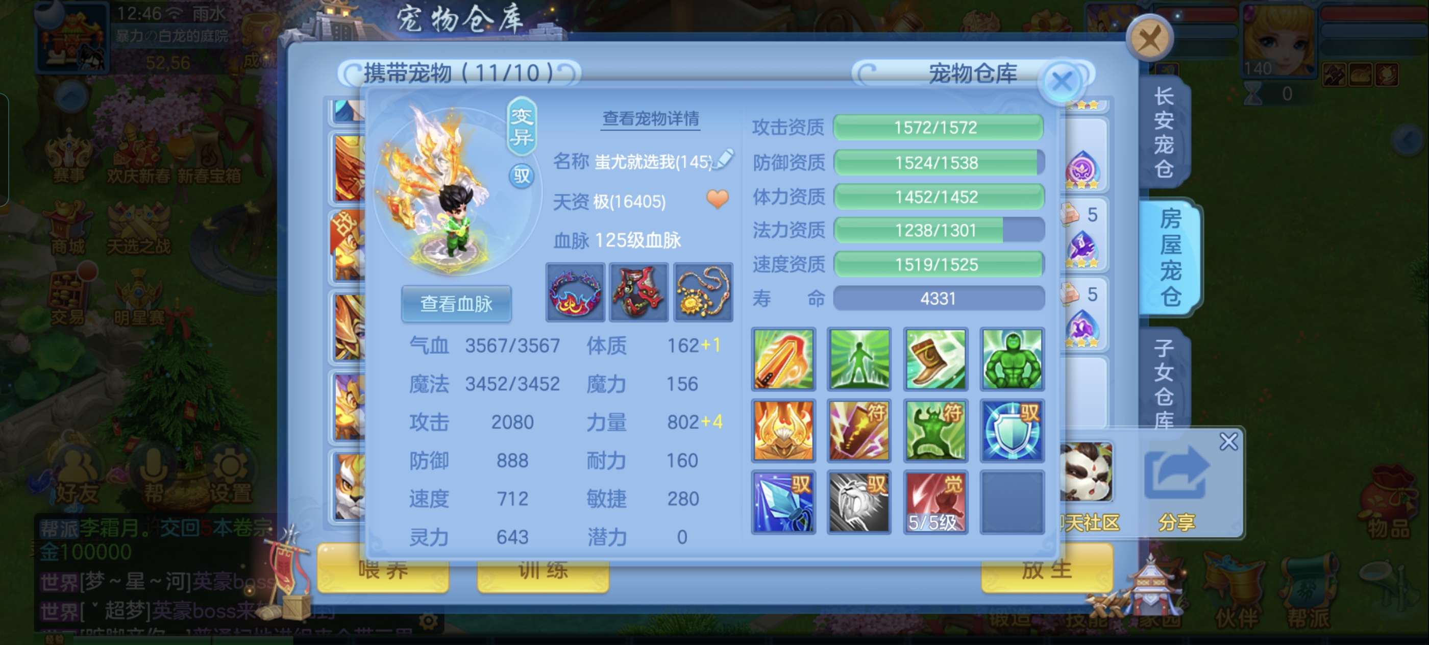 满兽魂蛇,天赋虎大力天赋云罗,天赋红心蜗豆,天赋葫芦,天策普陀双孩子,天赋雨师,具体看图