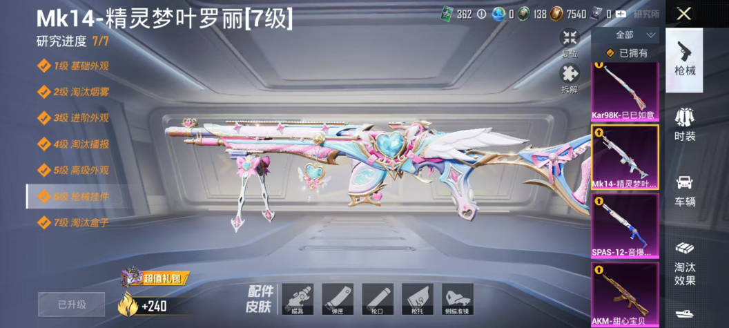 622-【梦幻火箭 5粉装6特效枪1载具】 安卓V区-51783热力值-10印记-122套装-176枪皮 【1载具】 双人摩托梦幻火箭【1稀有】 M416-黄金龙骨【5粉装】 梦幻火箭 宝贝奶油派 甜心巧克力 天使彩虹糖 角色-月影灵韵【6特效枪】 AKM-甜心宝贝(7级) SPAS-12-音爆索尼克(5级) Mk14-精灵梦叶罗丽(7级) Kar98K-巳巳如意(5级) DP-28-豹影疾电