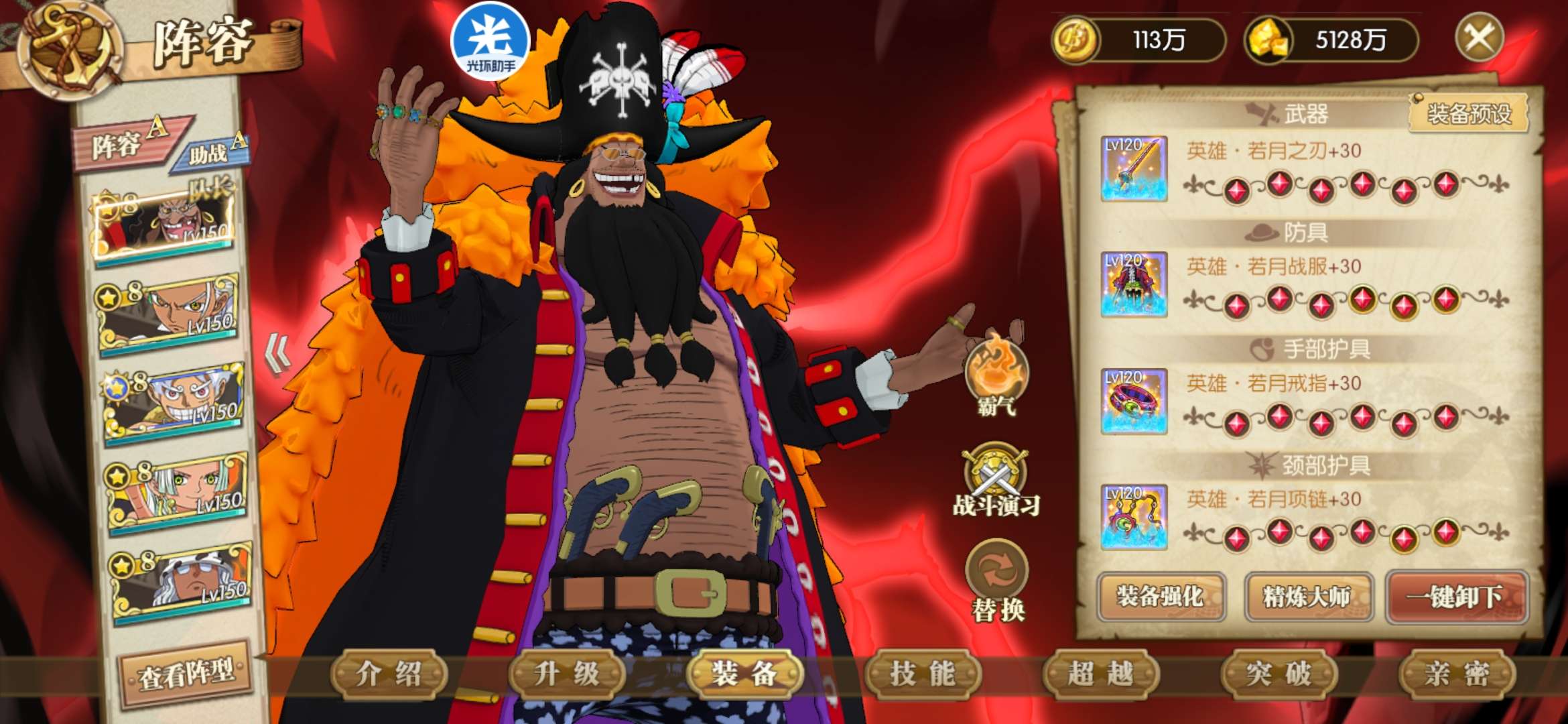 新六级阵,SP黑胡子拉满,黑胡子船,三套共鸣共振,各种时装,UR全八星,全图鉴,还有250装备券