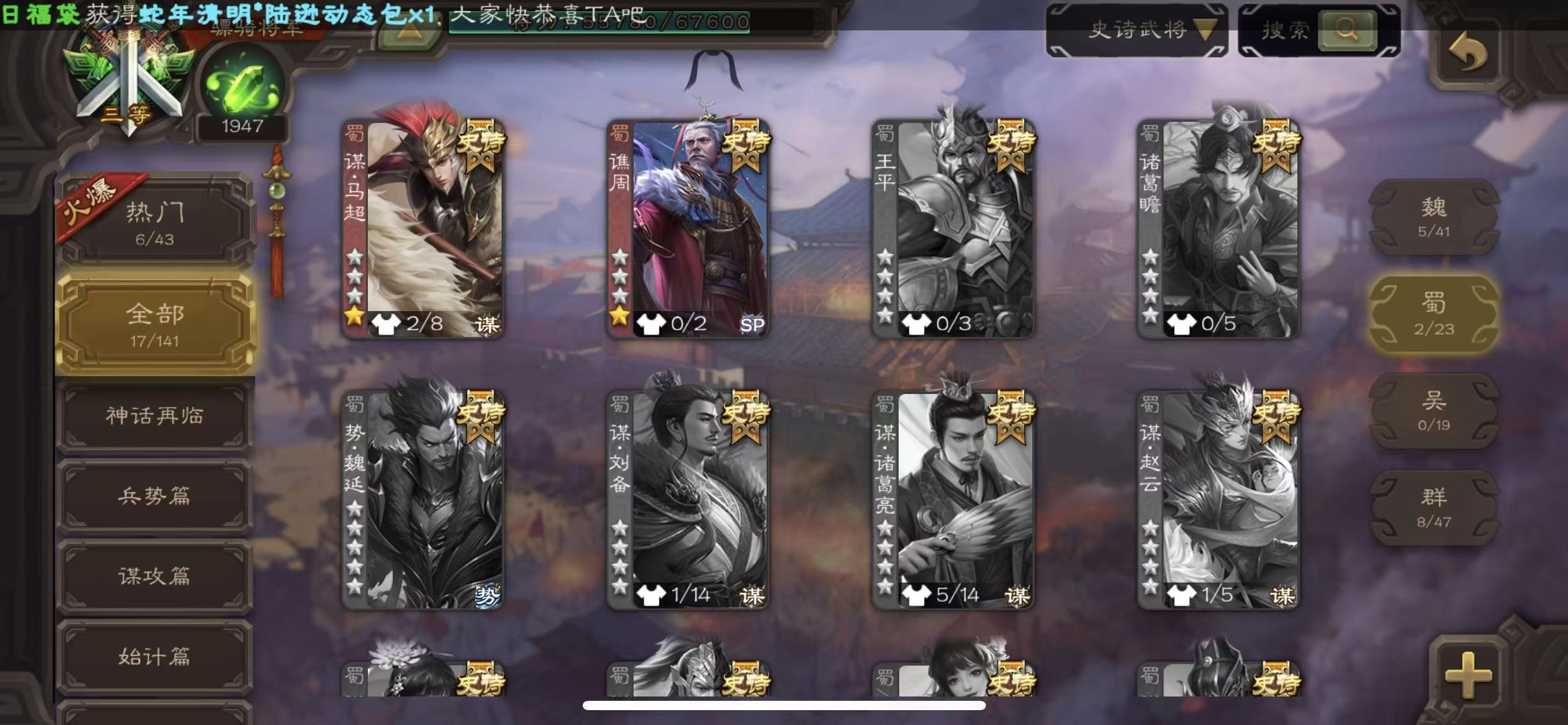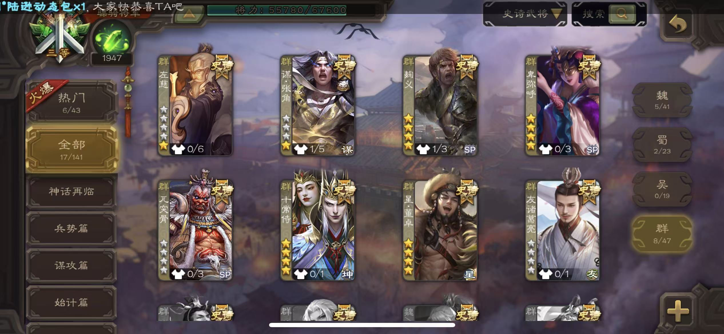 史诗武将数量:
