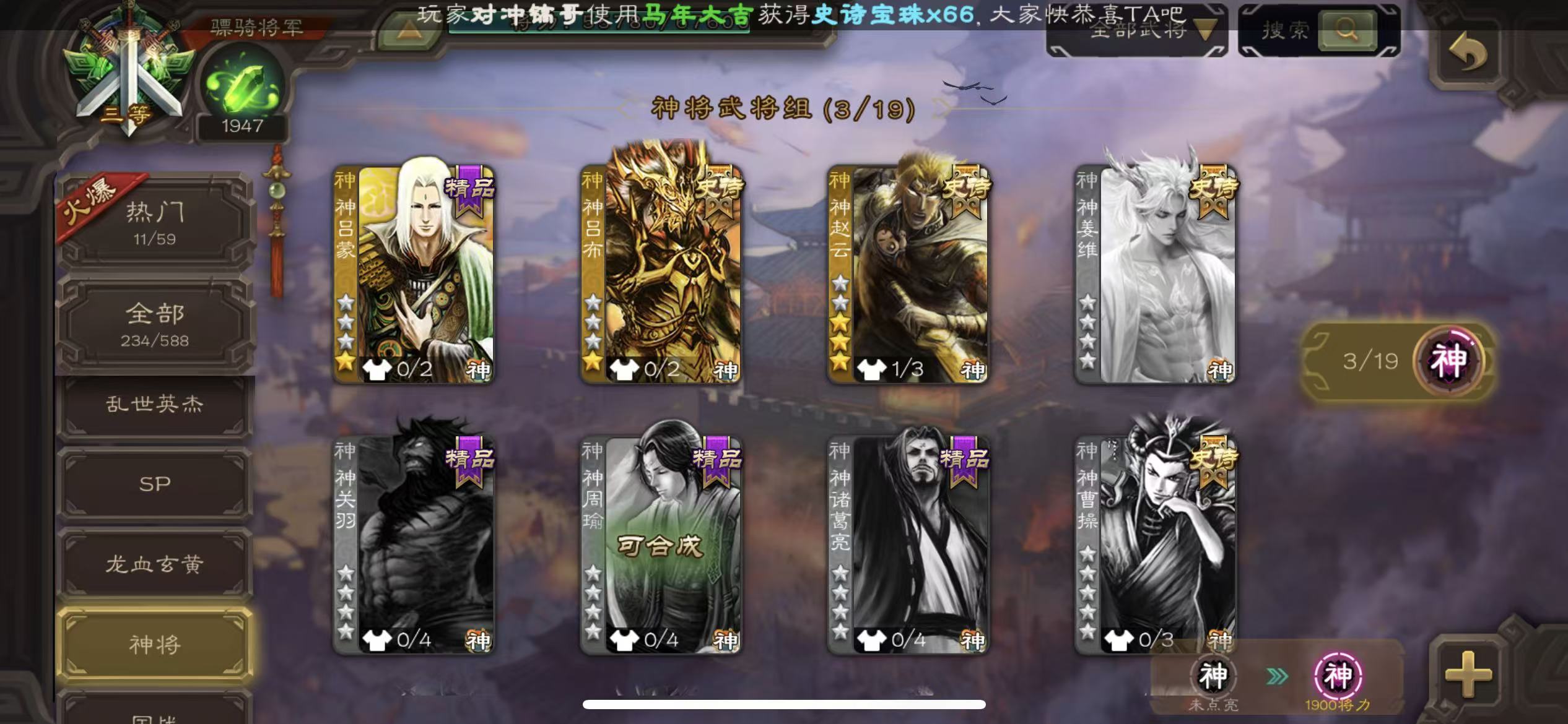 骠骑17史诗十常侍友诸葛亮动态白马界钟会谋马神赵云神吕布三卡