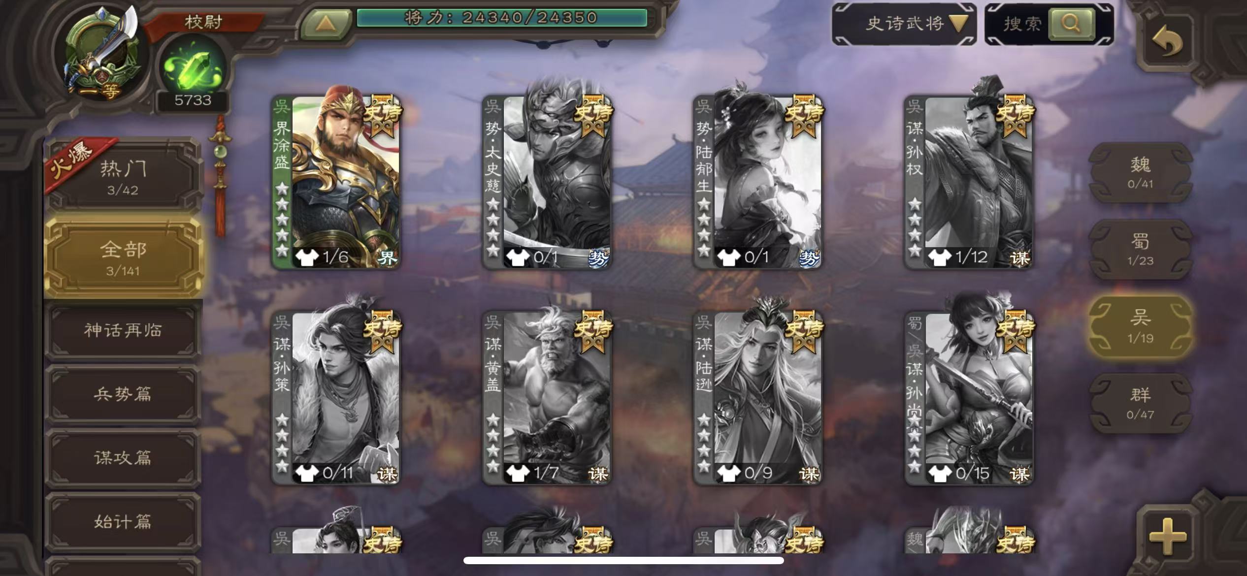 史诗武将数量: