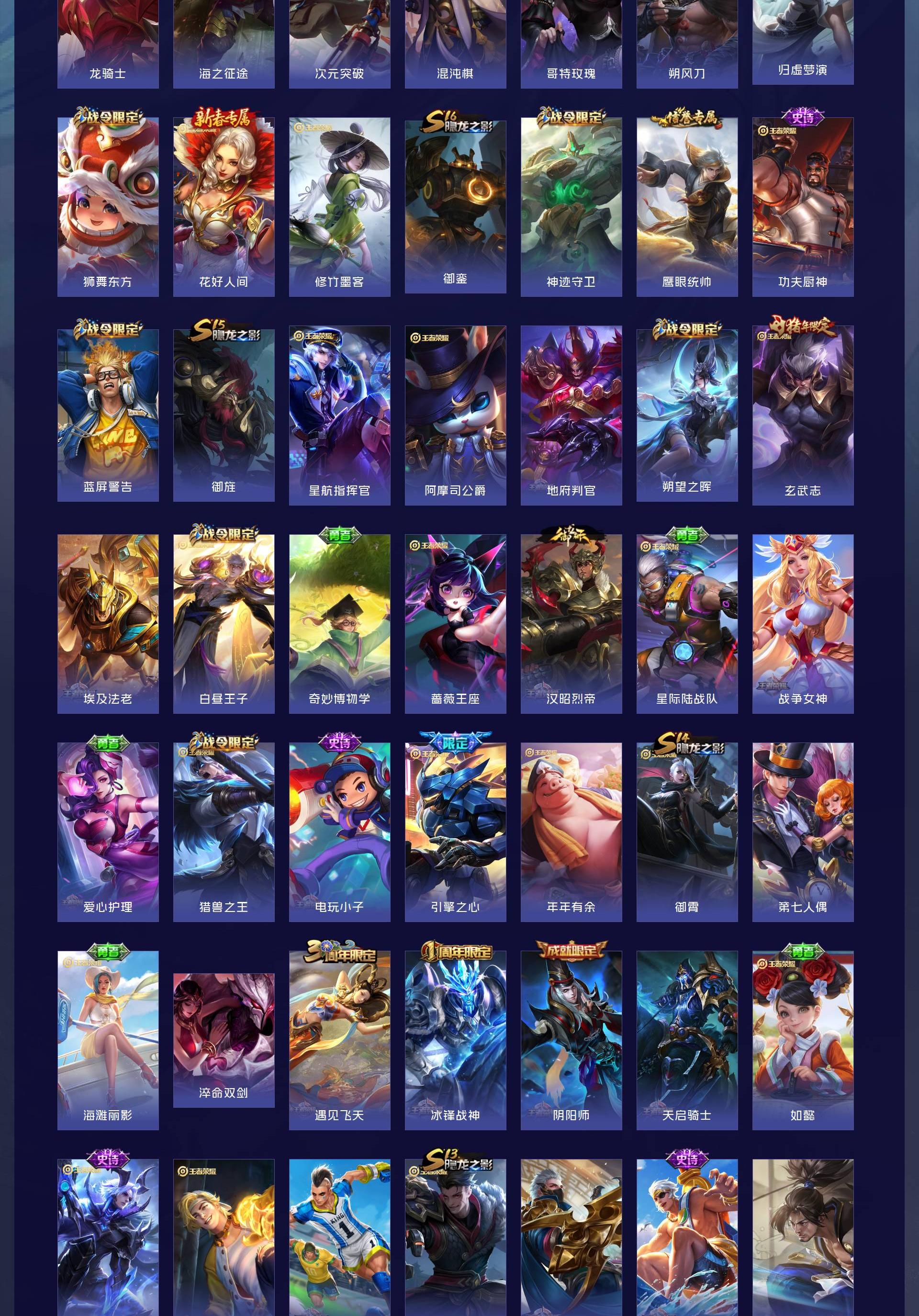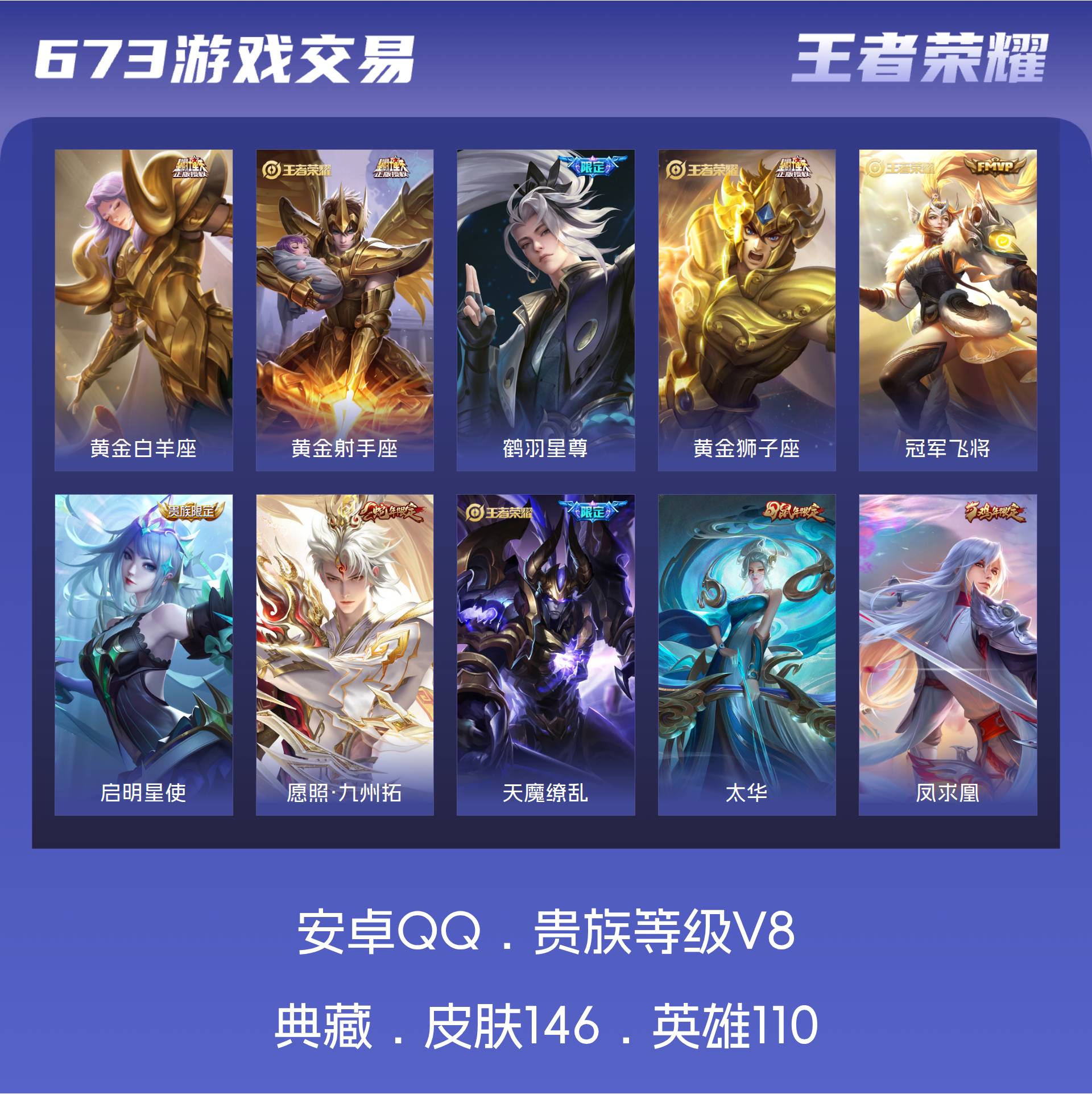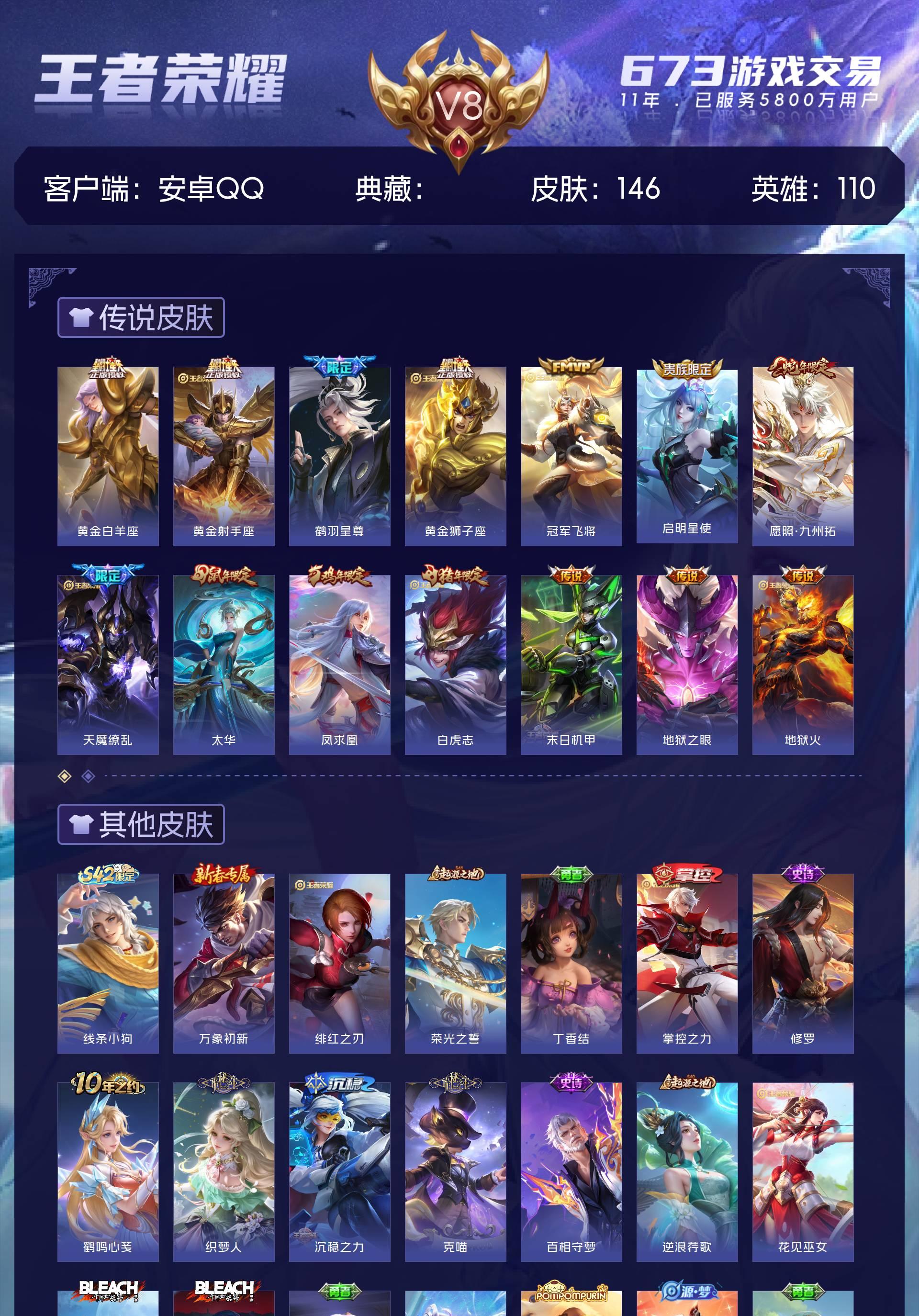 V8 皮肤146 英雄110 尊贵铂金 传说14 其他皮肤137