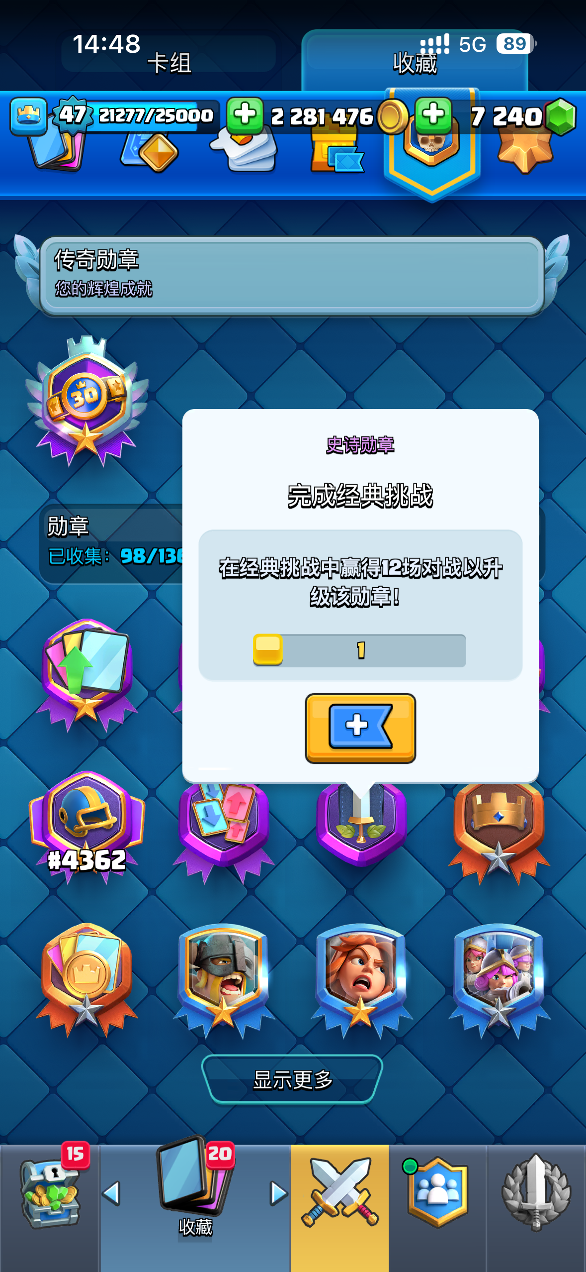任选2精英,可觉醒任意卡或11觉醒,挑战12胜勋章,达阵联赛勋章,7000宝石,200万金币,三枪卡