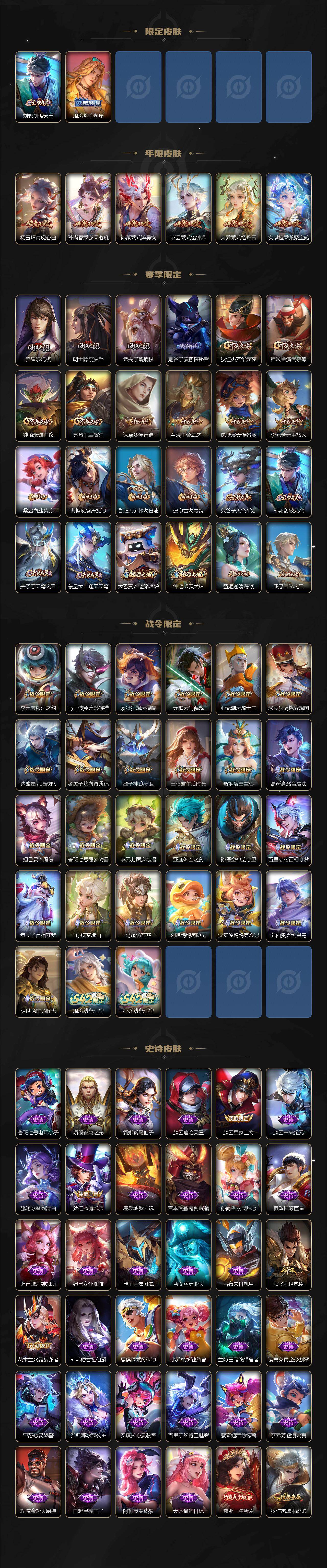 【传说皮肤】:云缨神骥越千峰,后羿神树通天,桑启鸣野蒿,孙尚香乘龙问璇玑,孙策乘龙淬吴钩,赵云乘龙铭钟