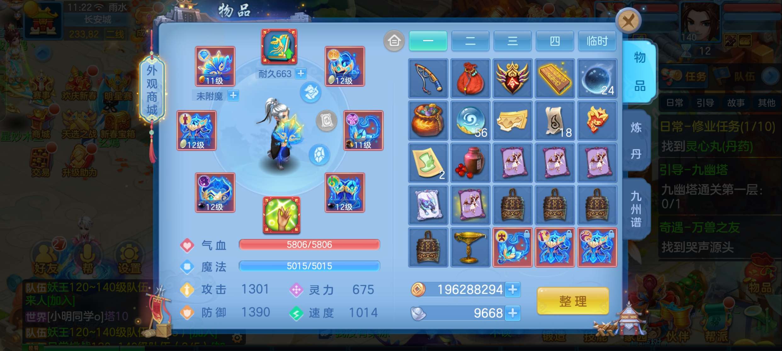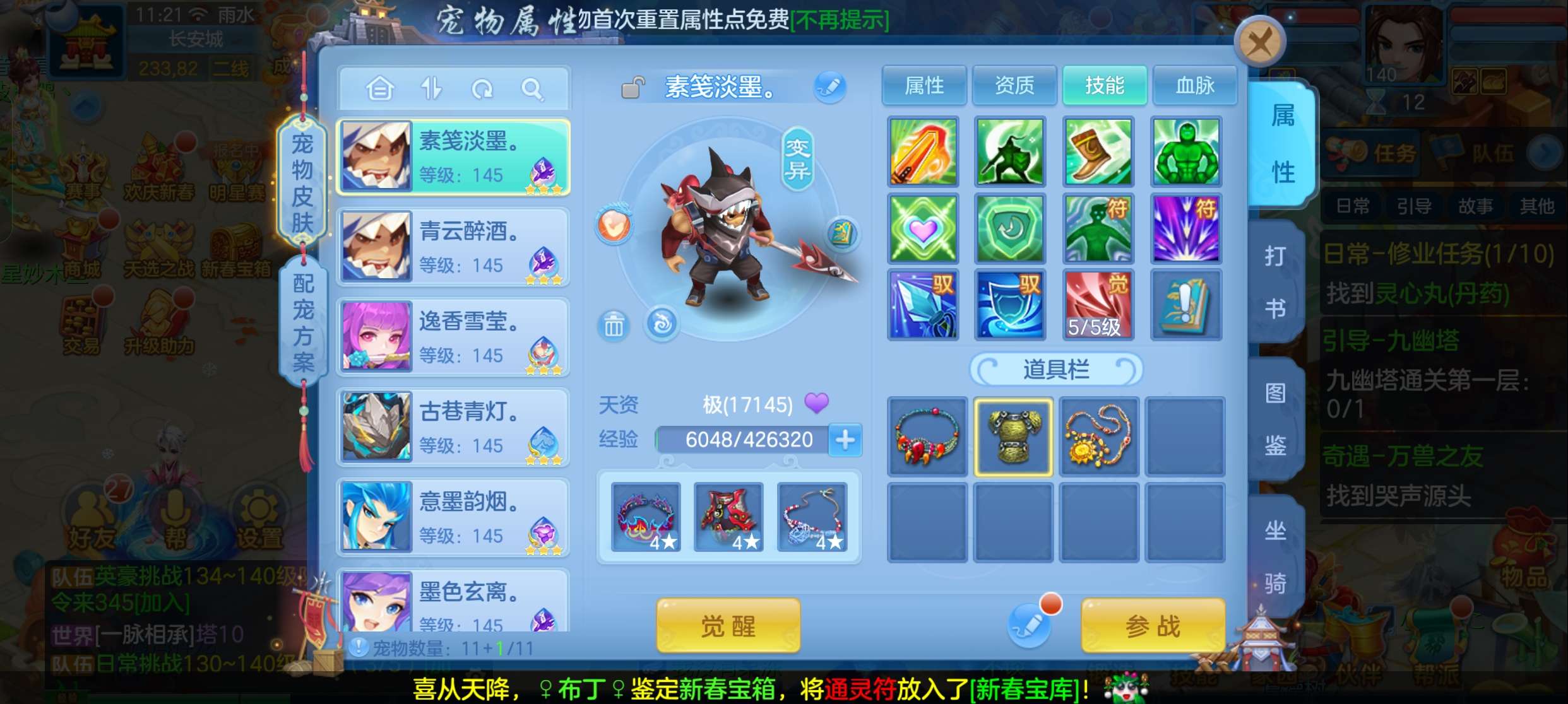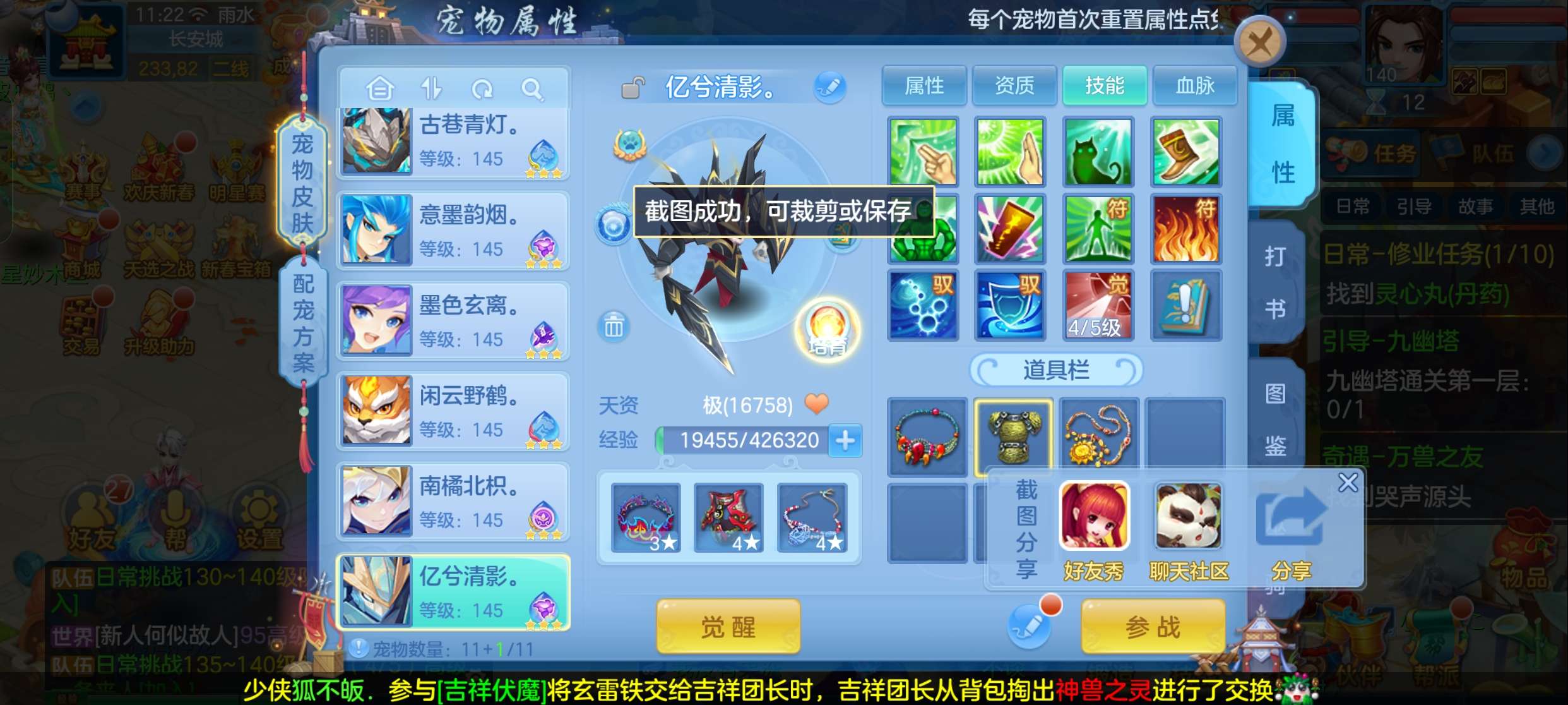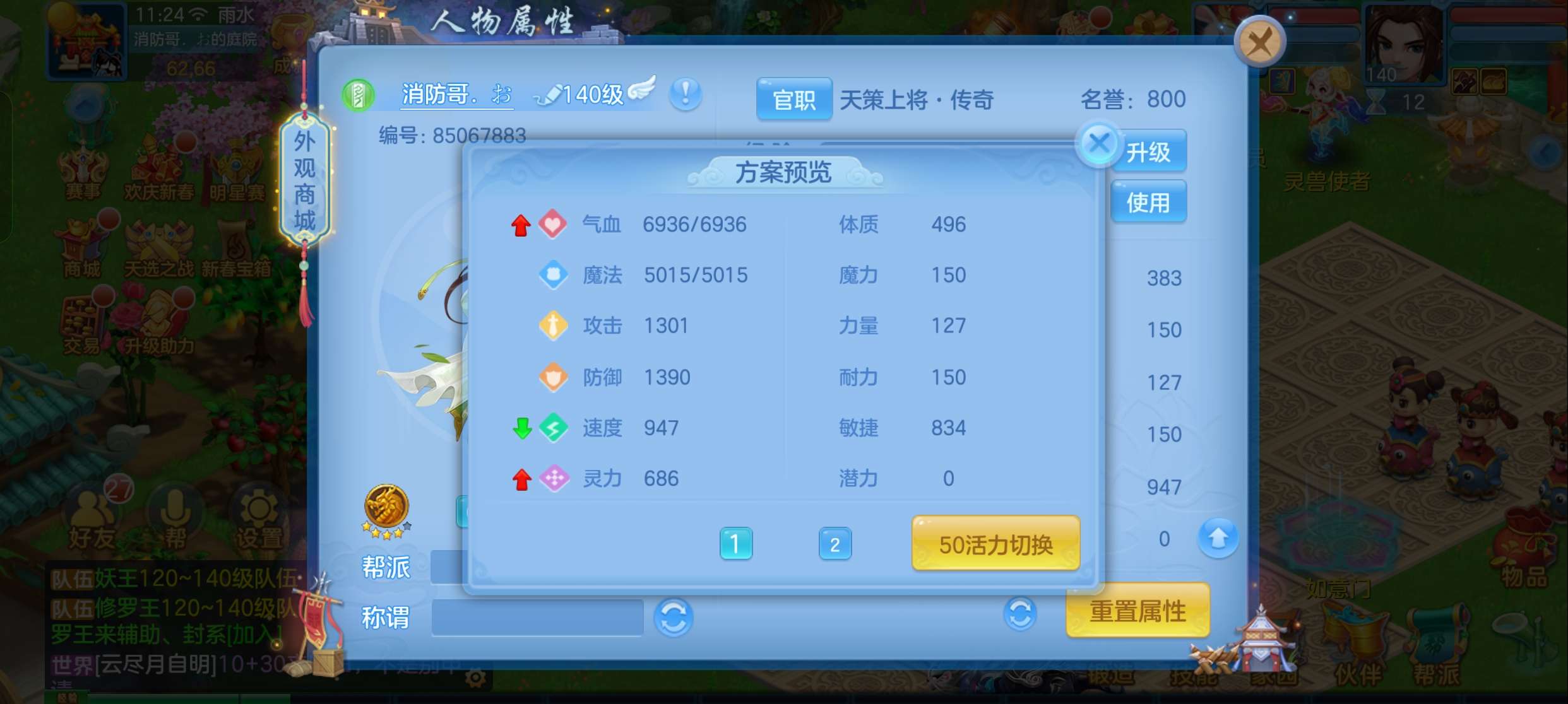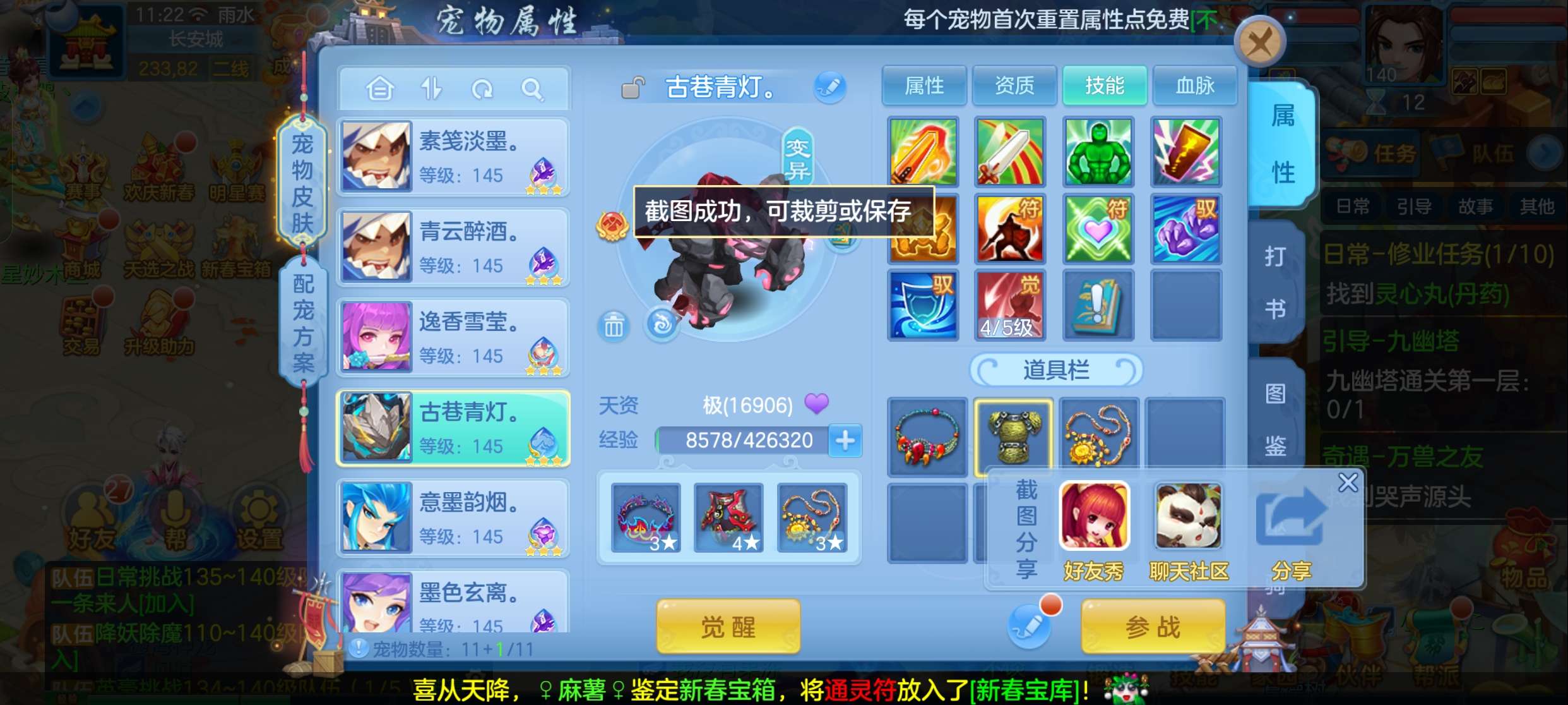 飞升140 648坐骑 宠物基本都带皮肤 修差一个宝宝全满 两套属性 神武币和金币都不少有存货