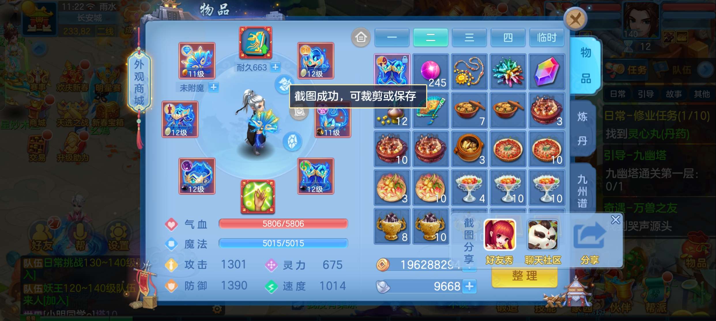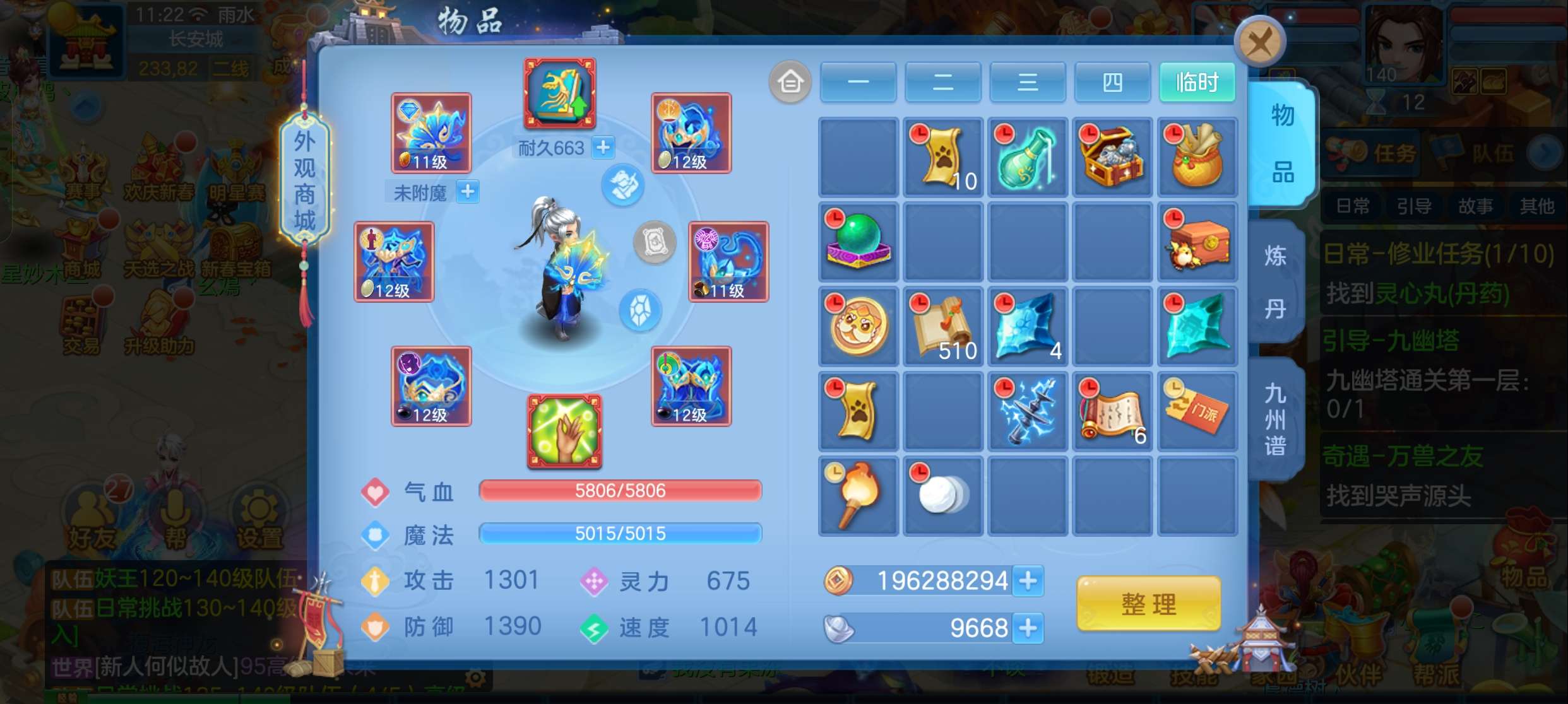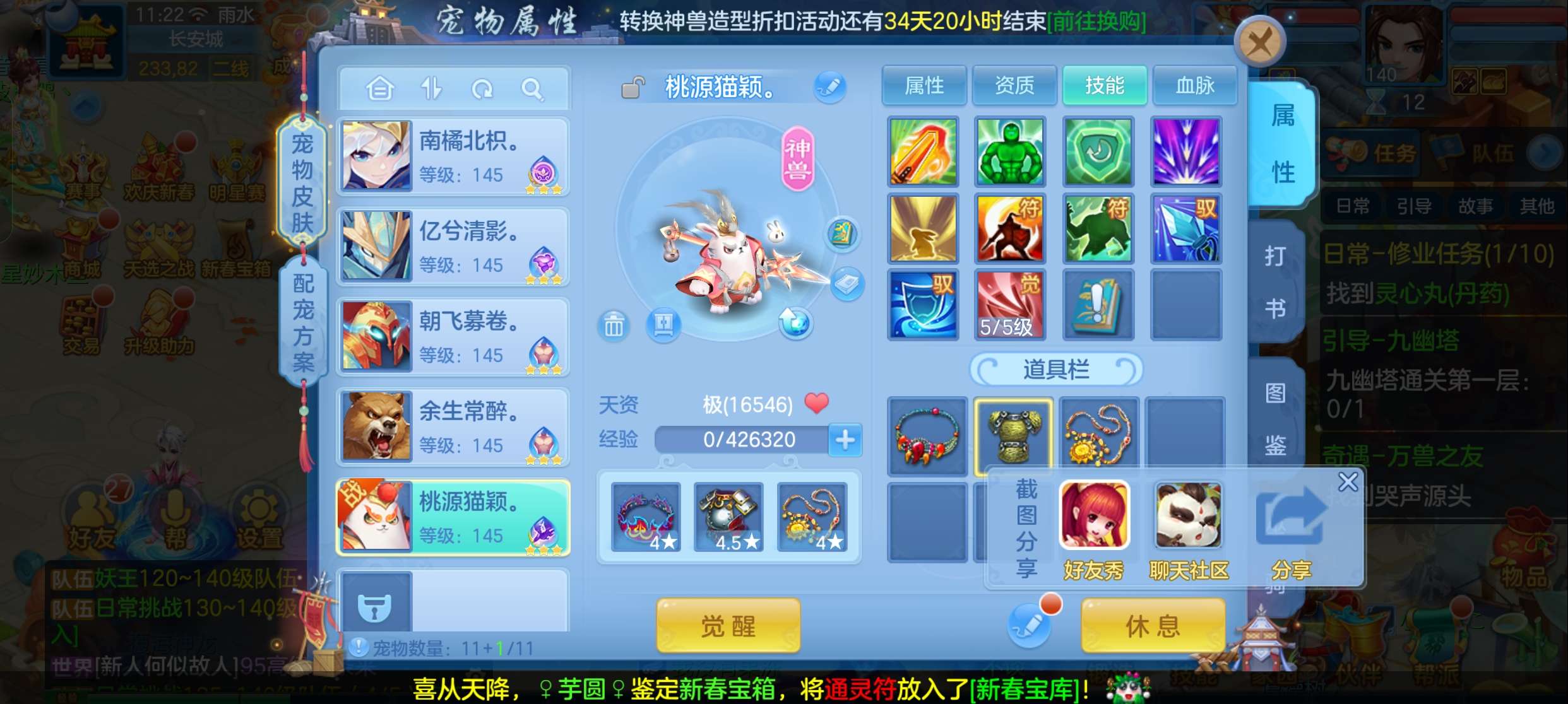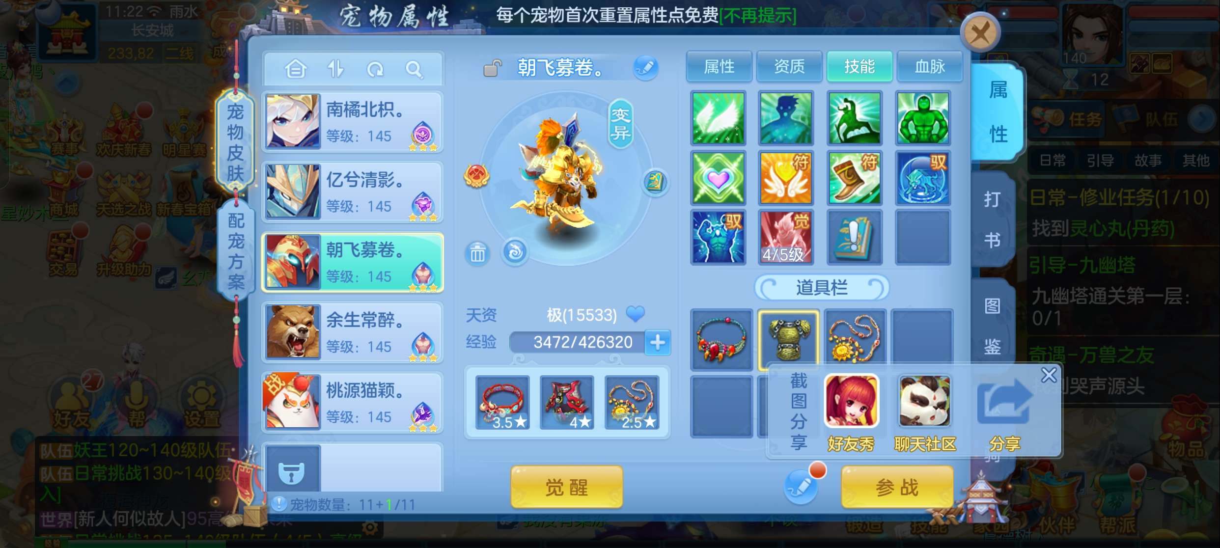 飞升140 648坐骑 宠物基本都带皮肤 修差一个宝宝全满 两套属性 神武币和金币都不少有存货