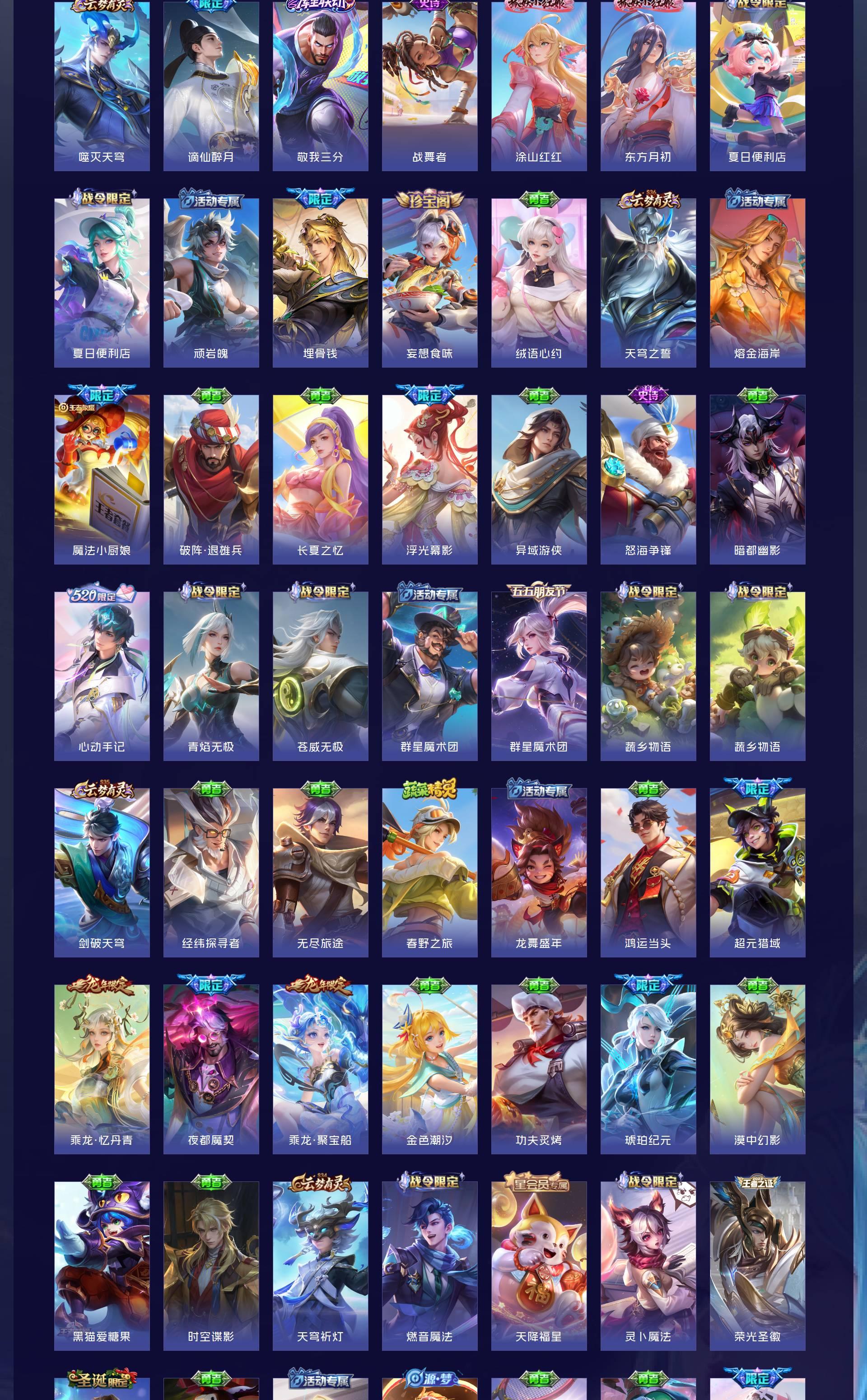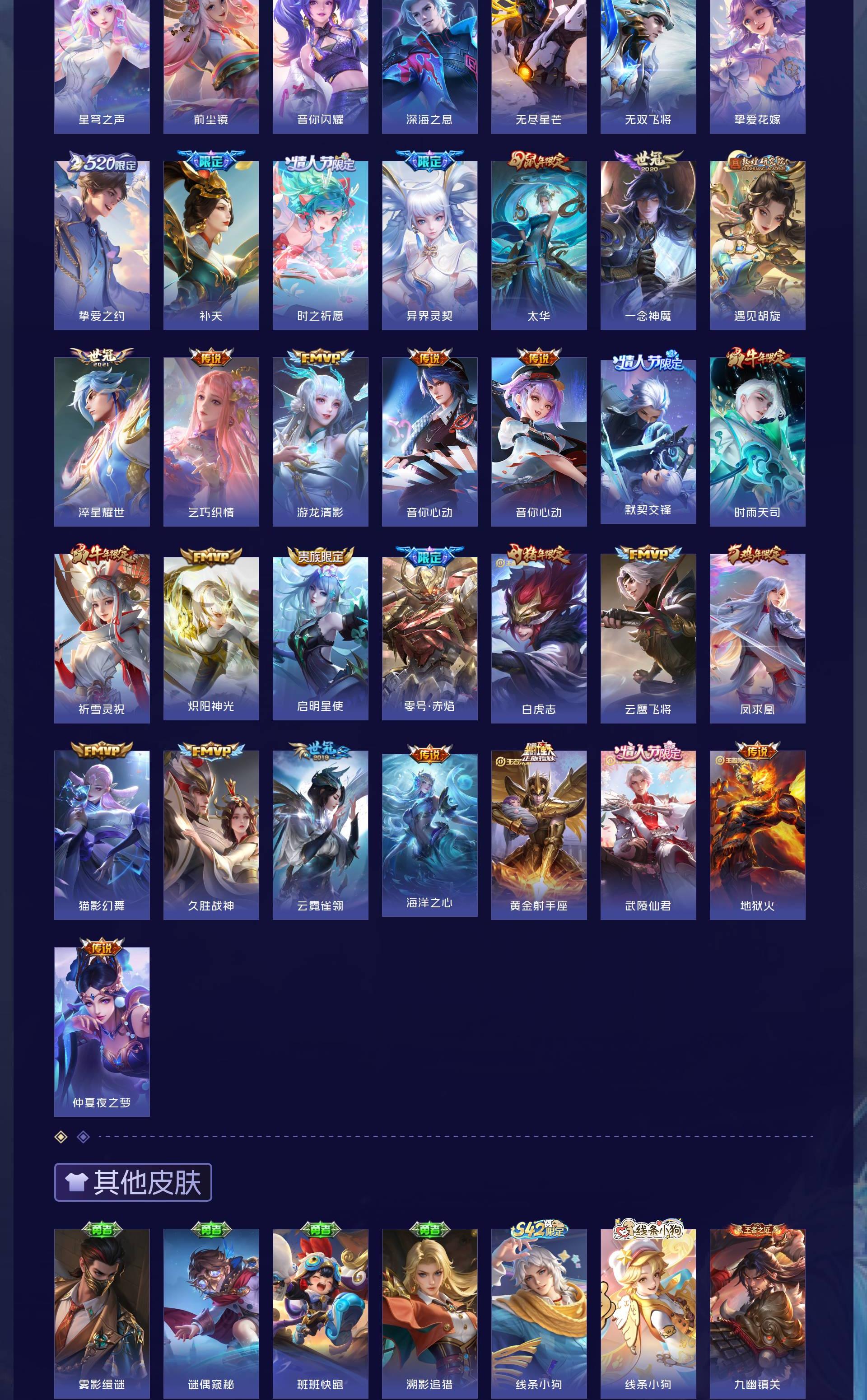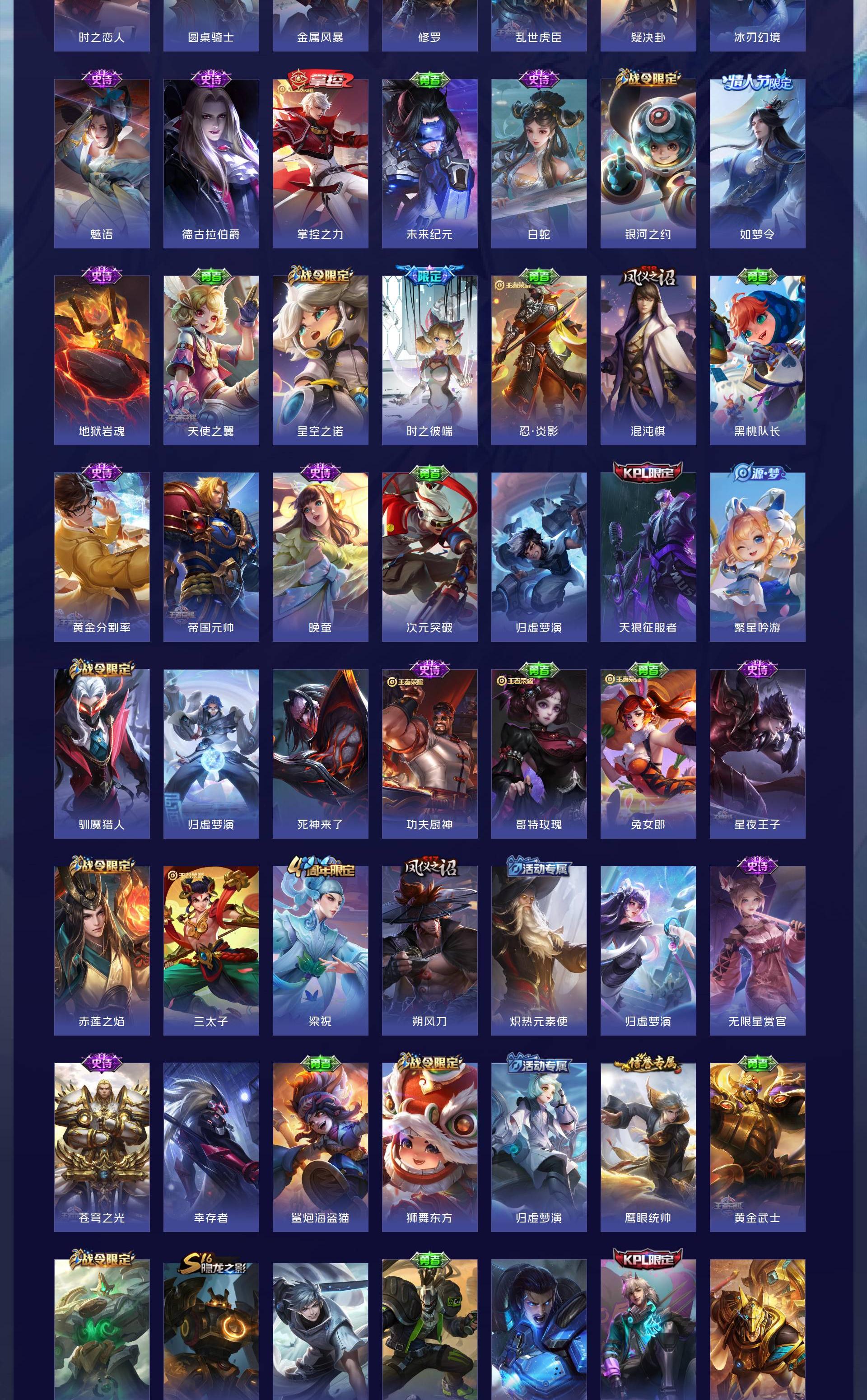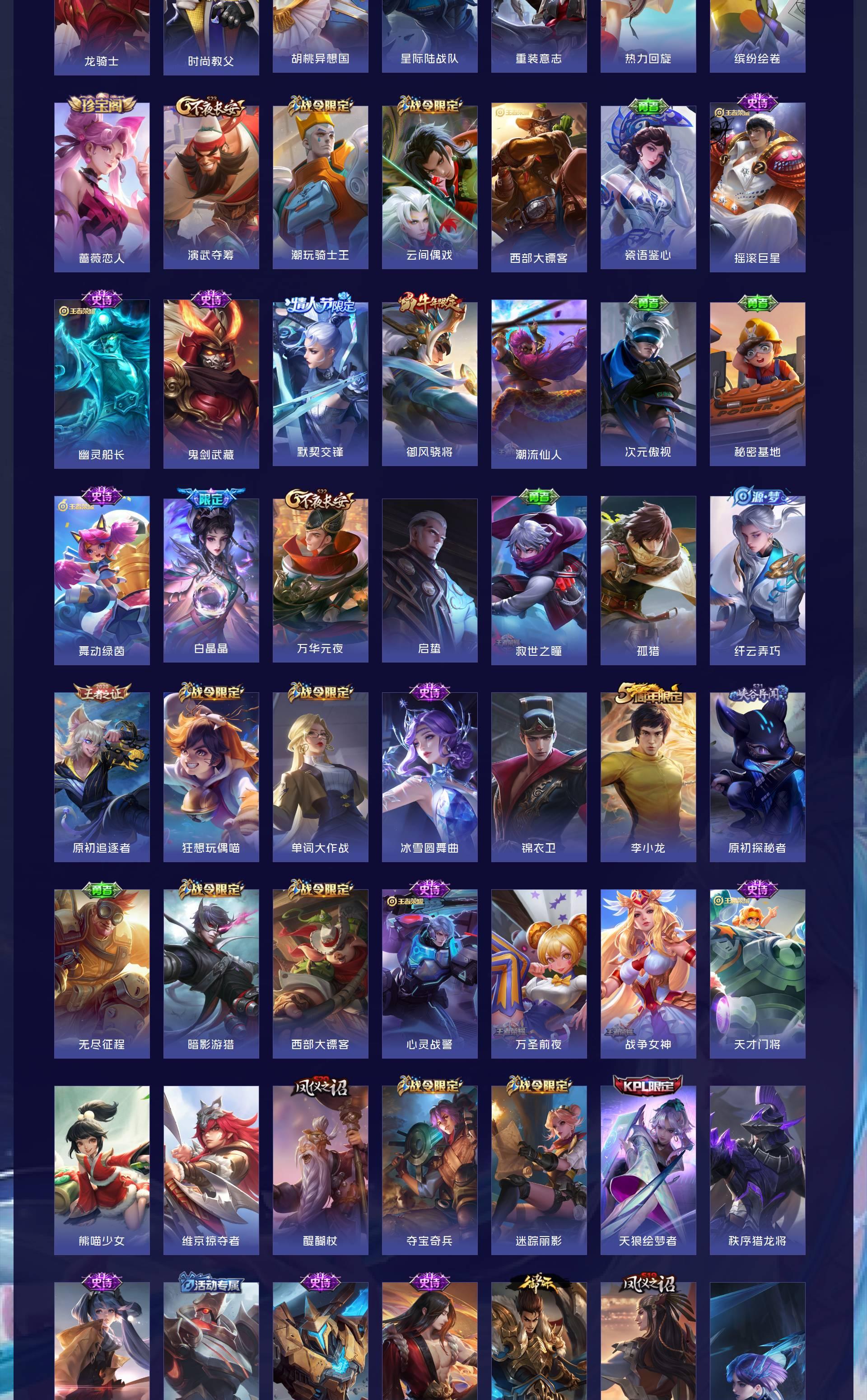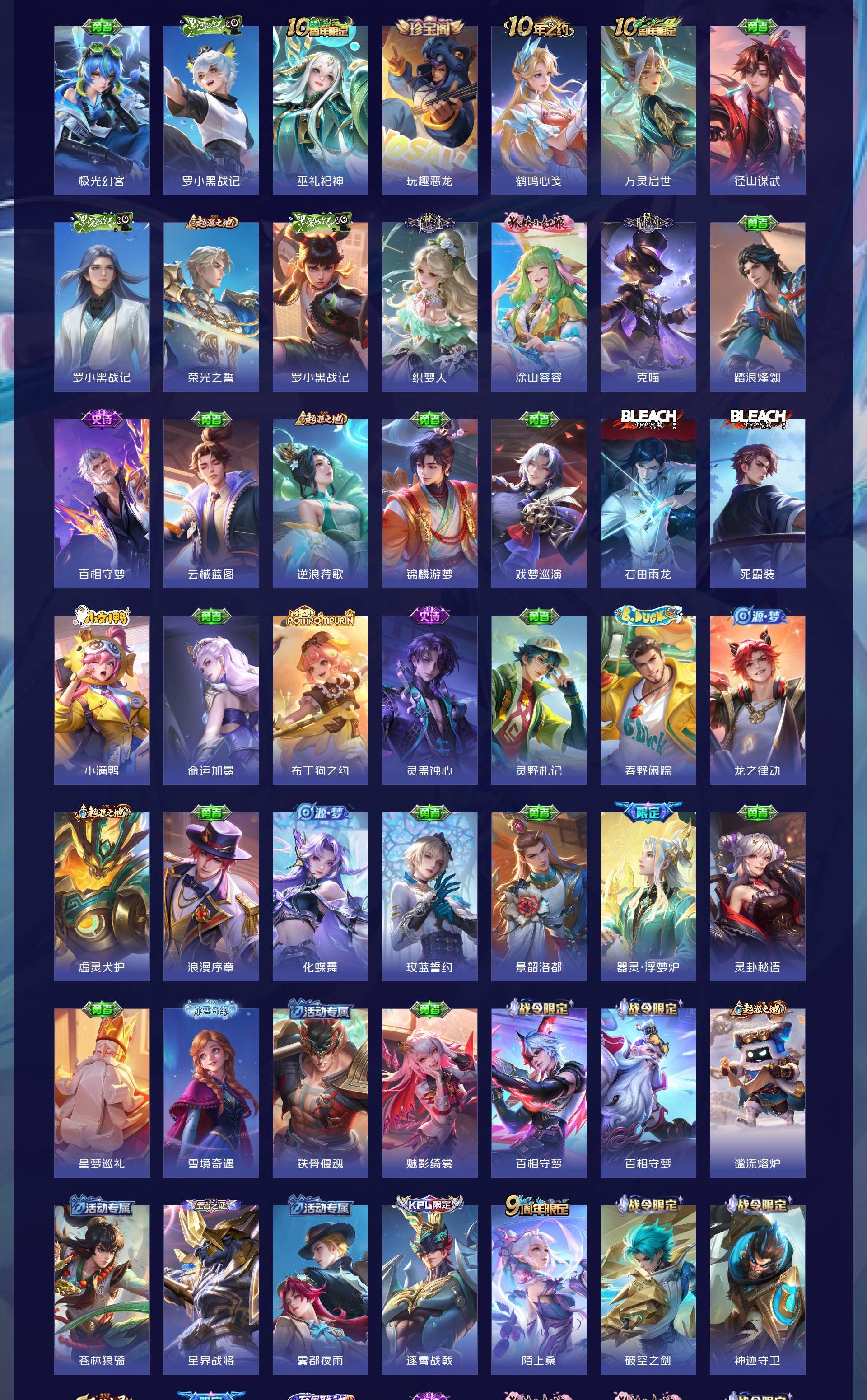 V10 皮肤596 英雄129 荣耀王者 荣耀典藏12 无双皮肤7 珍品传说3 传说86 其他皮肤493