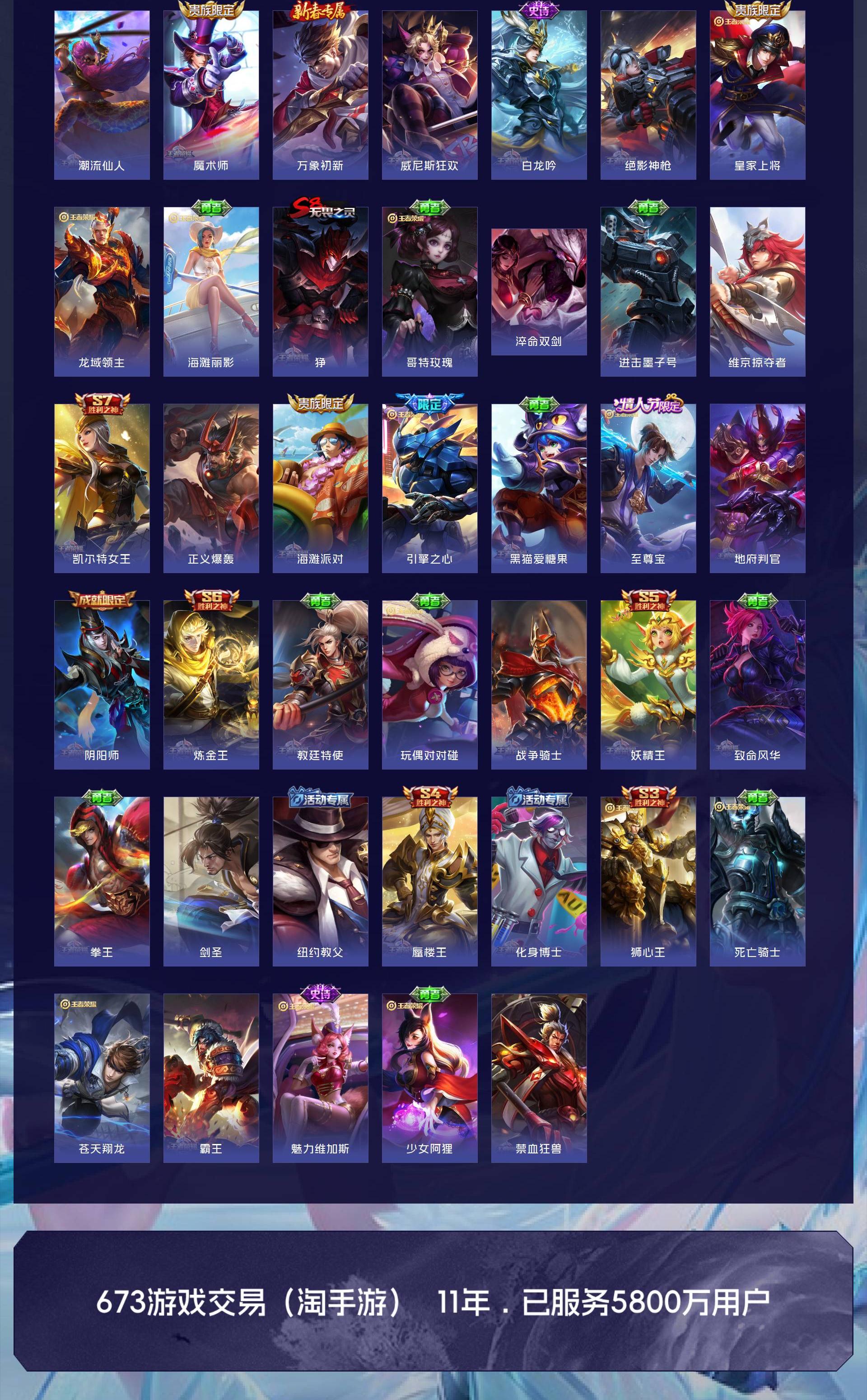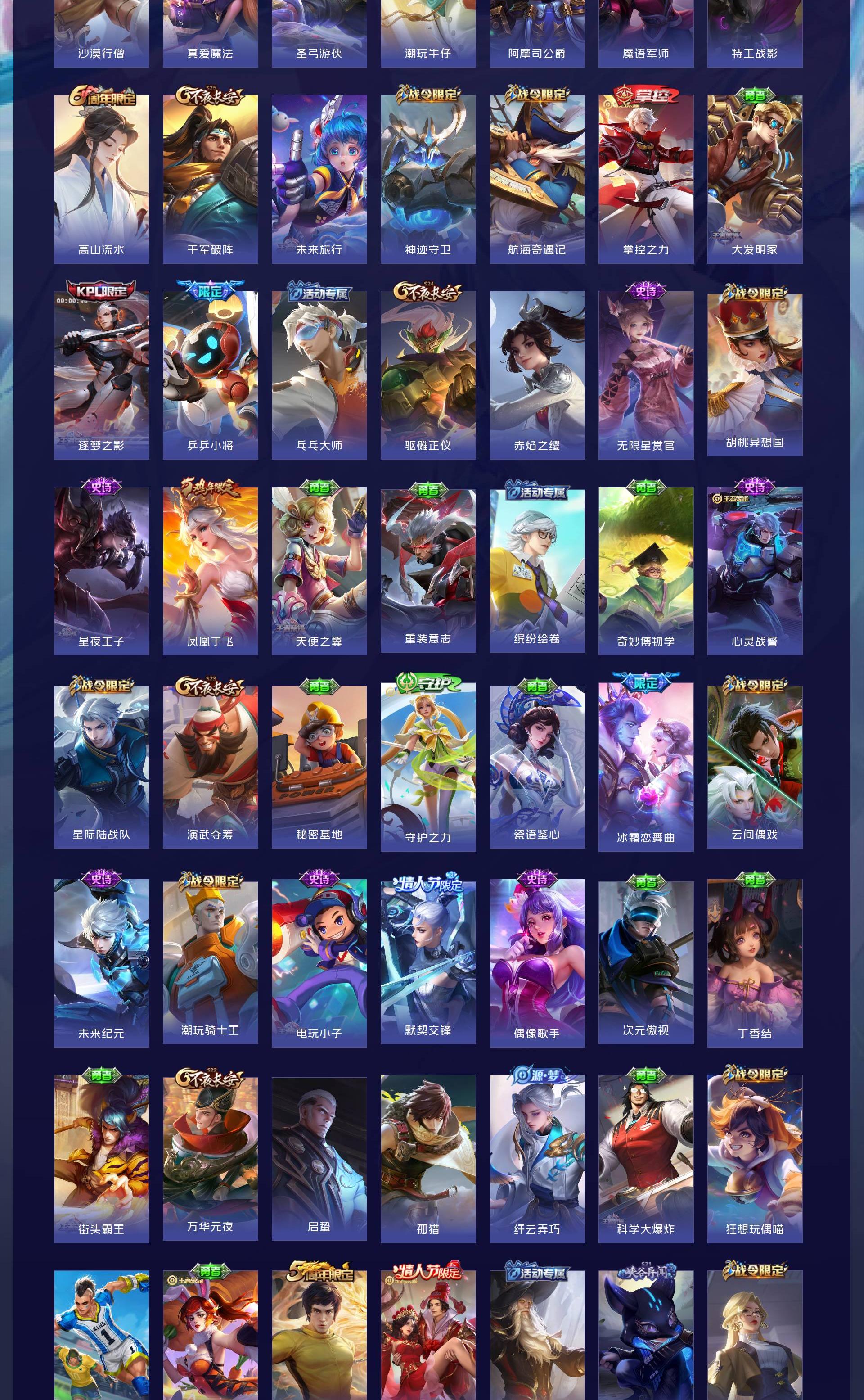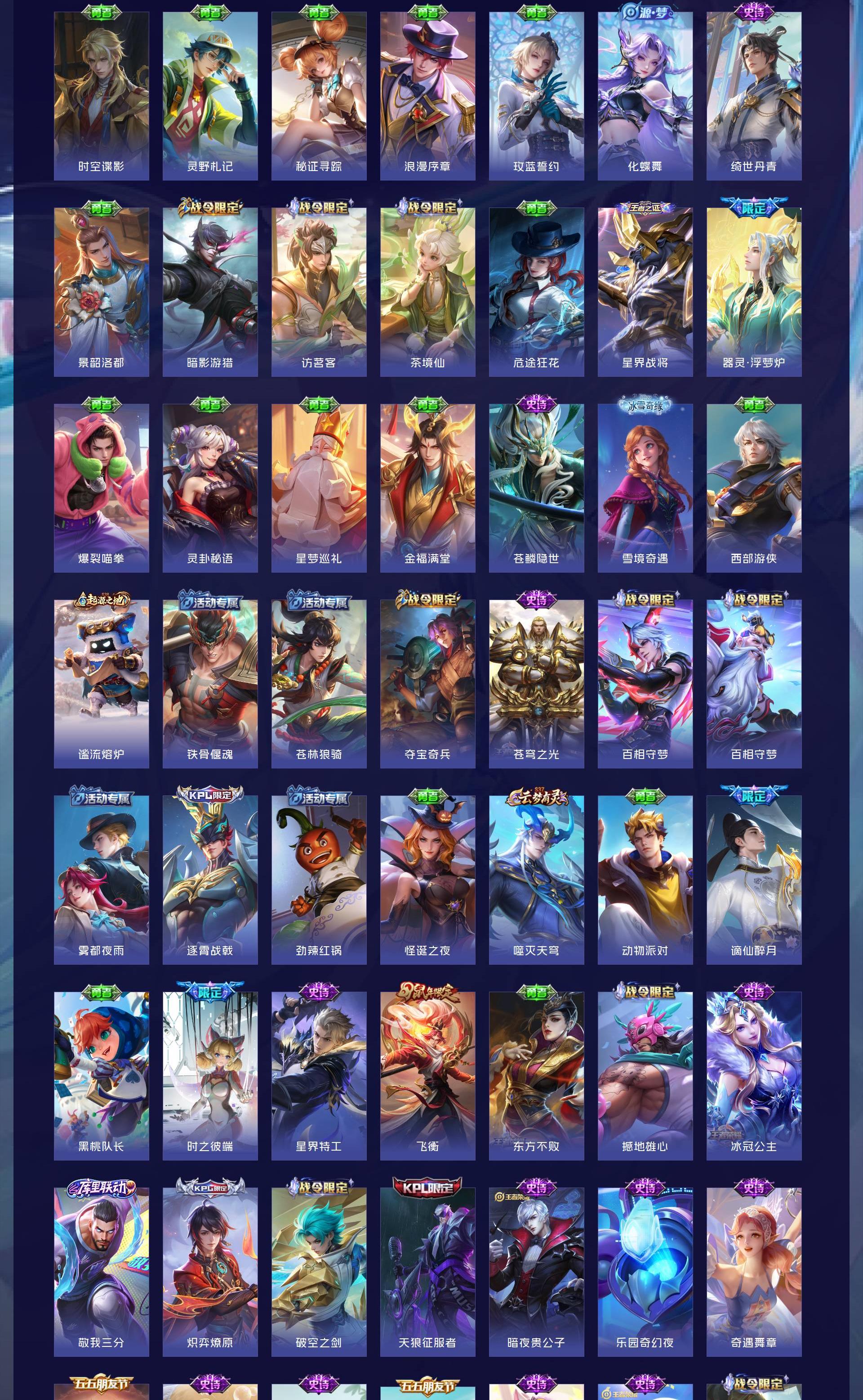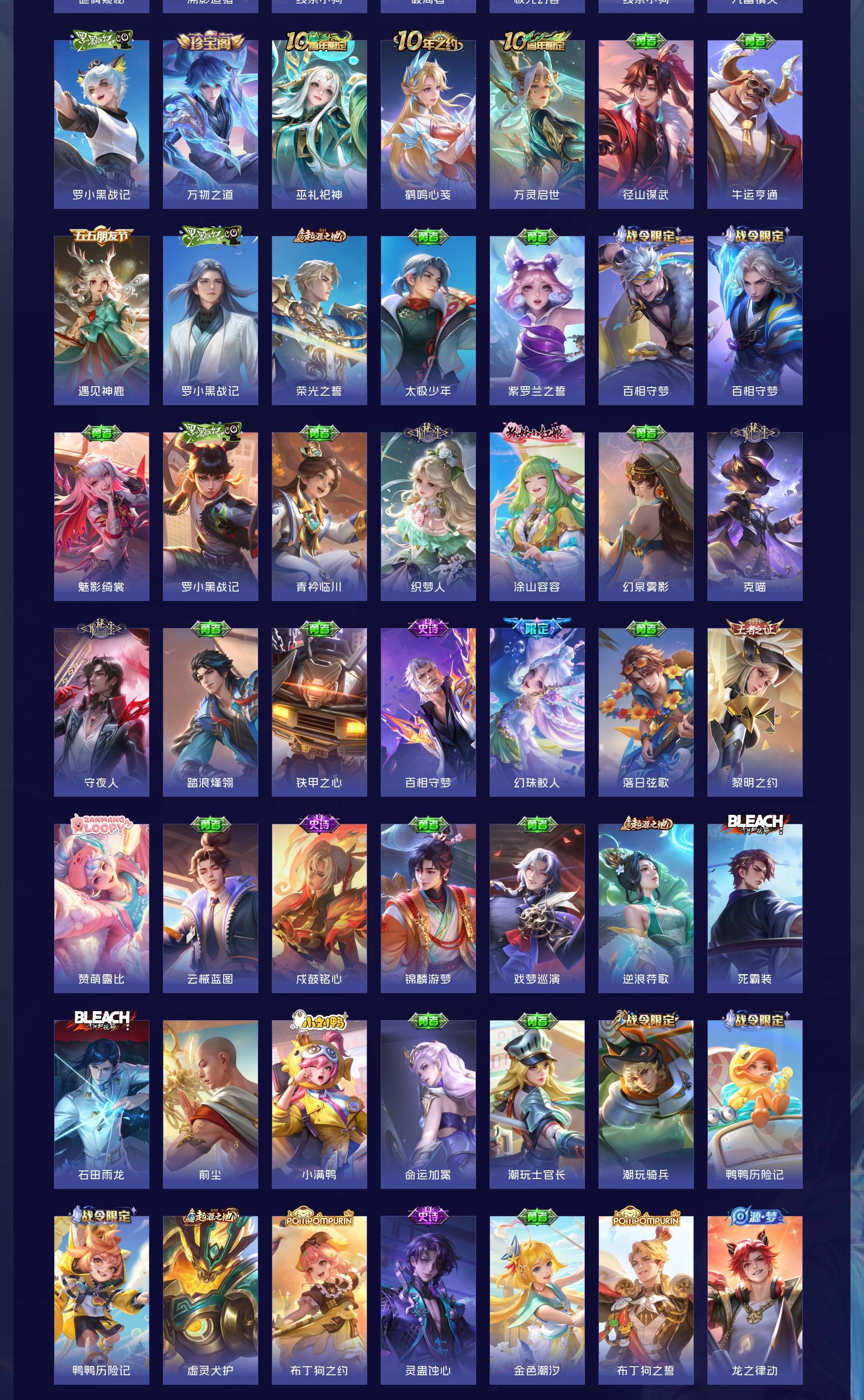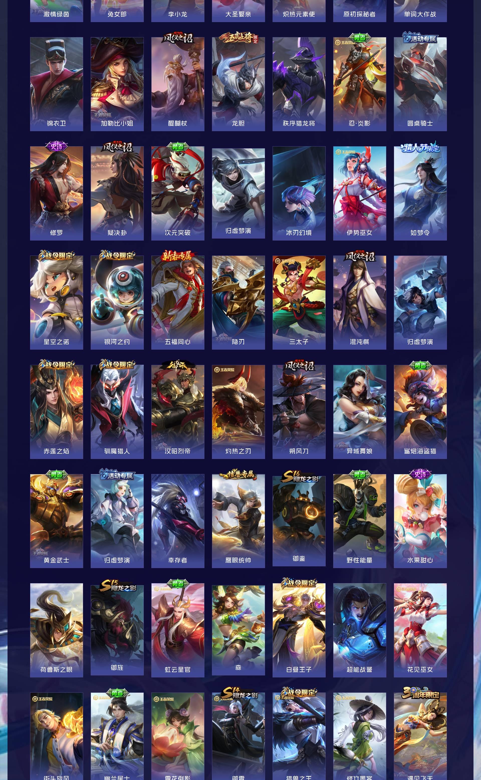V10 皮肤501 英雄128 至尊星耀 荣耀典藏4 无双皮肤4 珍品传说6 传说46 其他皮肤446