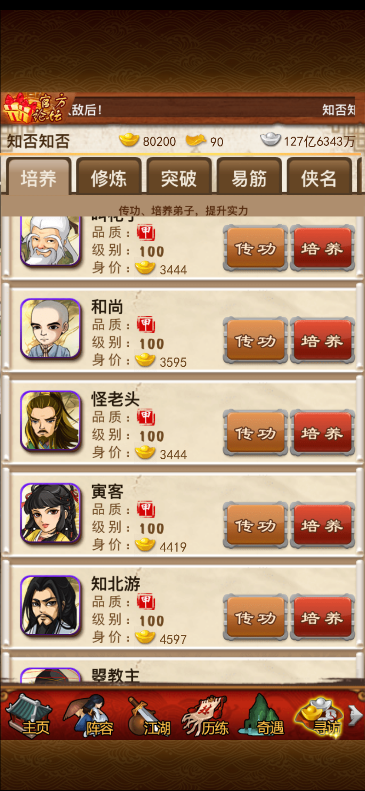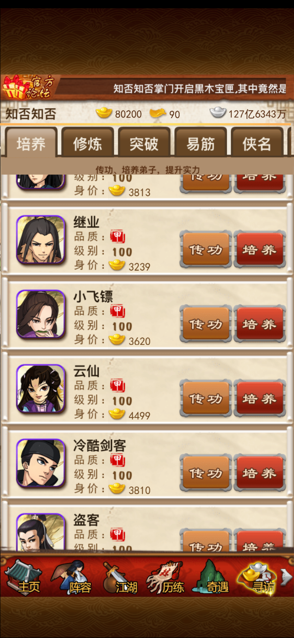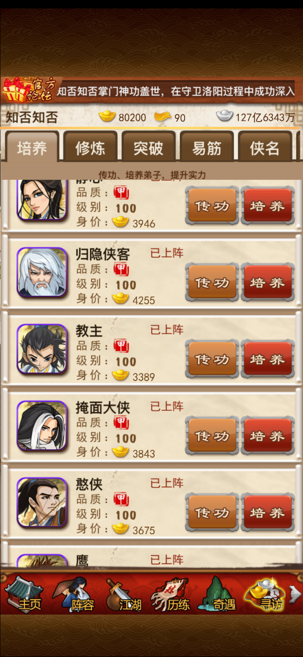 卡7人传记郭襄,传记沈浪,紫色弟子很多很多满级