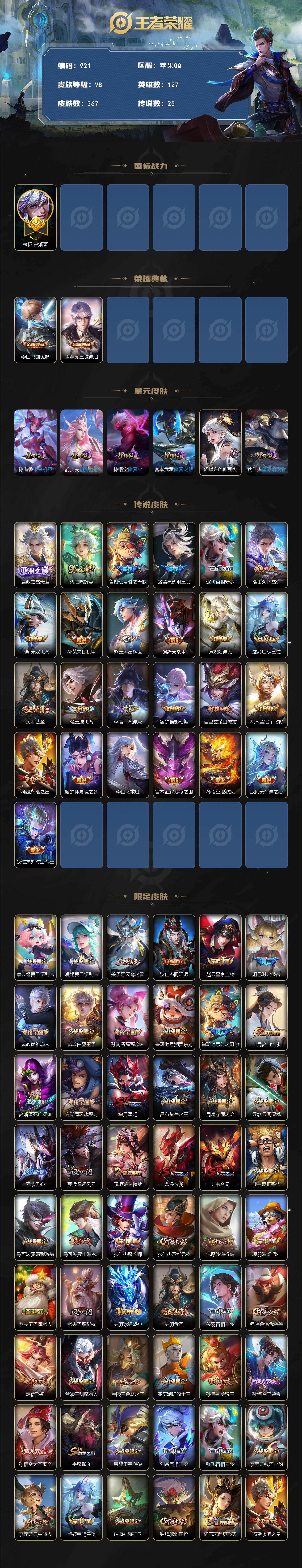 /V8-127英雄-367皮肤-2典藏皮肤-25传说-106史诗,星币2600+,cc8464