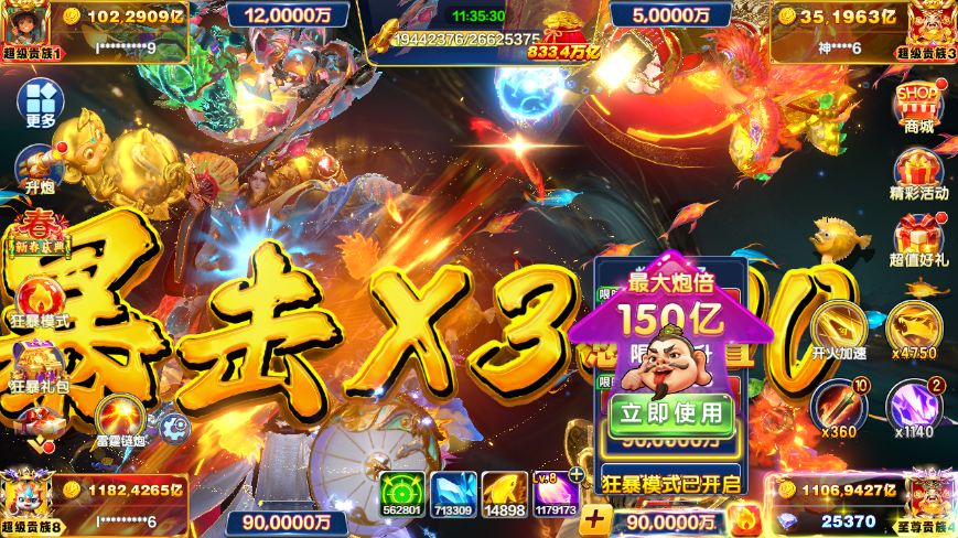 捕鱼大咖无限火力纯玩,各种分数都有可定制,一千万亿200左右