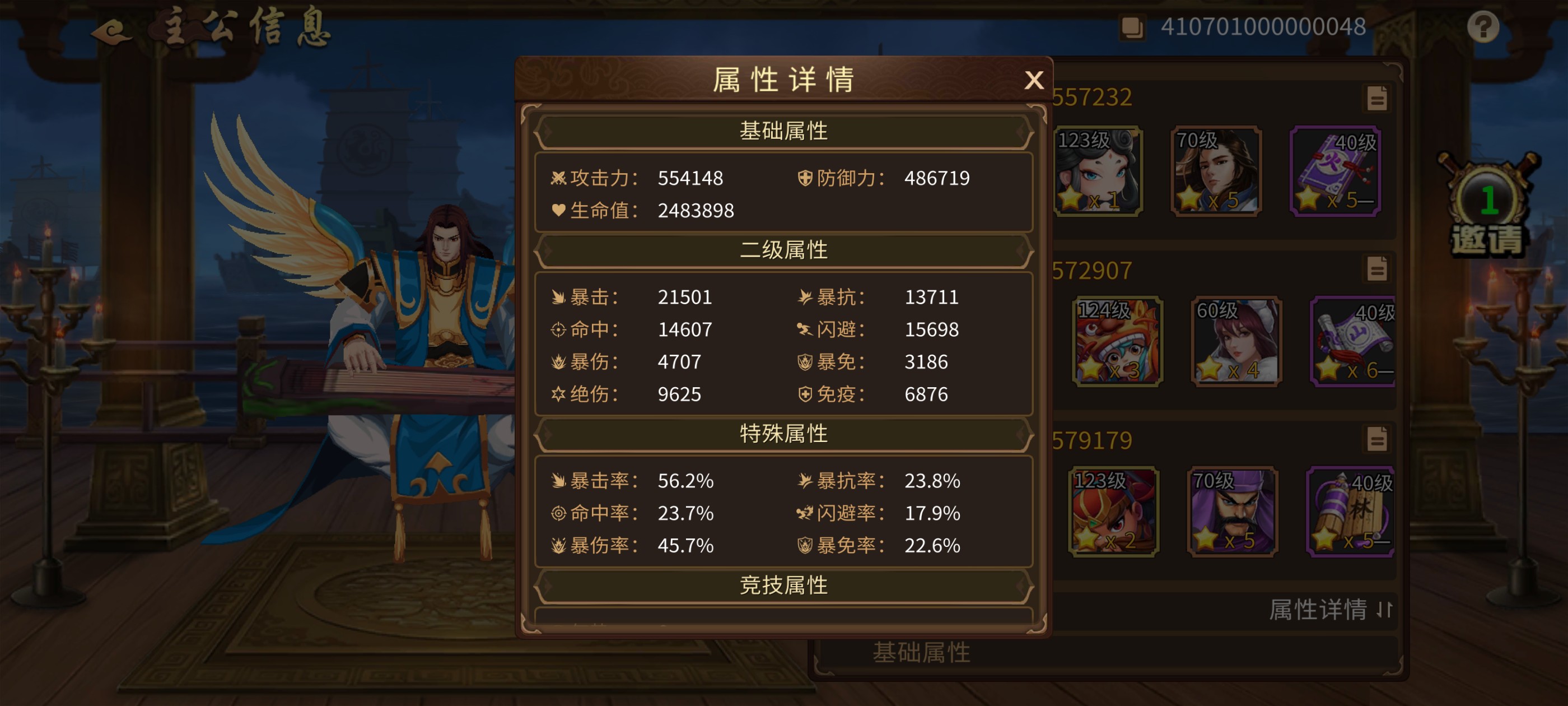 充值不少的潜力号,皮肤多!主将攻击近60万 !
