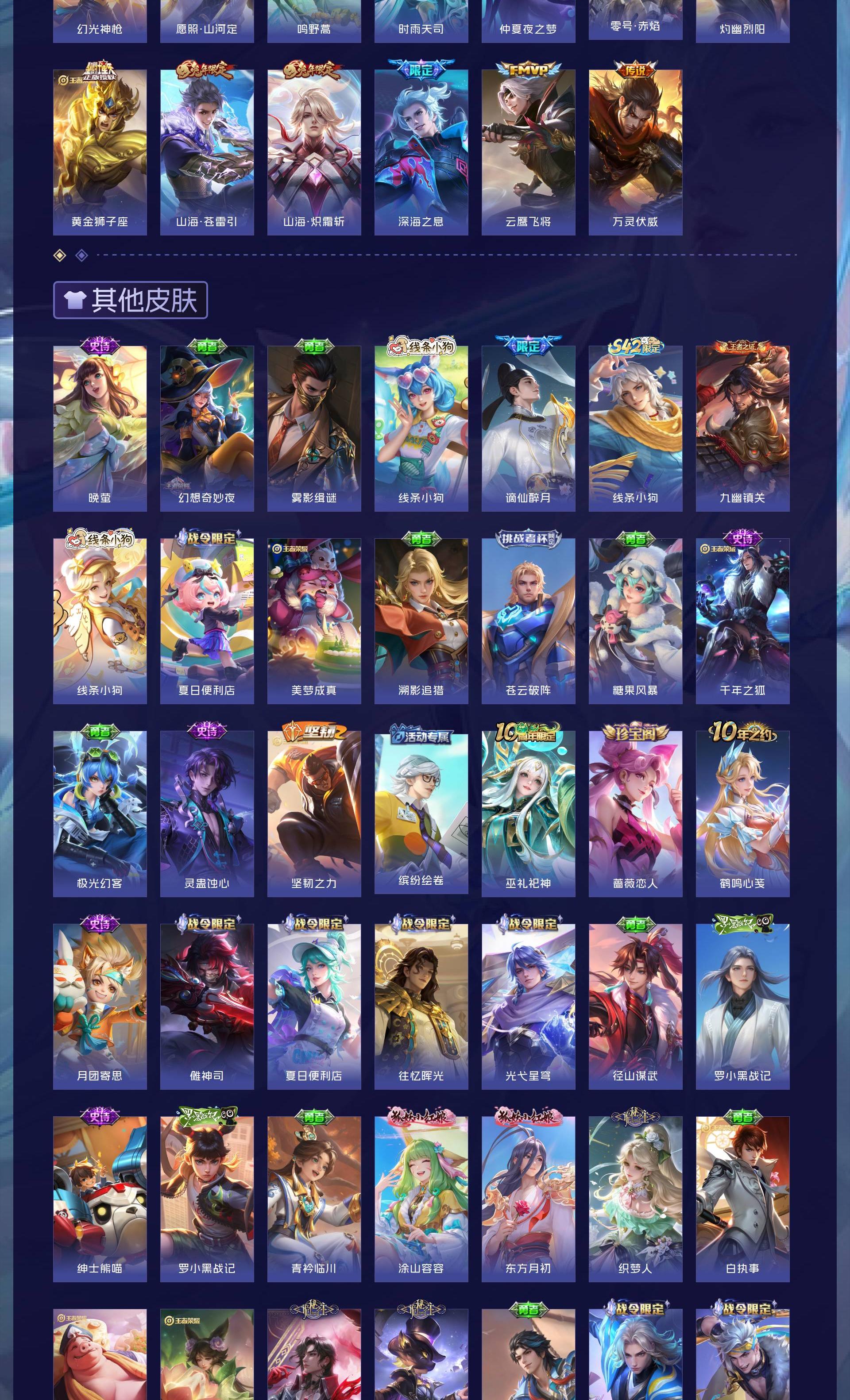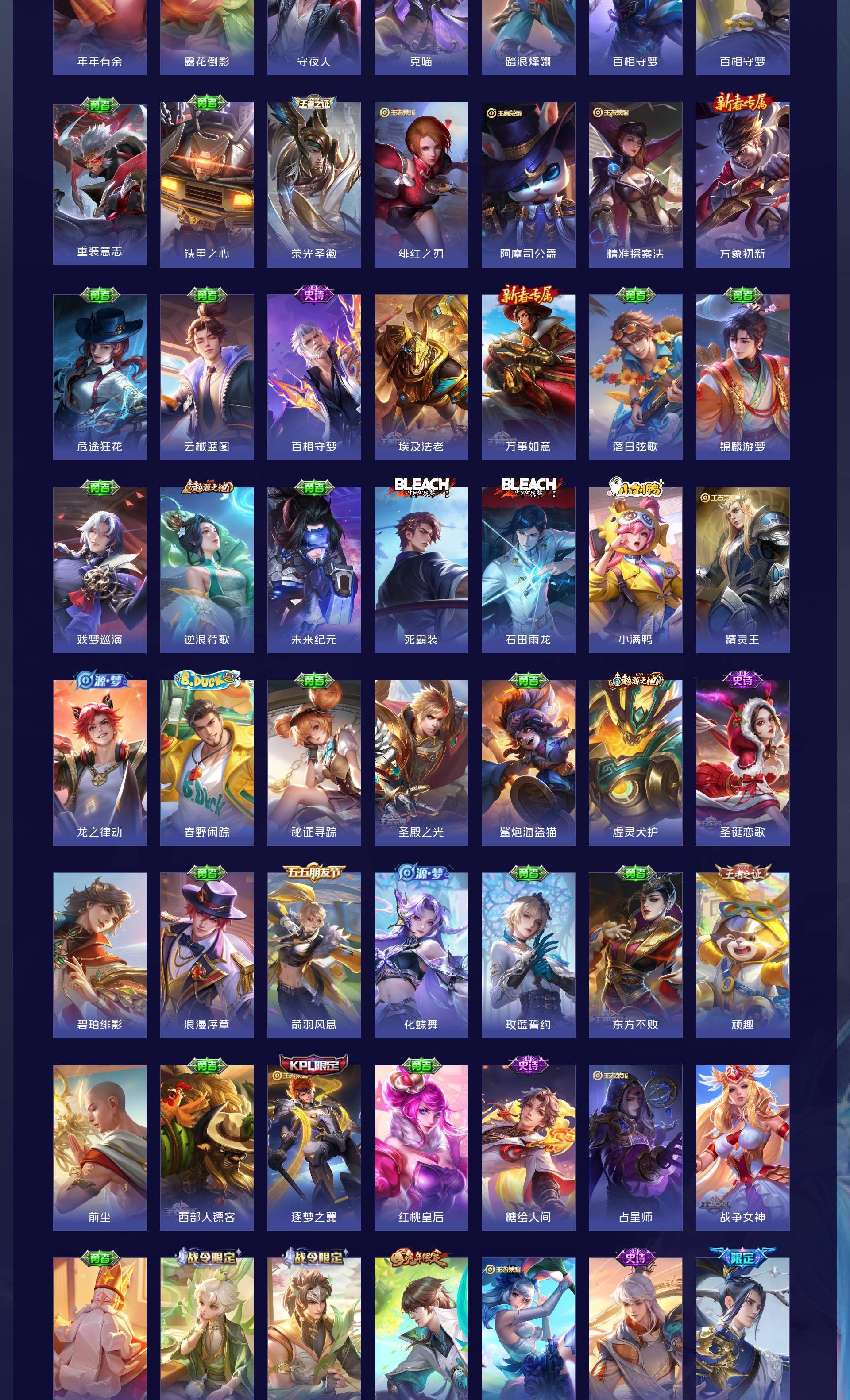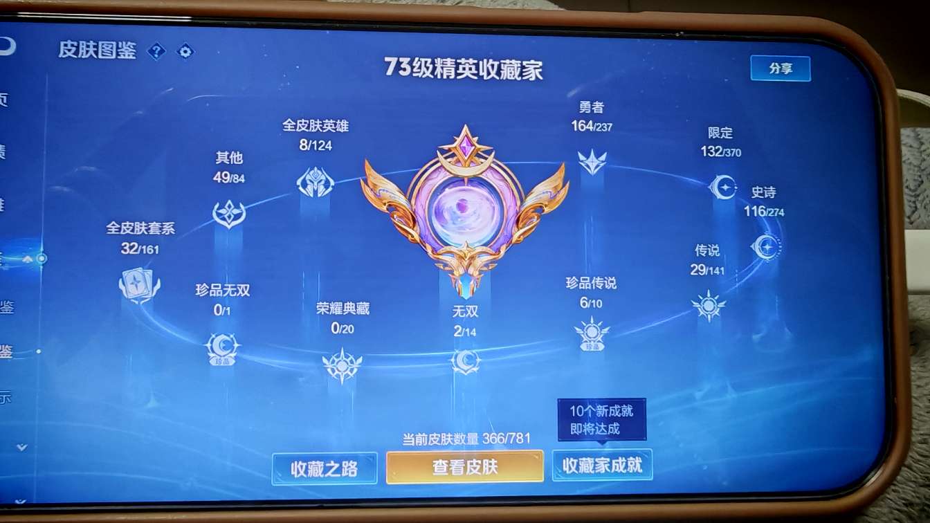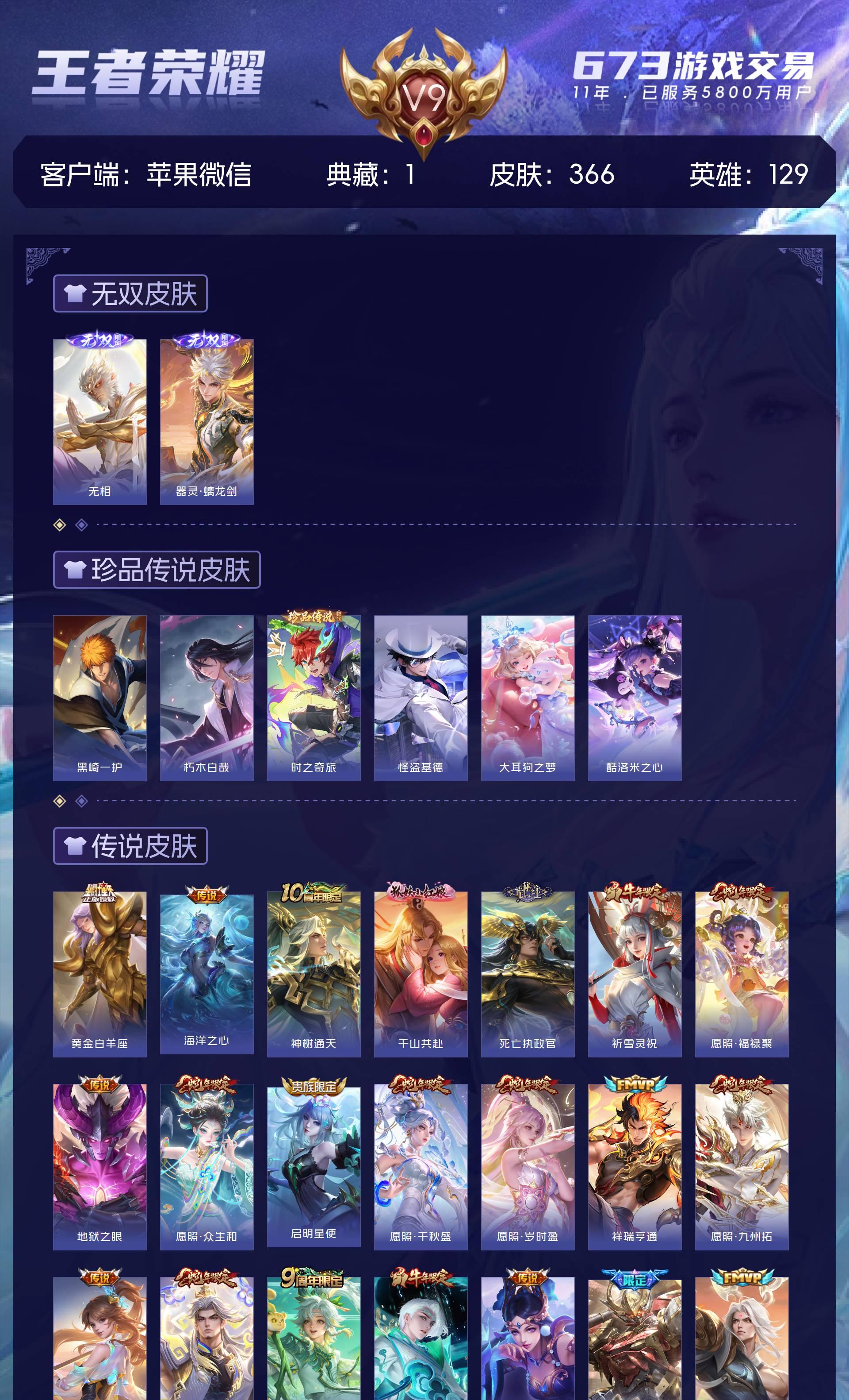 V9 皮肤366 英雄129 荣耀王者 荣耀典藏1 无双皮肤2 珍品传说6 传说27 其他皮肤331