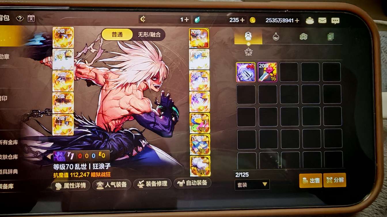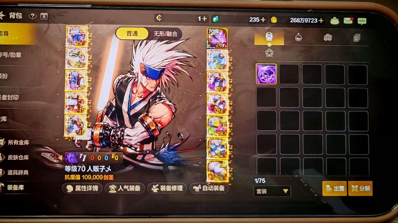 地下城手游有三套天空,红狗抗魔11万多全身20,魔剑武器装扮,全部毕业。其它10万多抗魔。连体号。