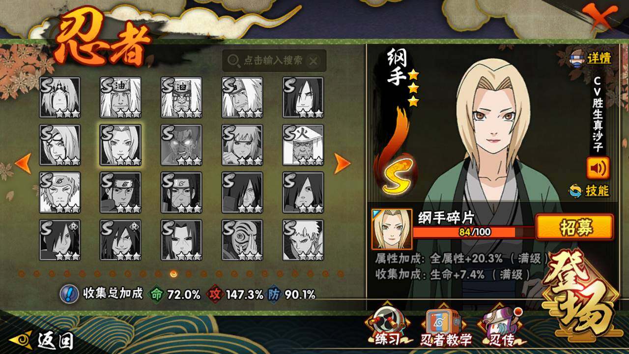 V12 1081万战力 20S-43A 自来也82片 纲手84片 十尾带土86