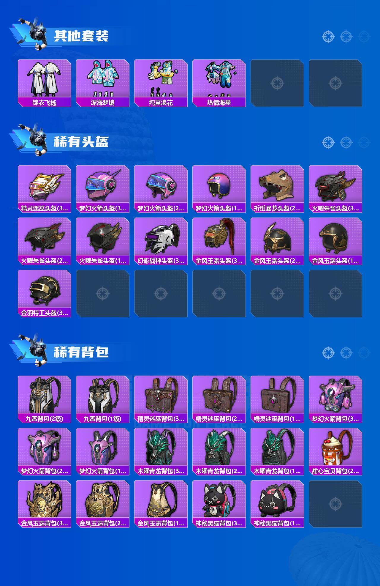 【粉色套装】:粉装-火曜朱雀,粉装-精灵迷巫,粉装-梦幻火箭,粉装-金风玉露,粉装-缤纷油彩,粉装-放