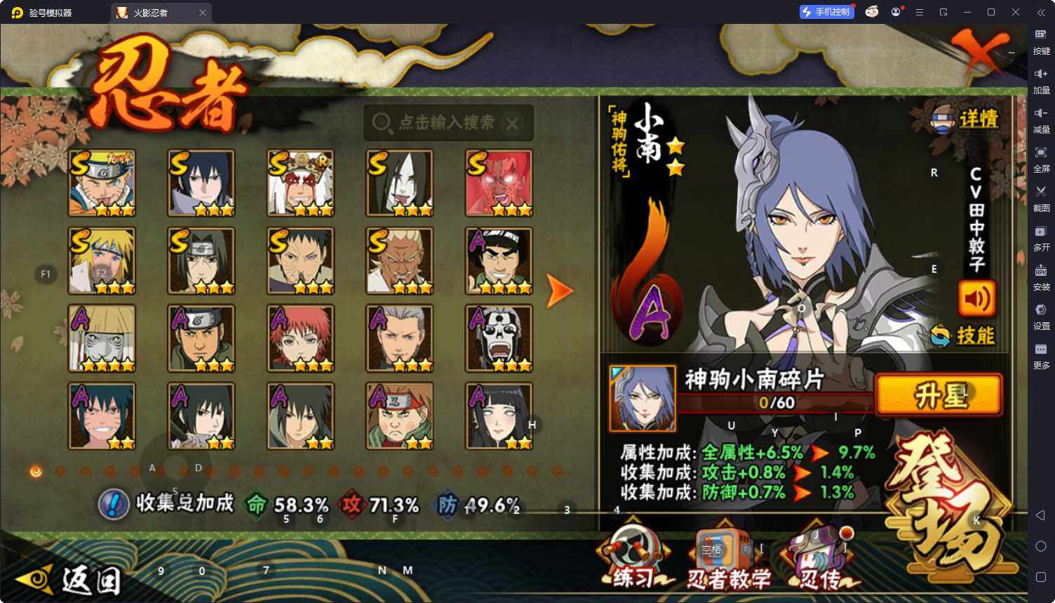 V2/战力603W/S忍9/A忍24/4星干柿鬼鲛/疾风传-我爱罗