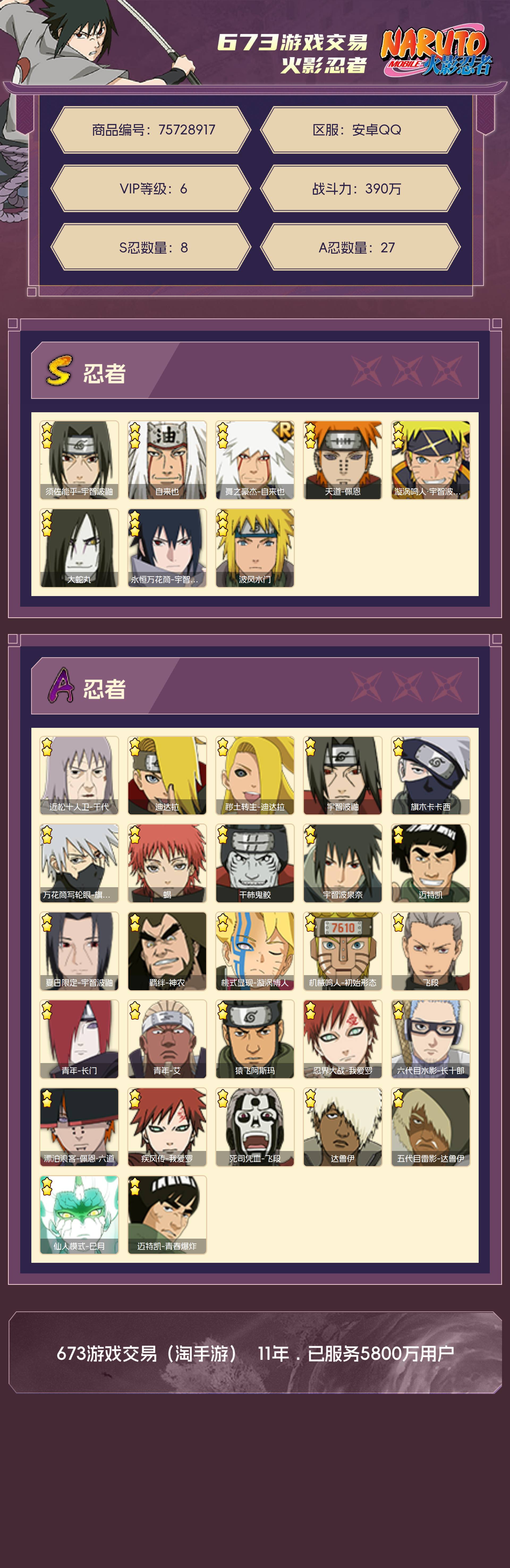 角色等级139 战斗力390万 S忍8 A忍27 6 段位下忍