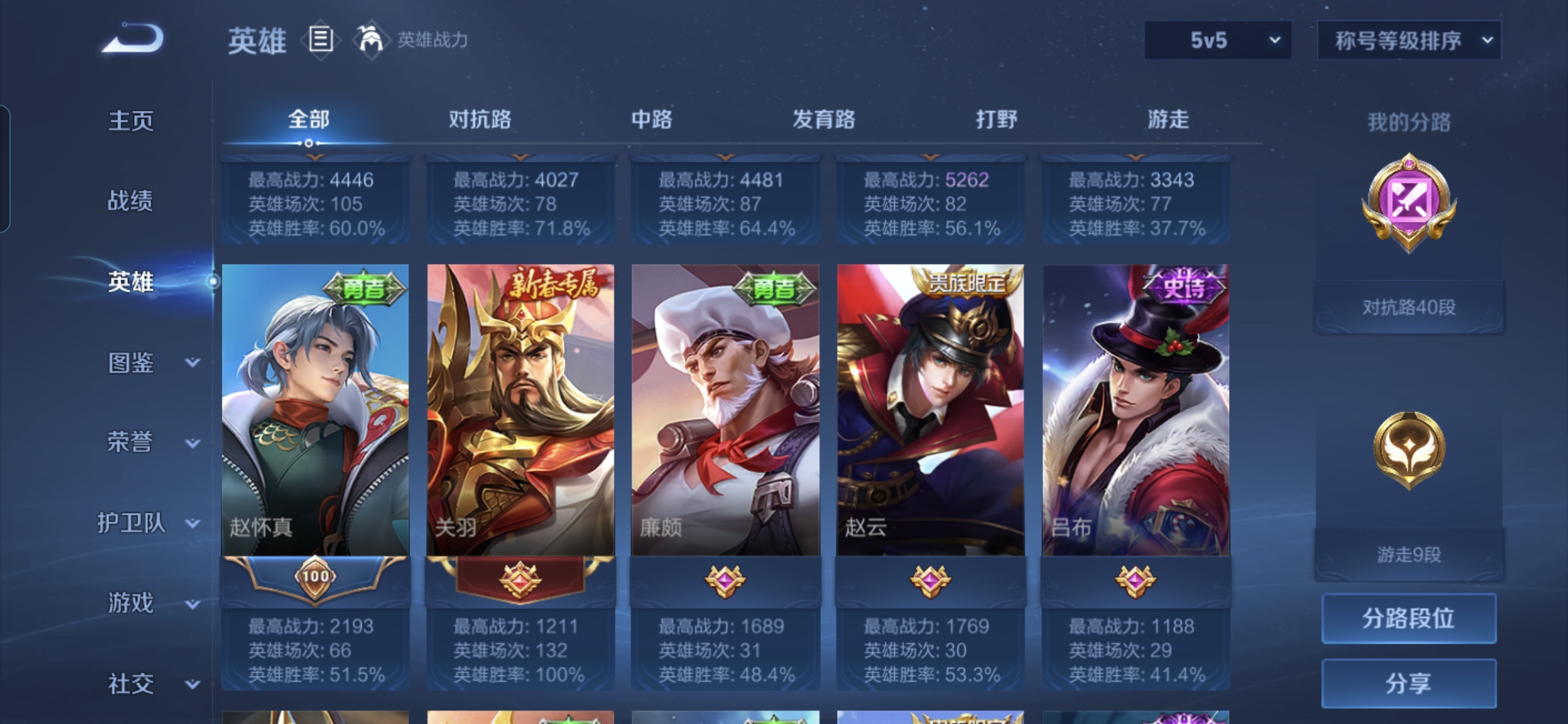 132场百分百胜率关羽号,其他对抗路也是高胜率