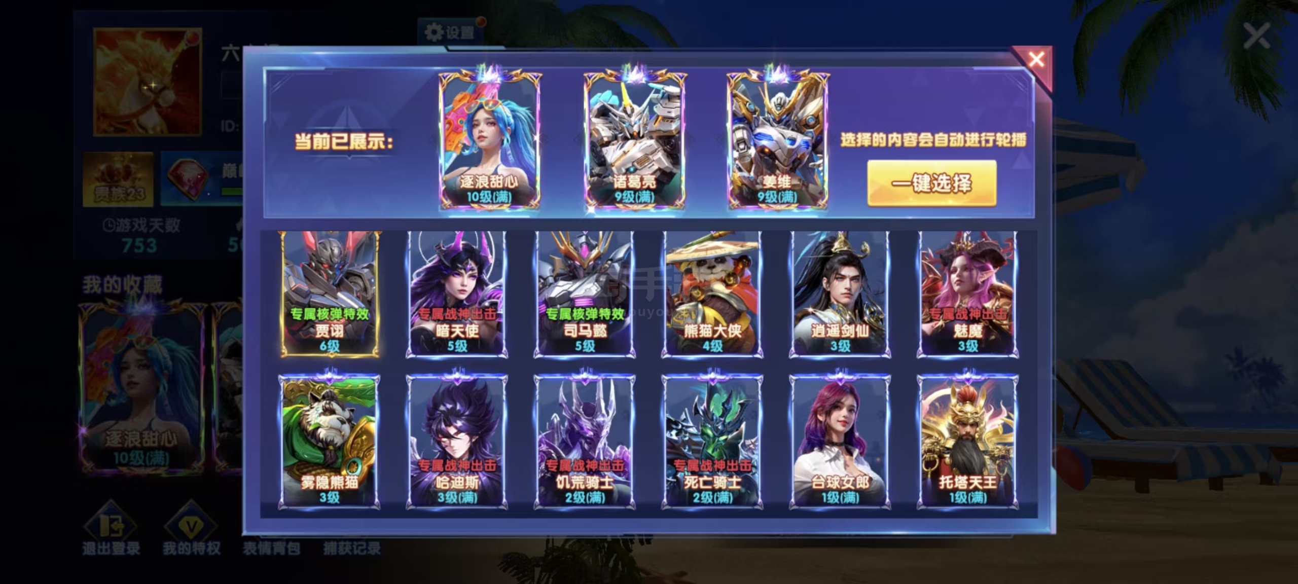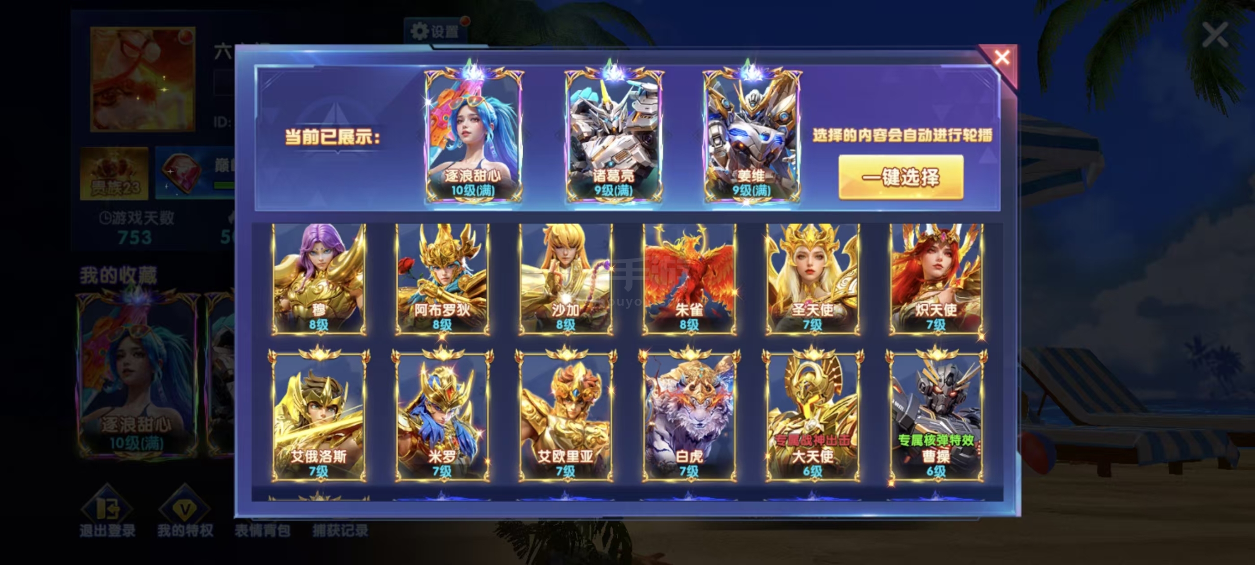 v23,15级套,返卷84.8,魅魔3级,西游99,机甲999,三国999,新战神999,山海699,天使8776超极品号差的碎片不多,加成可以搞到2300华为特权差3万12