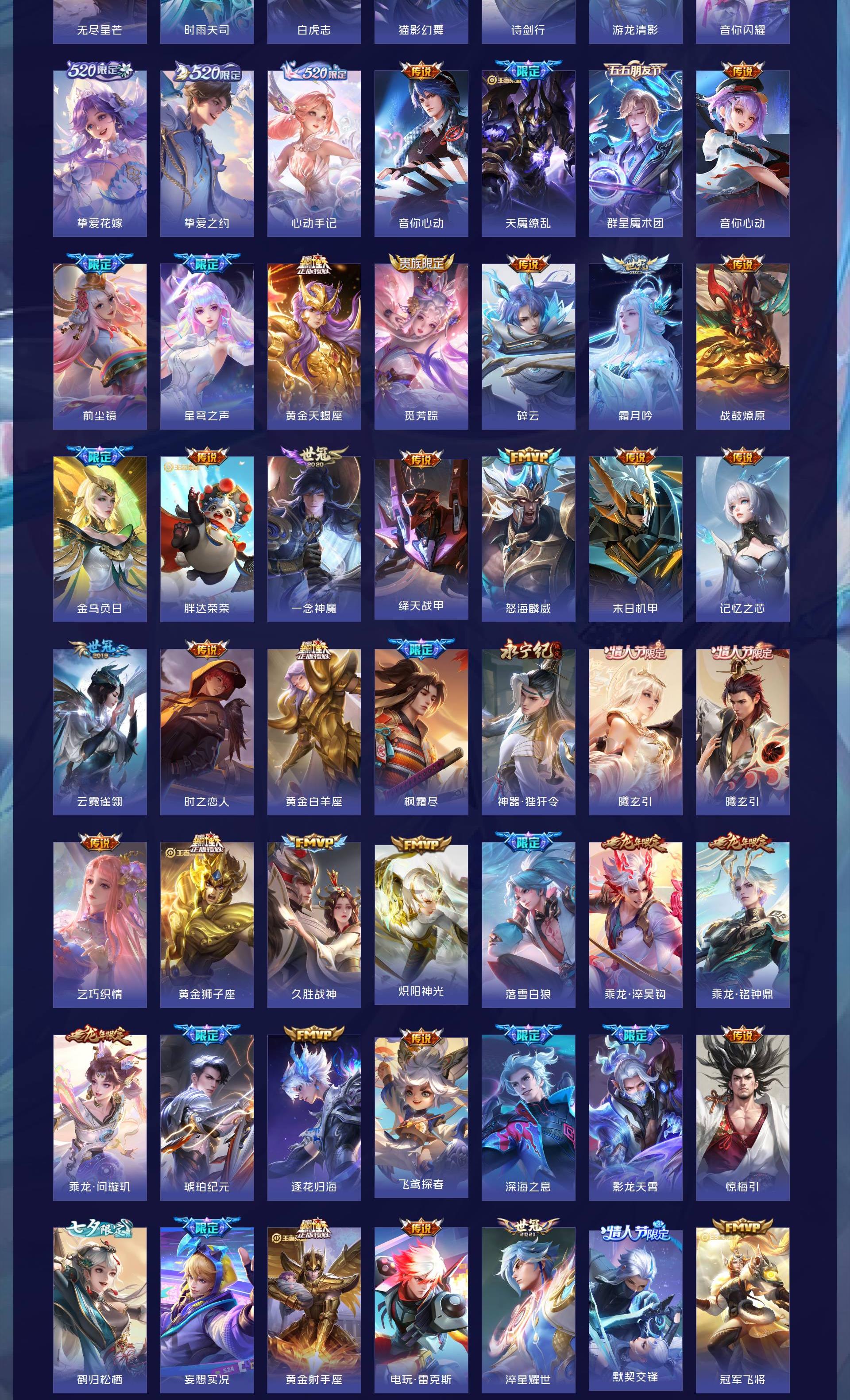 V9 皮肤567 英雄129 至尊星耀 荣耀典藏5 无双皮肤6 传说84 其他皮肤477
