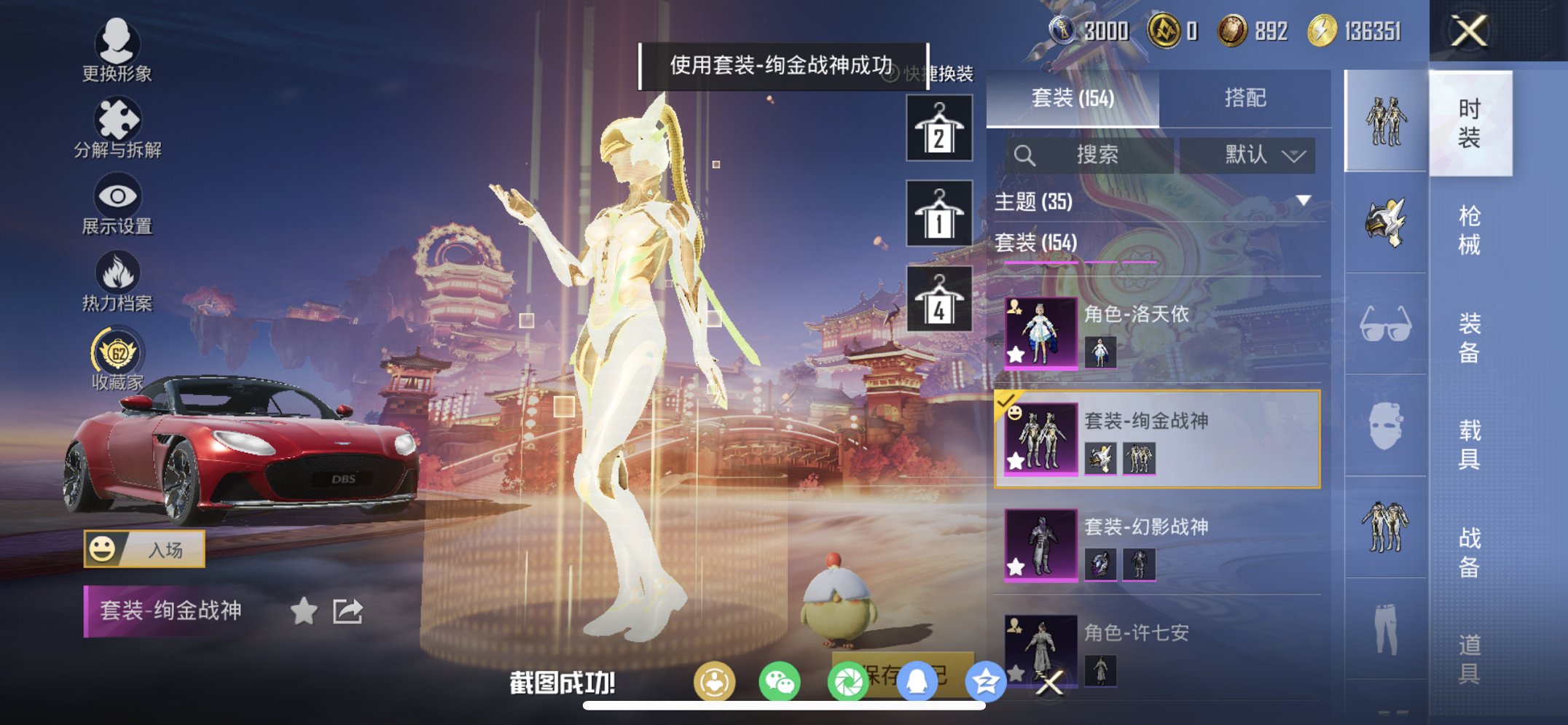 【绚金战神都市猎人小番茄M4心之恋语7特效枪4粉装1载具素材号 秒换绑不用等】 苹果Q区-60707热力值-7印记-154套装-195枪皮 【1载具】 阿斯顿马丁S红色【3稀有】 都市猎人 红熊茄茄(权威小潘茄) 奇异狩猎者【4粉装】 洛天依 绚金战神 未来歌姬 幻影战神【7特效枪】 M416-心之恋语(4级) AKS-74U-森灵之息(5级) Mk14-福马献瑞(5级) AA12-G-萌骑幻想(1级) MG3-洛神天依(7级) Kar98K-巳巳如意(5级) DP-28-豹影疾电(5级)【19