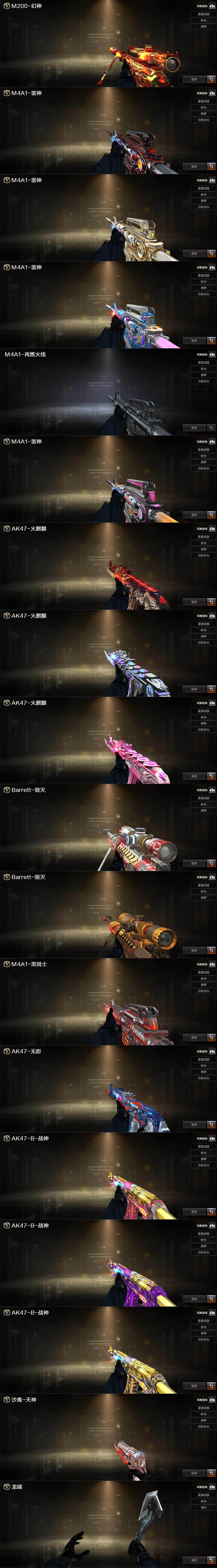 【热门武器】:QBZ03-金色蔷薇,M200-幻神,死亡之眼,M4A1-黑骑士,汤姆逊-烈龙*3,沙鹰-修罗