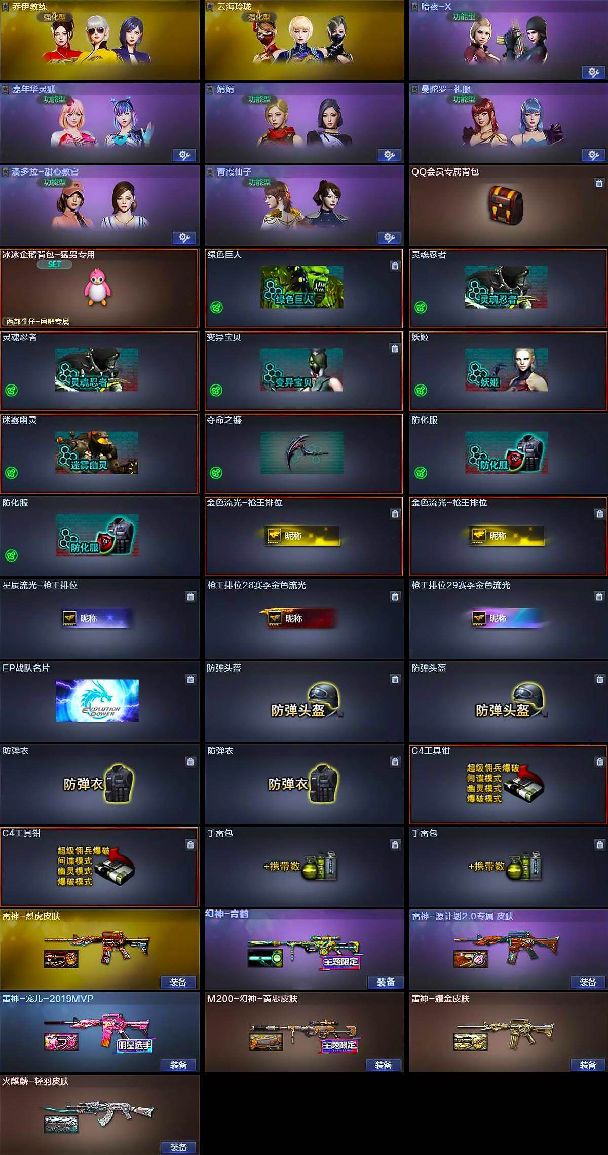 【皮肤】:M200-幻神-黄忠皮肤,幻神-青鹤,雷神-耀金皮肤,雷神-宠儿-2019MVP,雷神-烈虎皮肤,雷神-源计划2.0专属 皮肤,火麒麟-轻羽皮肤