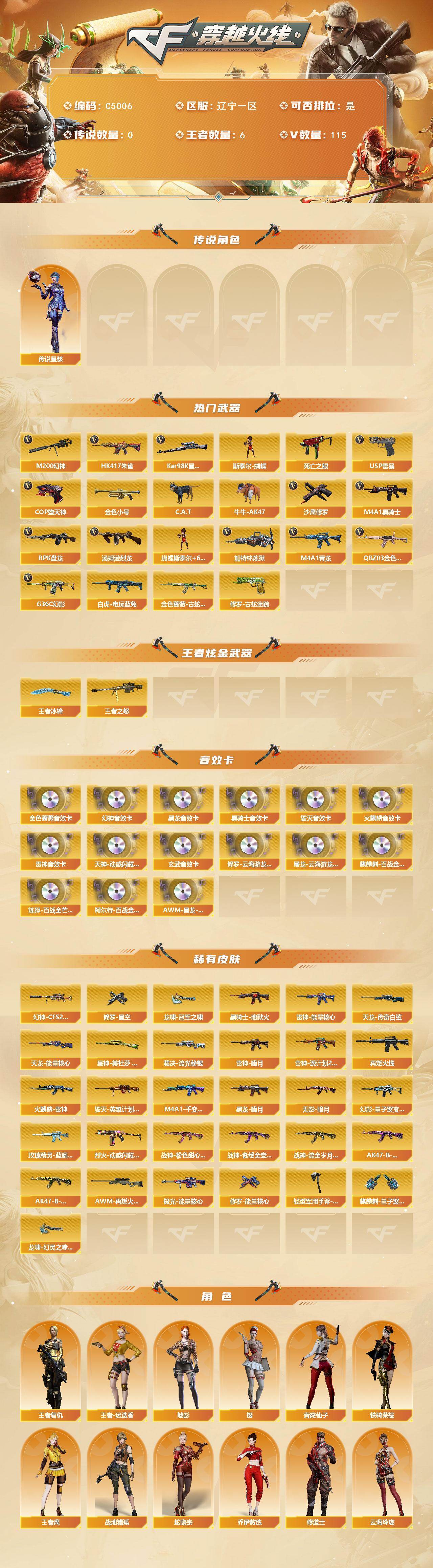 【C5006】辽宁一区-112V-6王者武器数-0炫金武器数