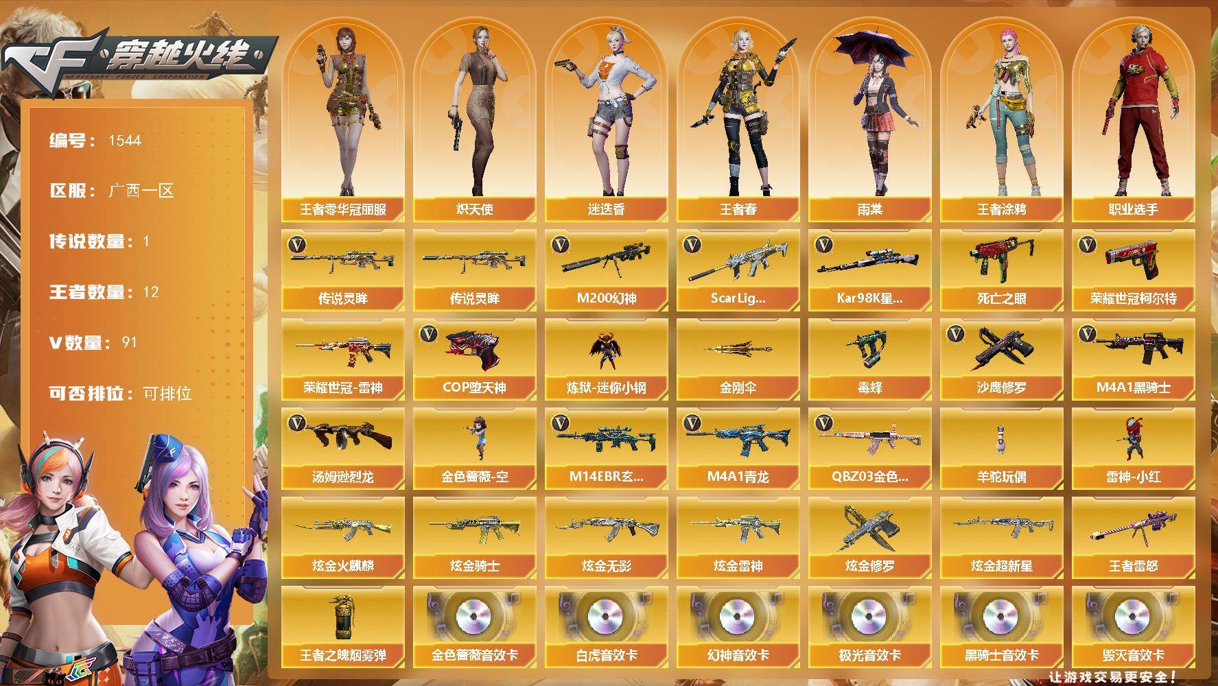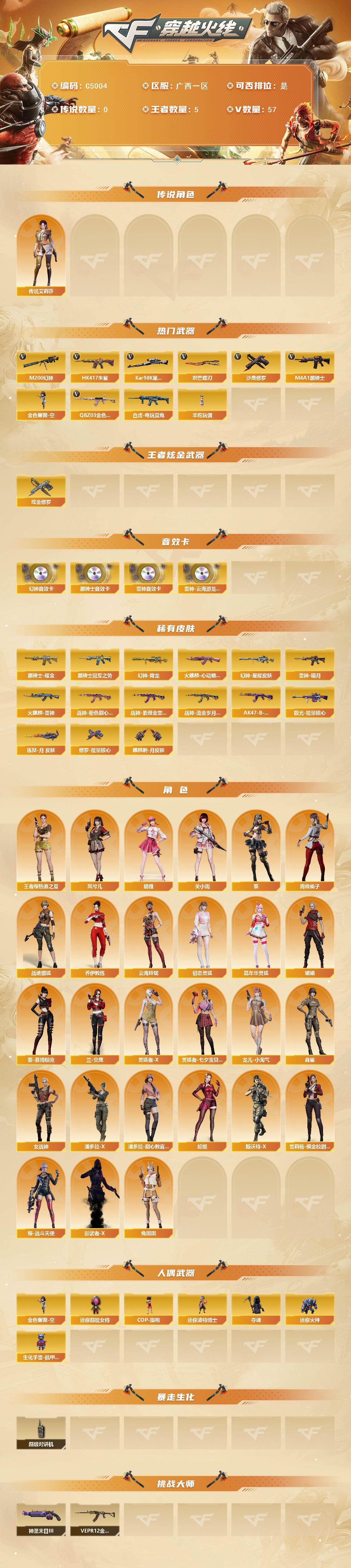 【C5004】广西一区-61V-5王者武器数-1炫金武器数