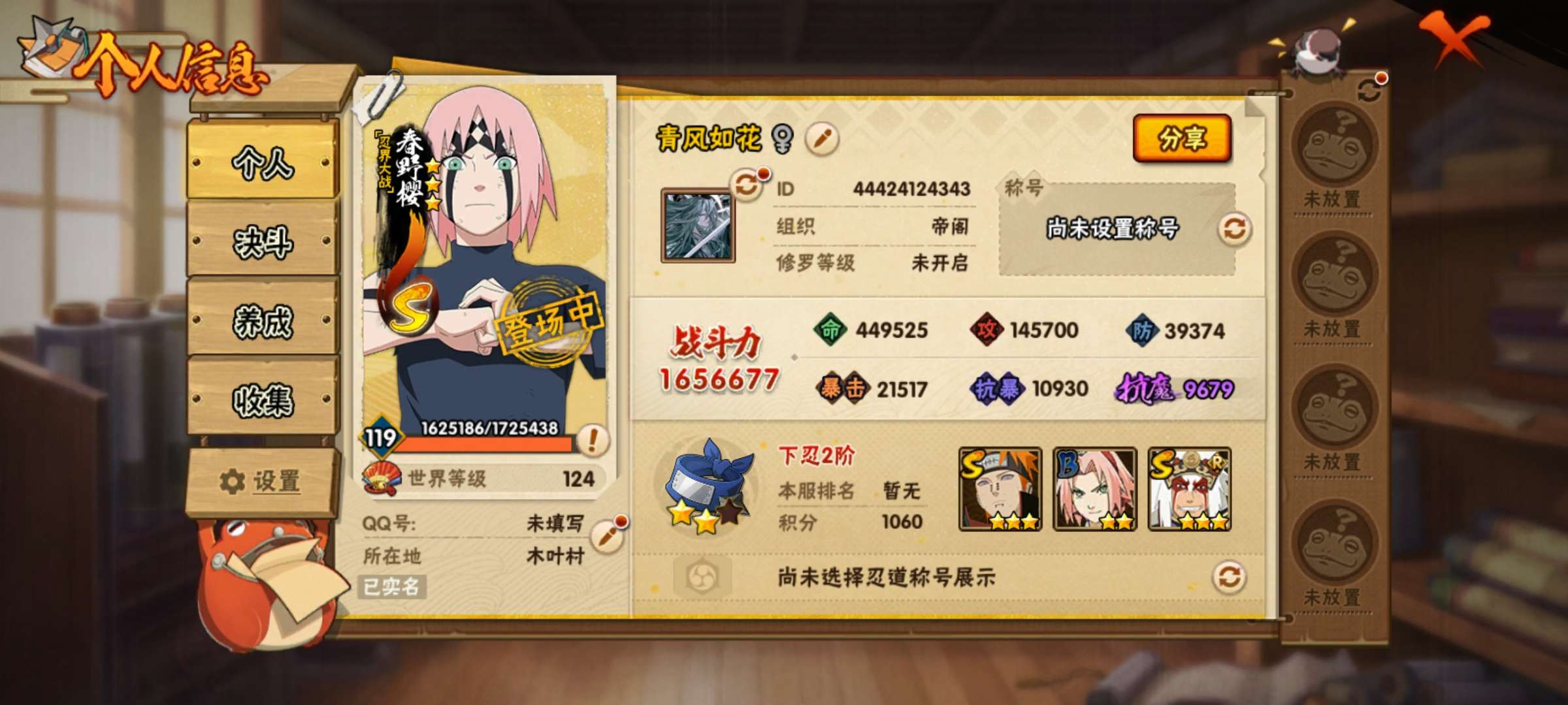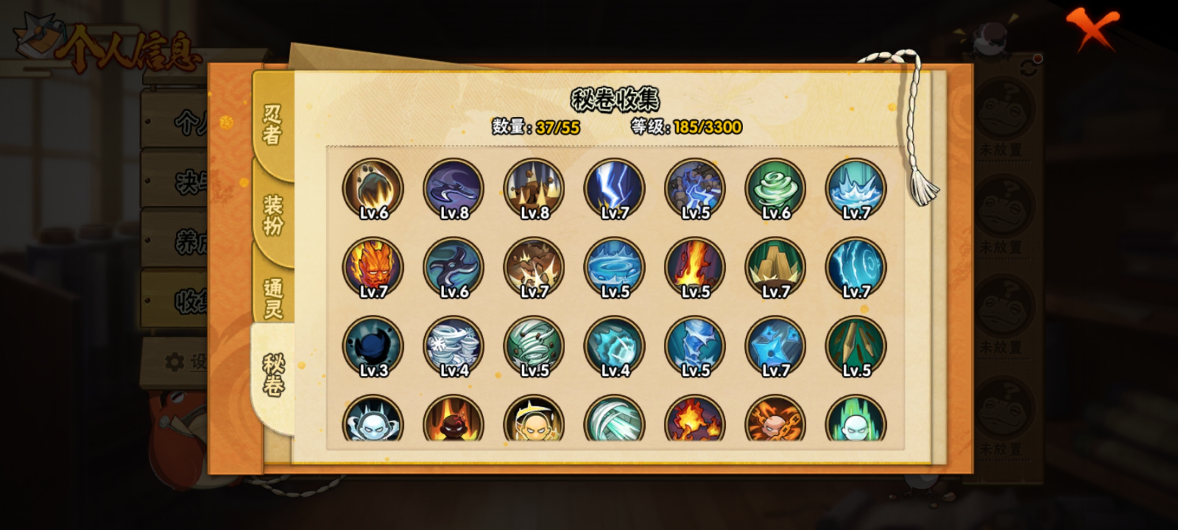有黑土,卑留呼,神驹佑将小南,七夕的内个B忍,还有忍战樱,仙人兜69片和其他角色七千五金币十几张卷轴