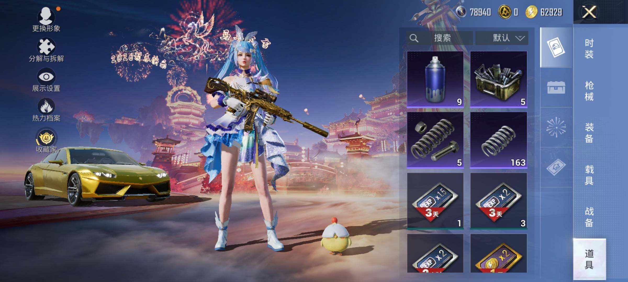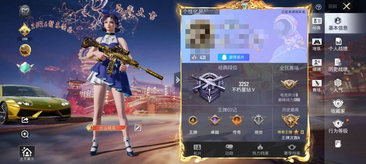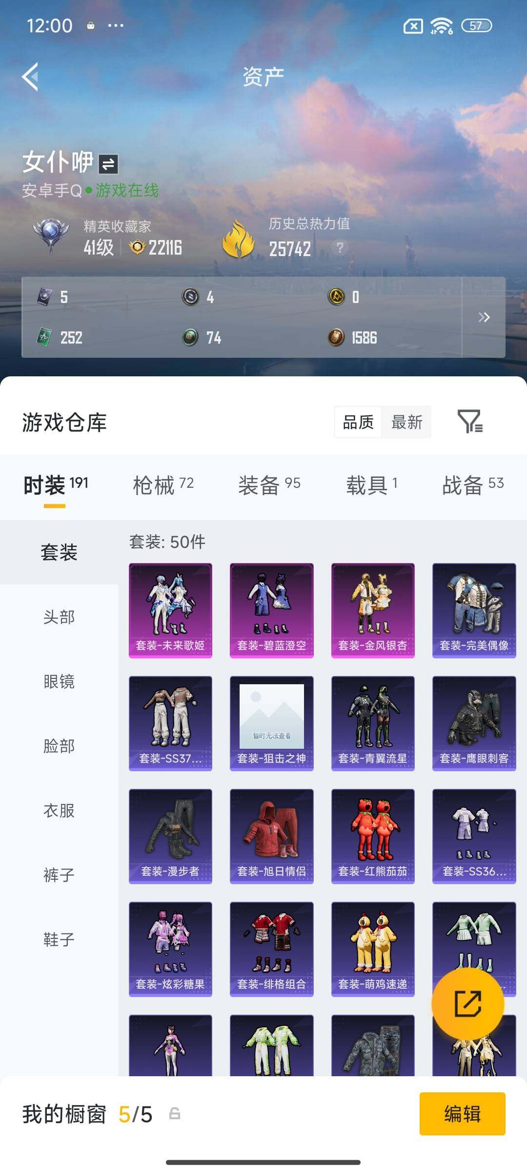50套装/枪械4/装备95/载具1/战备53/王牌印记4/热力值25742/