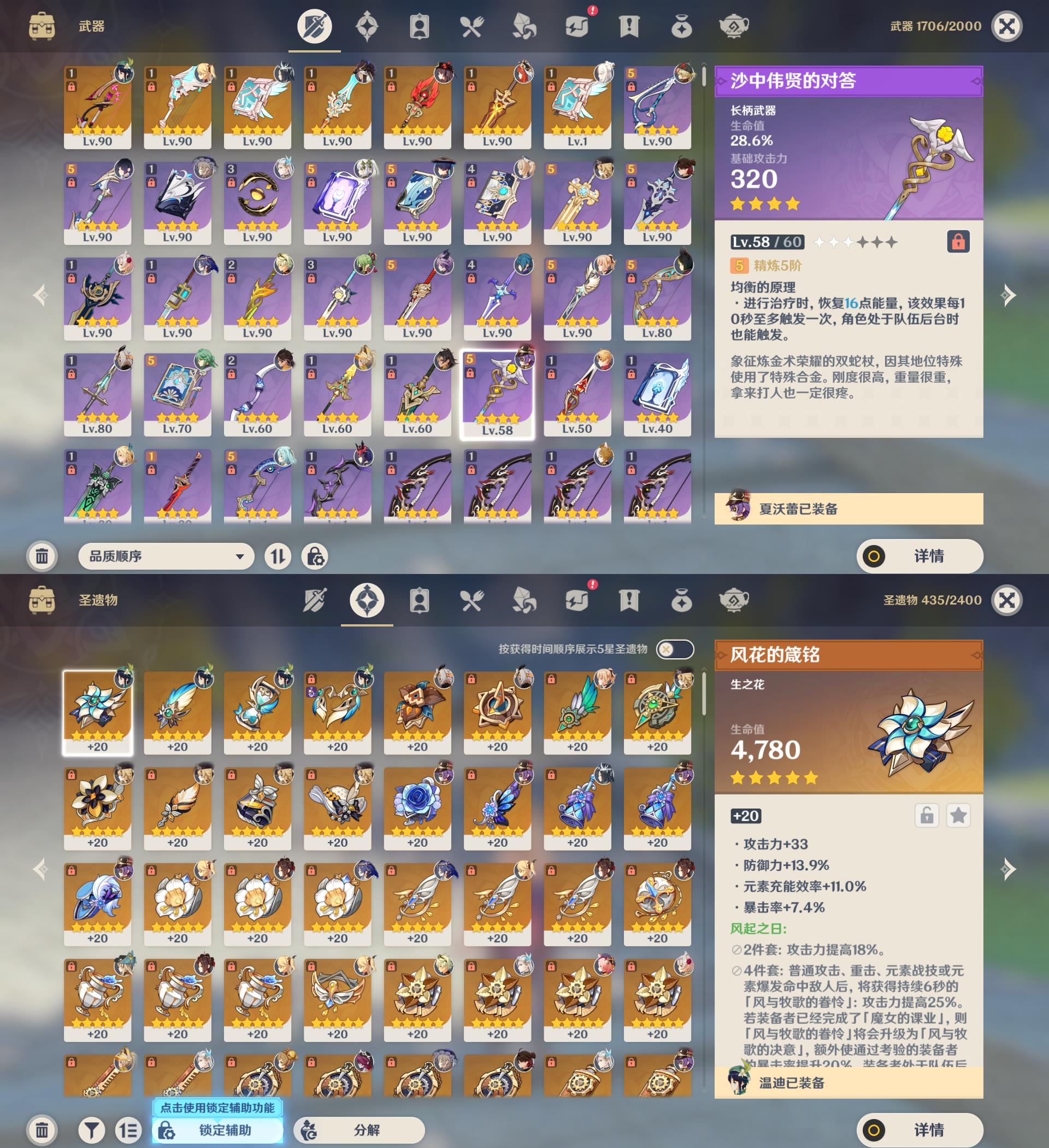 【YSN2392】59级/31黄/女主/19个五星角色/7个五星武器/0命杜林/赛诺/千织/娜维娅/温迪/白术/纳西妲/1命那维莱特/妮露/夜兰/1命莫娜/胡桃/闲云/1命琴/提纳里/1命迪希雅/七七/1命刻晴/迪卢克/最初的大魔术/天空之翼/天空之卷/天空之脊/护摩之杖/圣显之钥