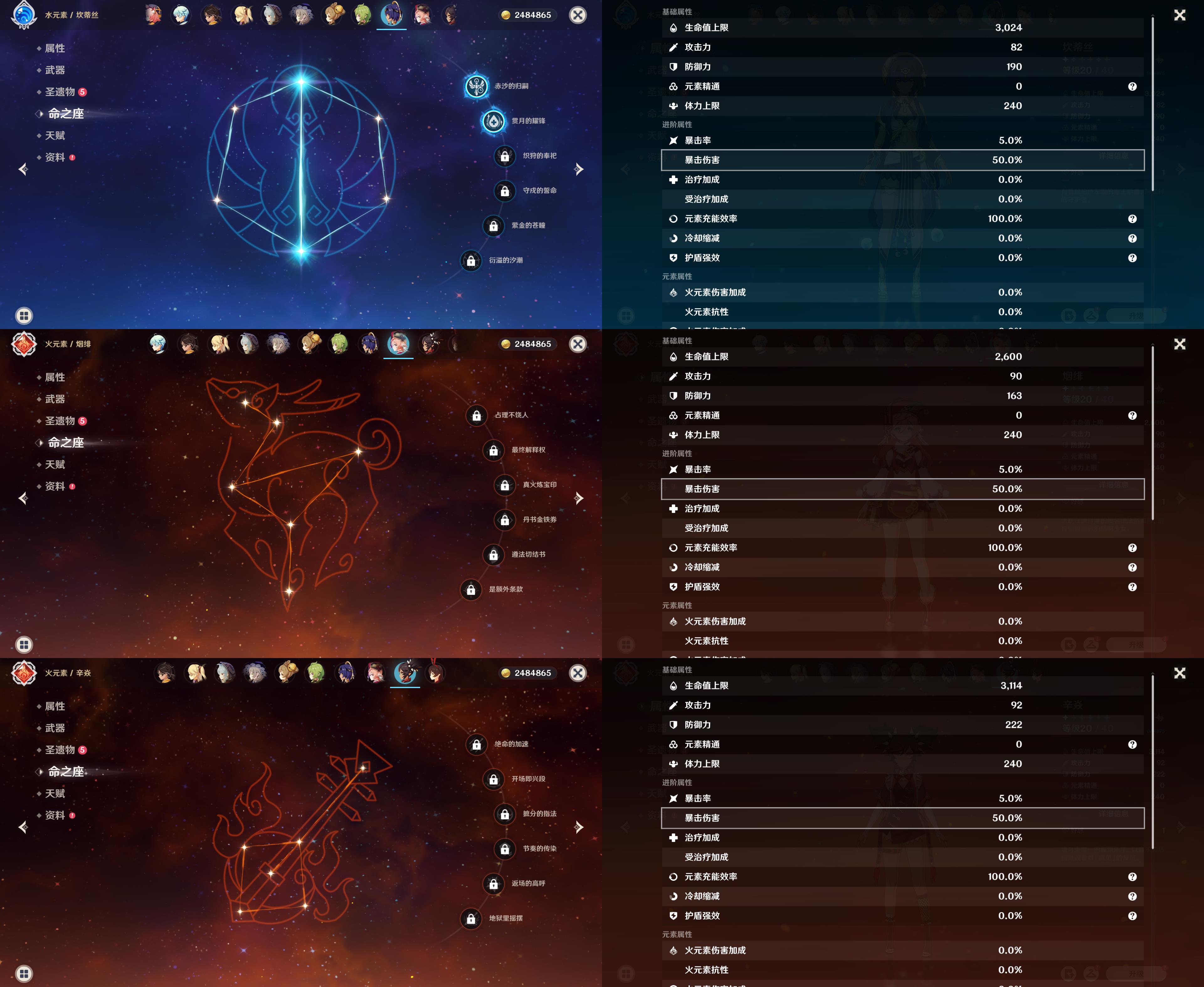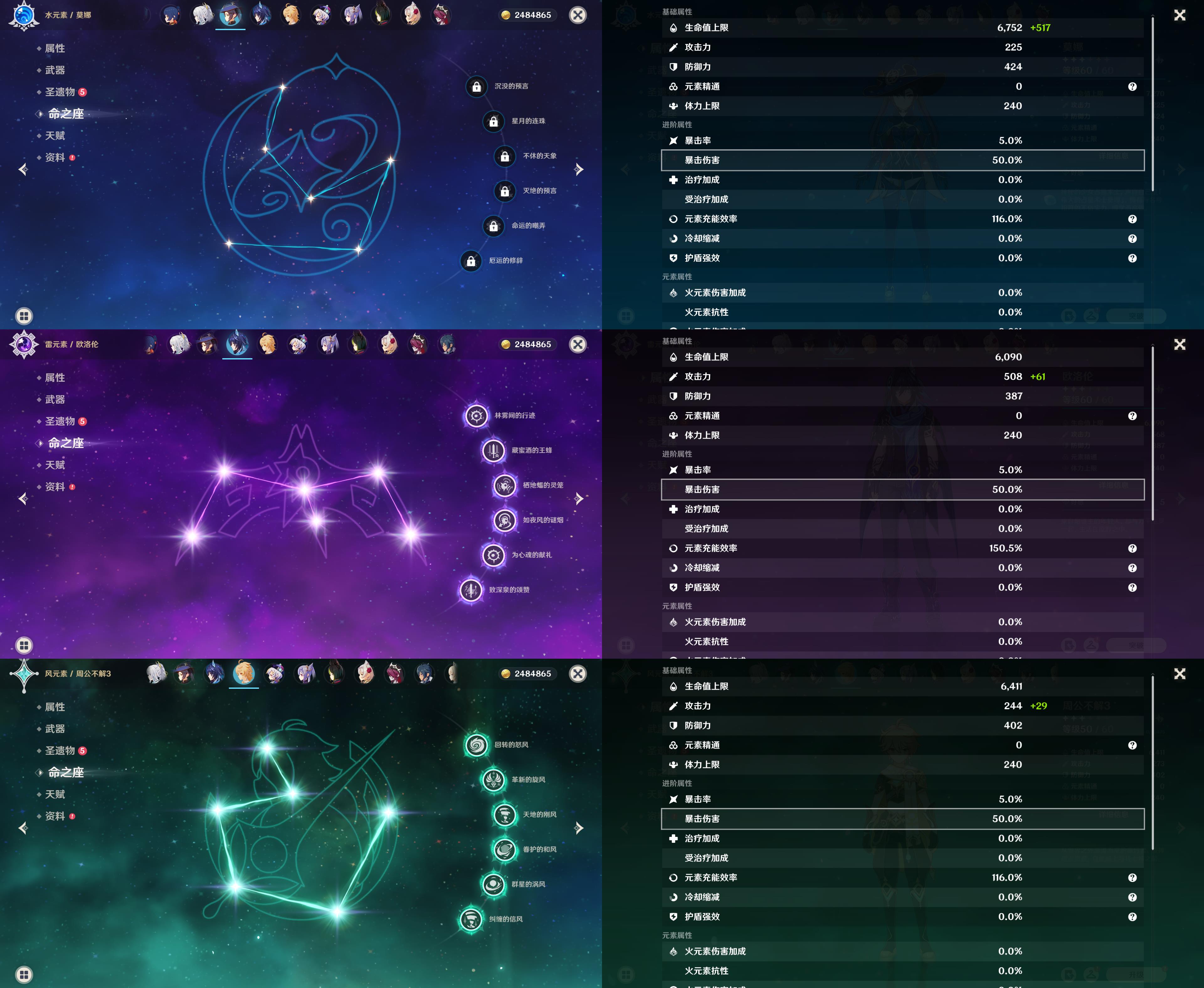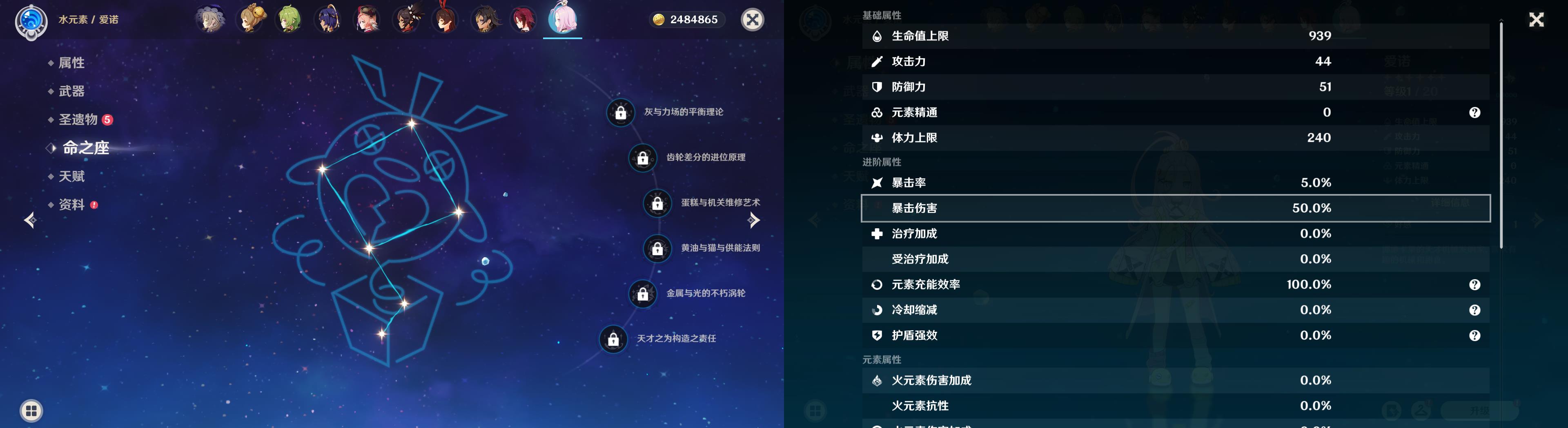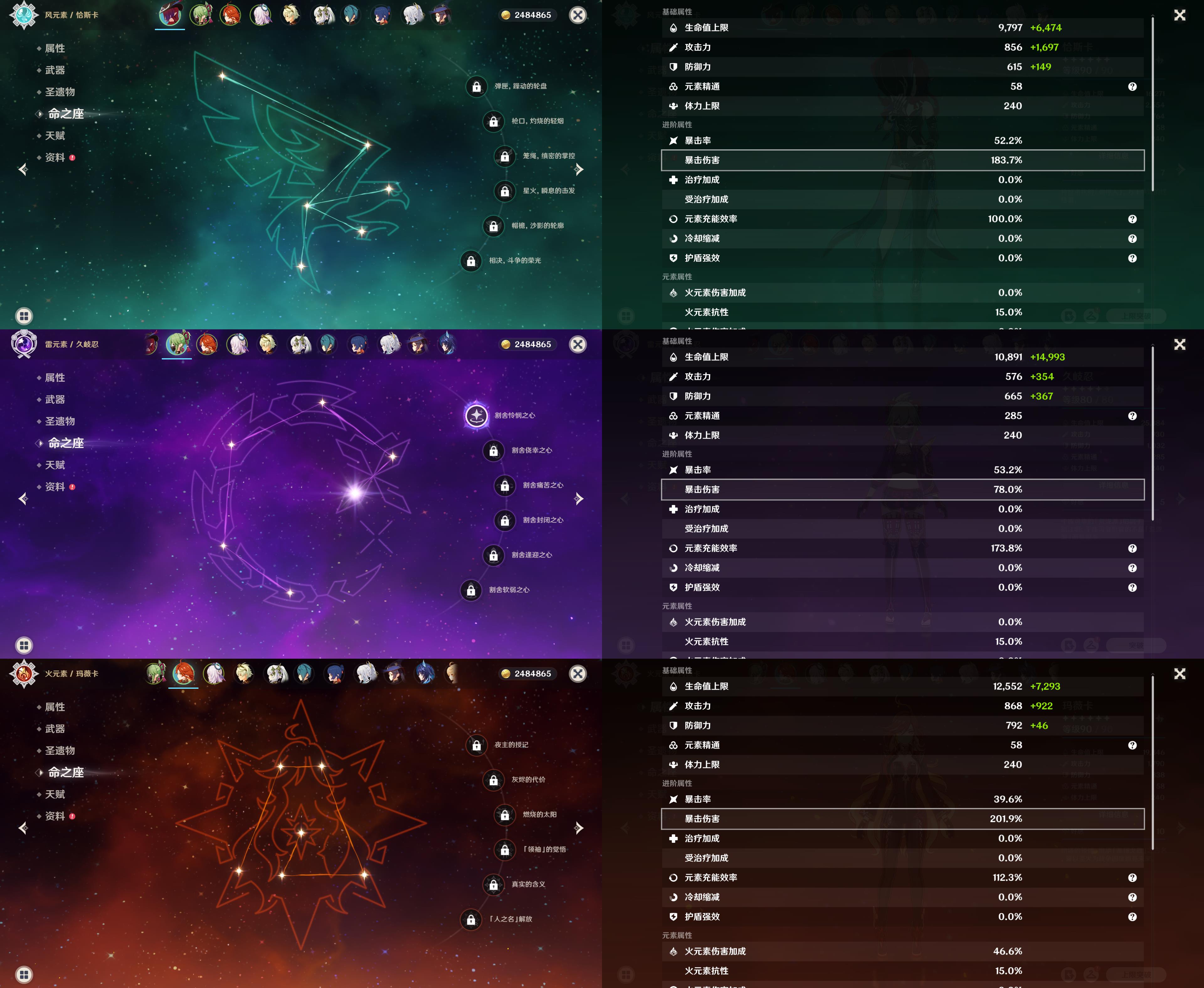55级/13黄/女主/10个五星角色/2个五星武器/恰斯卡/玛薇卡/茜特菈莉/