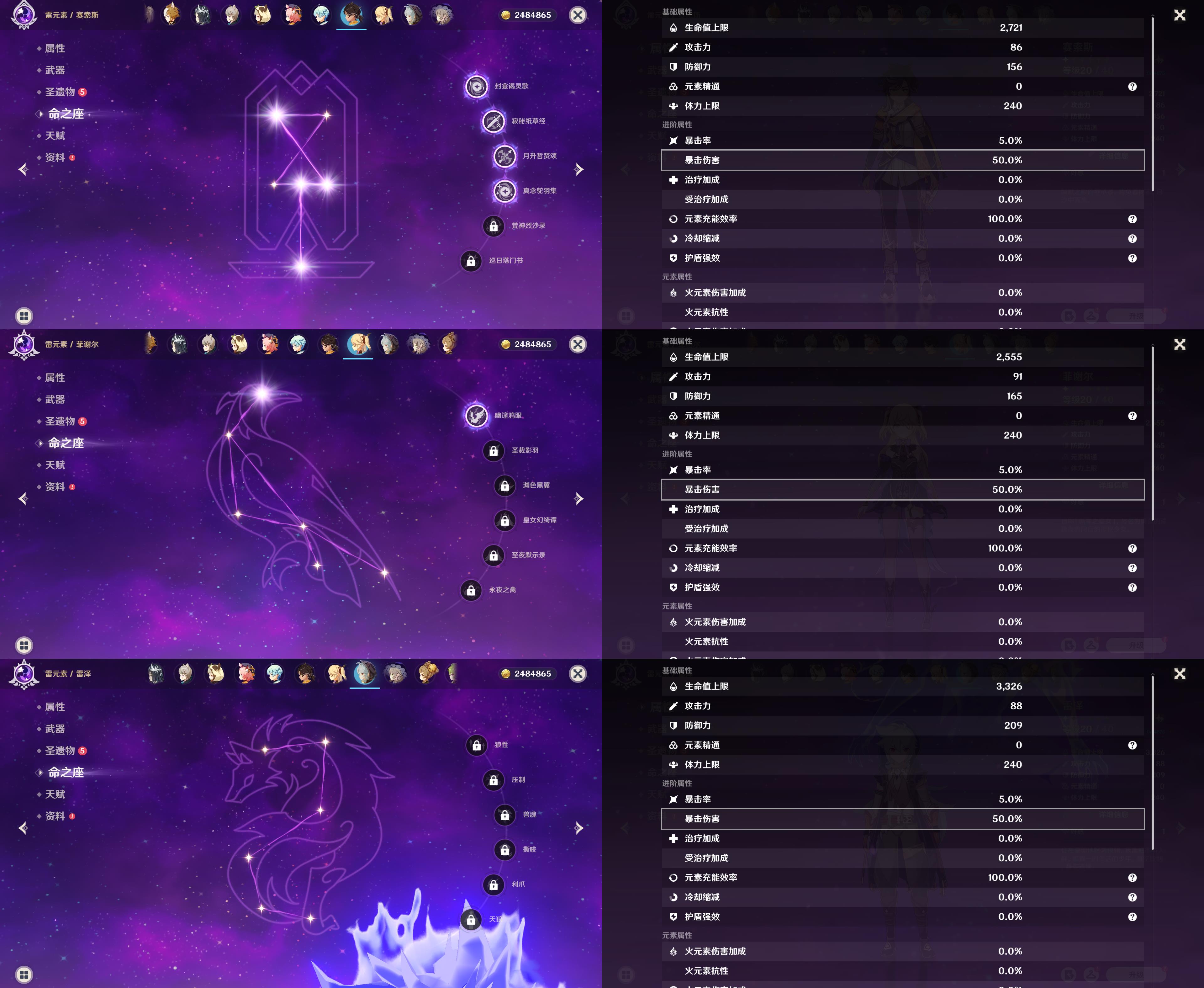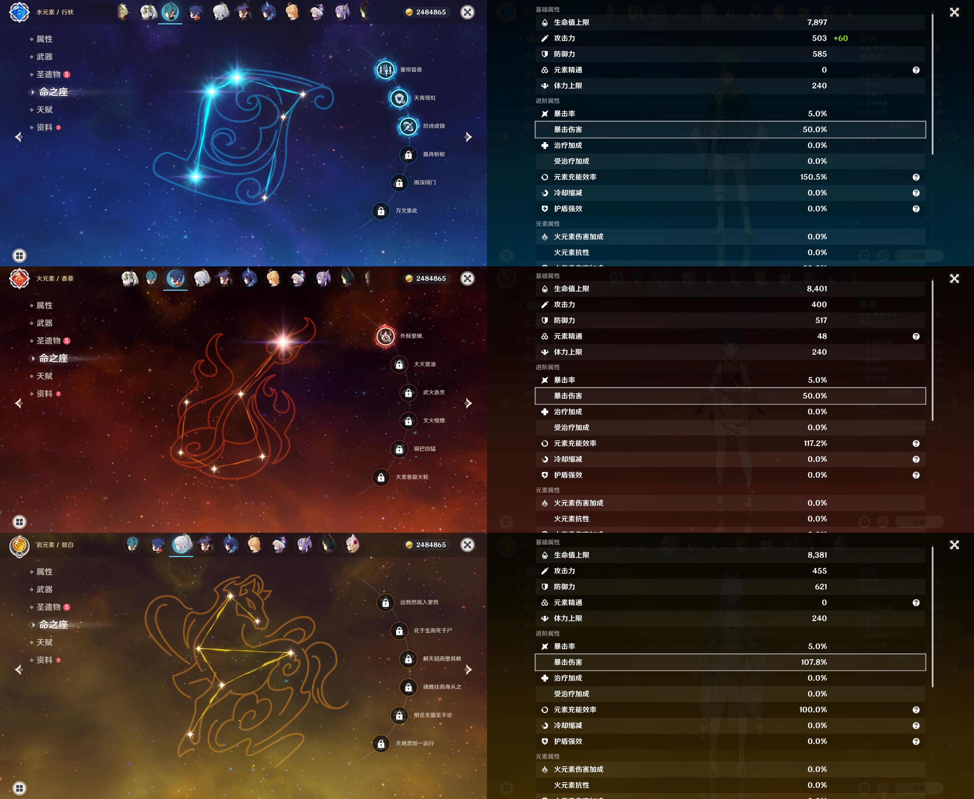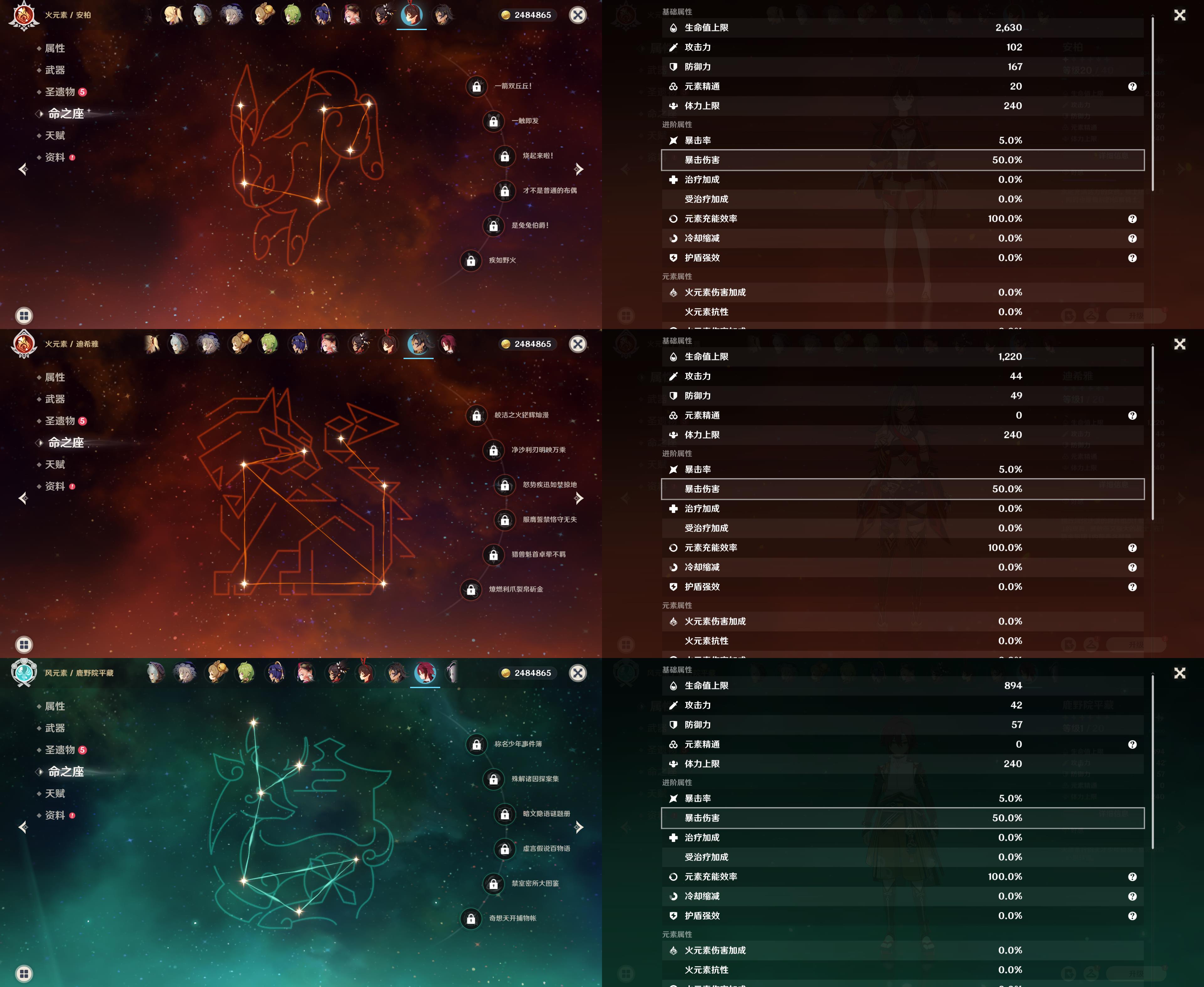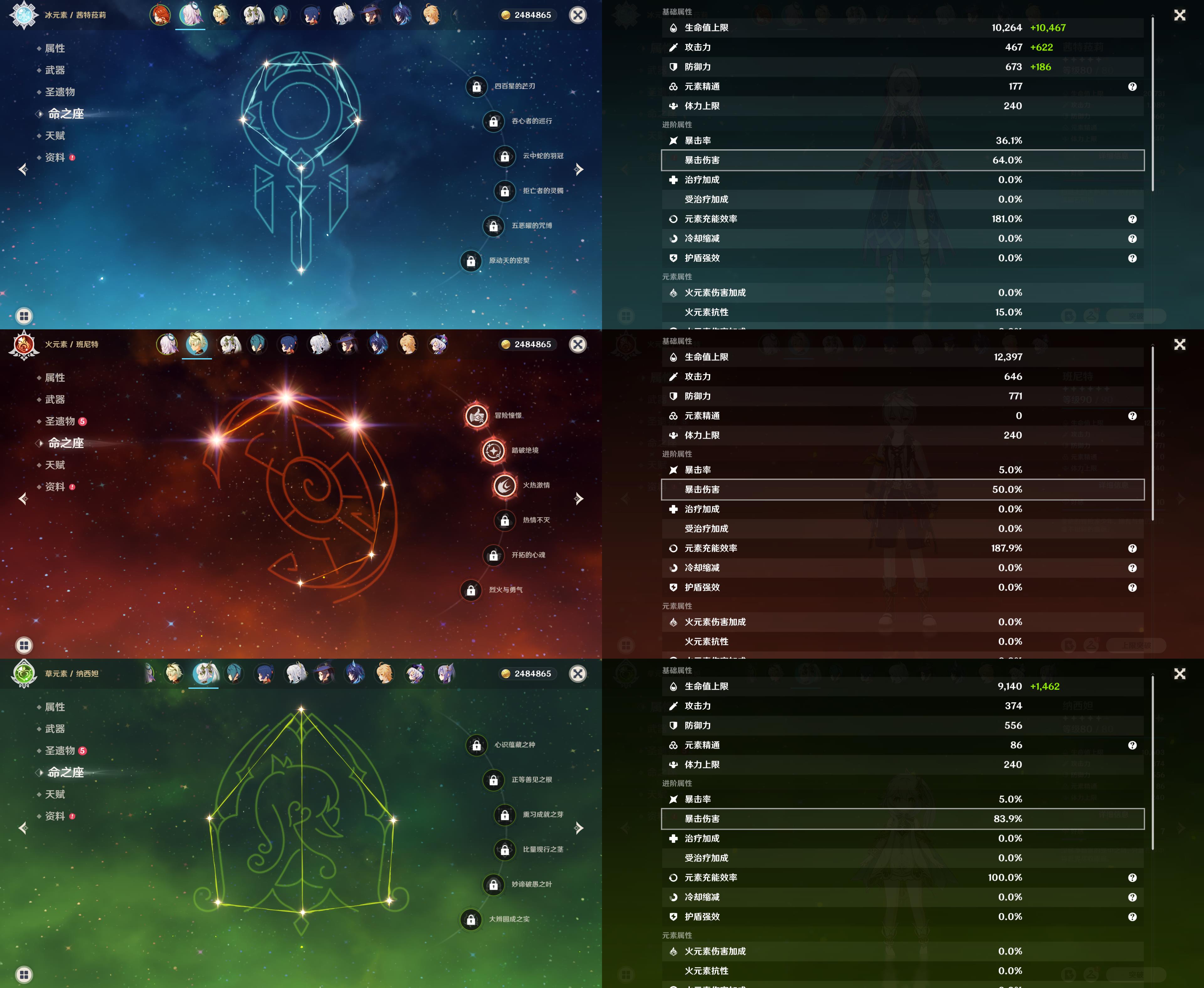 55级/13黄/女主/10个五星角色/2个五星武器/恰斯卡/玛薇卡/茜特菈莉/